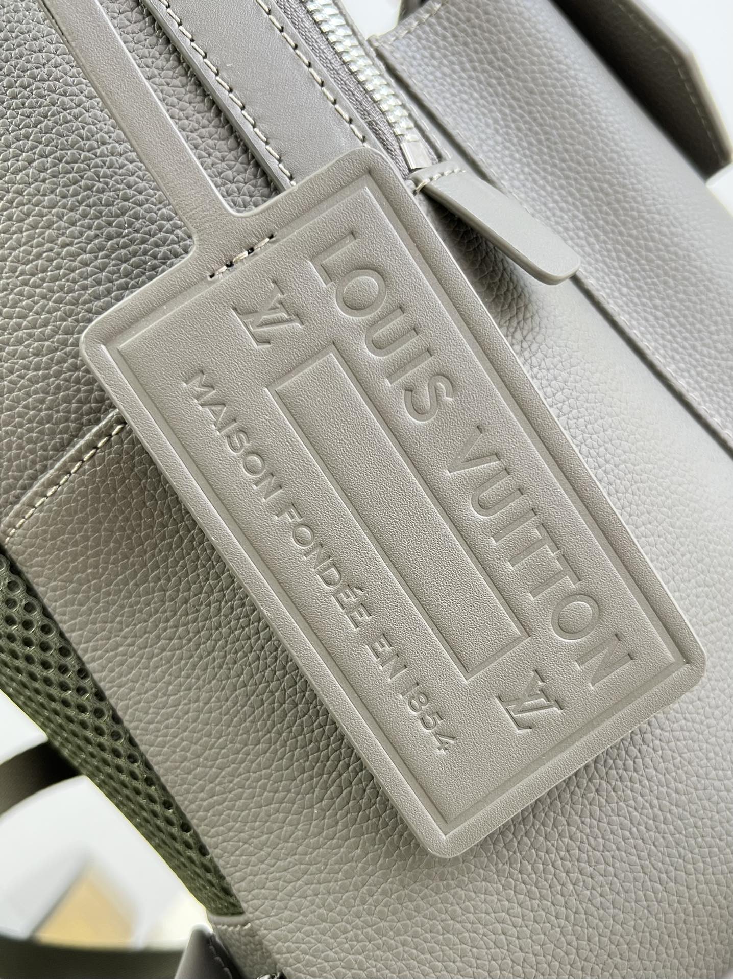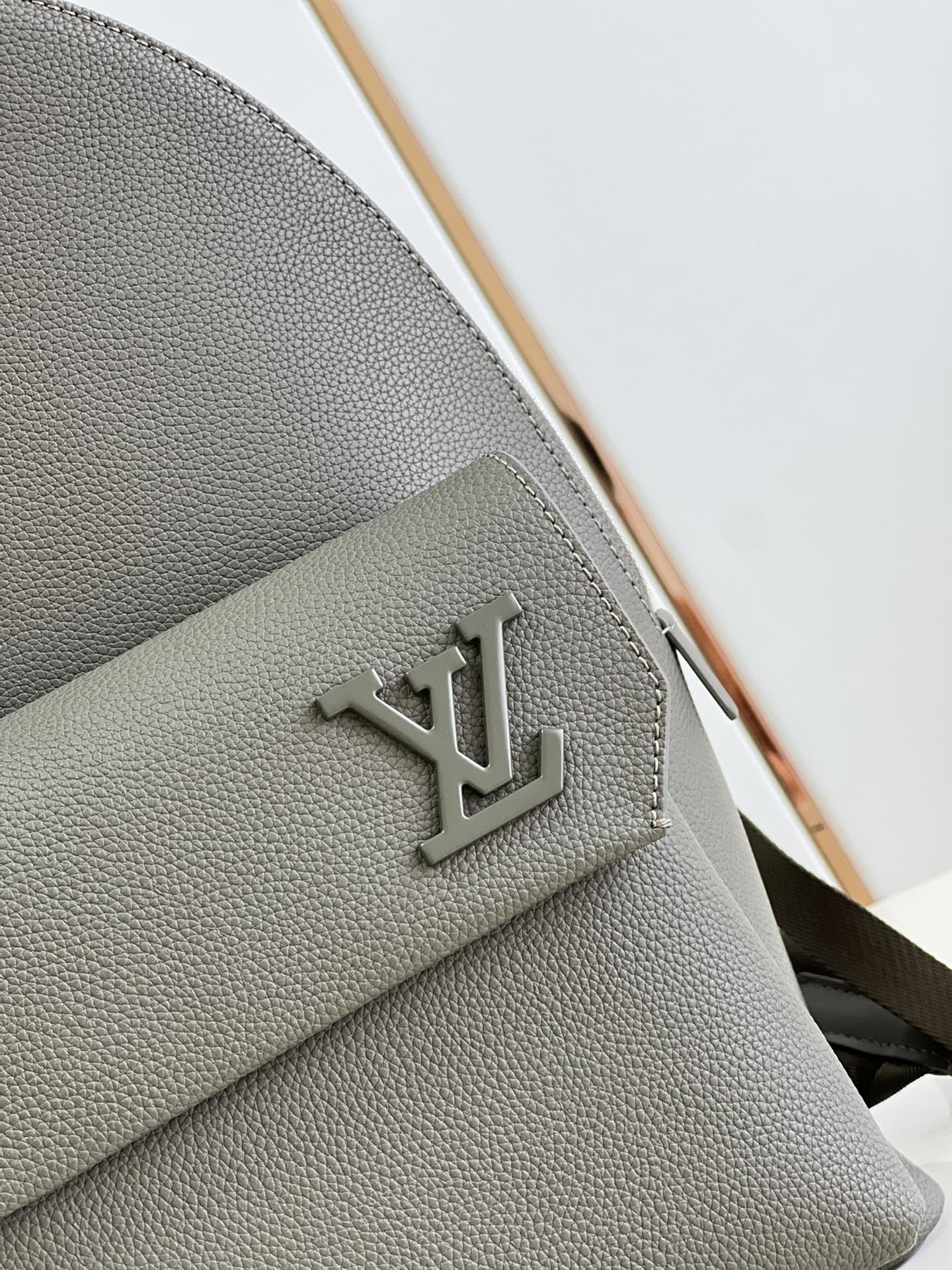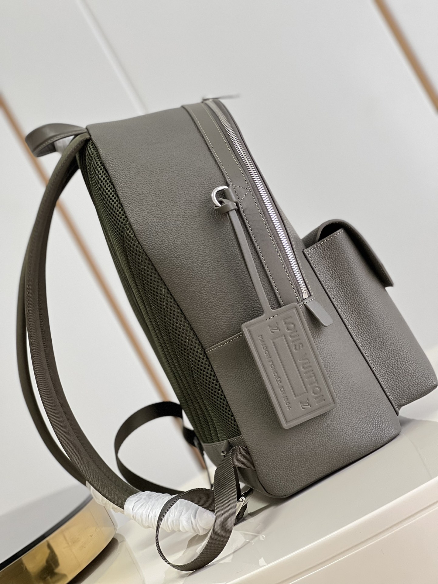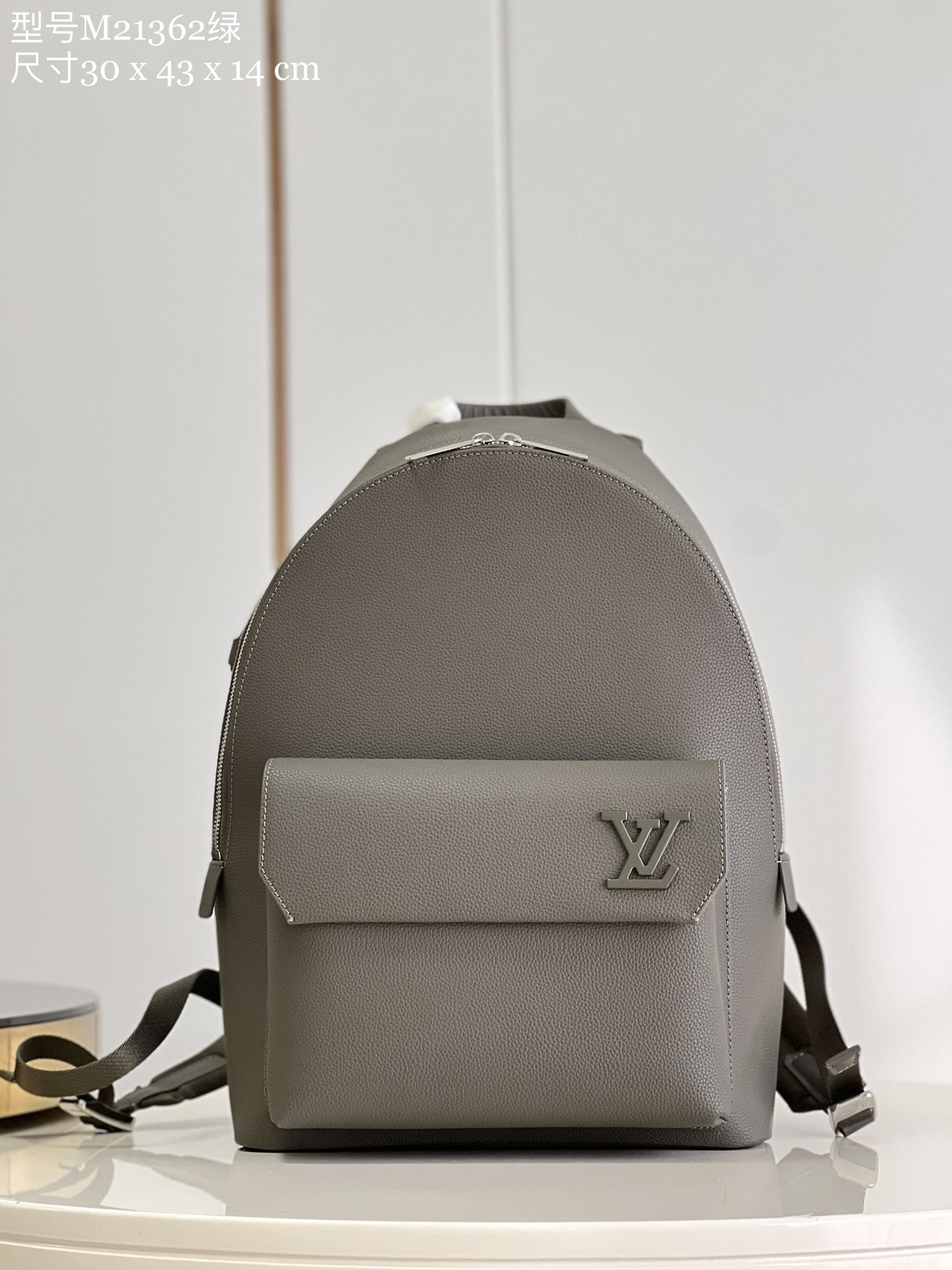 Comfortable and practical, this new backpack emanates discreet contemporary elegance. Crafted in supple LV Aerogram leather in a cool shade of khaki, it celebrates the spirit of travel and aviation with details including a stamp-like signature tag and beveled corners on the front flap, recalling an old-fashioned aerogram. Khaki LV Aerogram cowhide leather Cowhide-leather trim Textile lining Palladium-color hardware Signature initials in tone-on-tone metal Customizable signature label tag Adjustable shoulder straps Double zipped closure Front flap pocket with magnetic closure Handle:Single M21362 Louis Vuitton - Men - Bags - All Bags - New Backpack Louis Vuitton Takeoff Backpack LV Aerogram - Men - Bags M21362