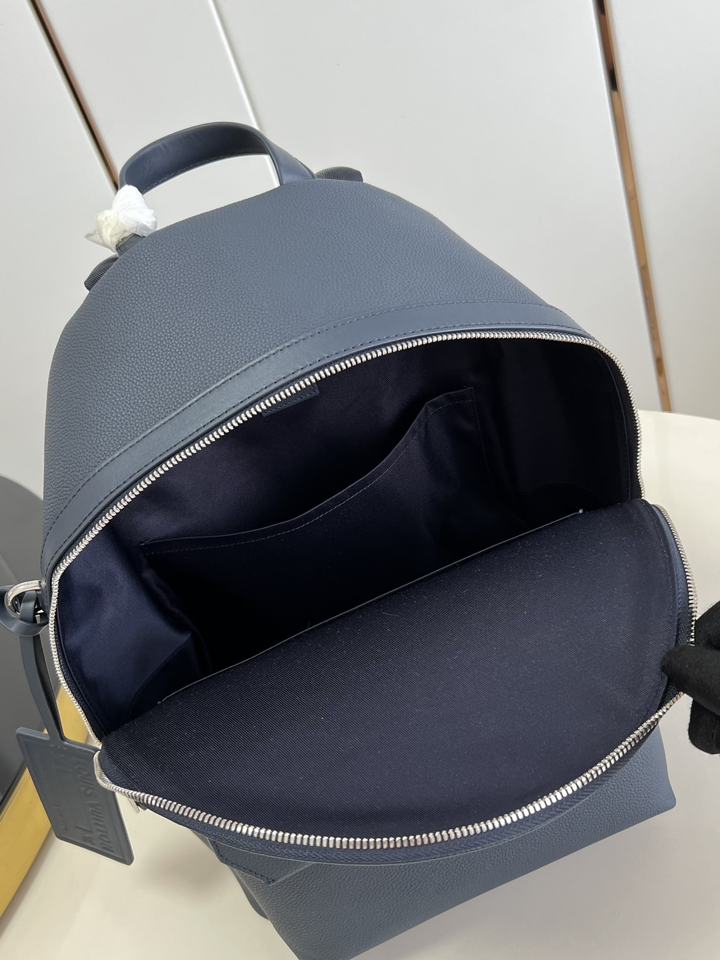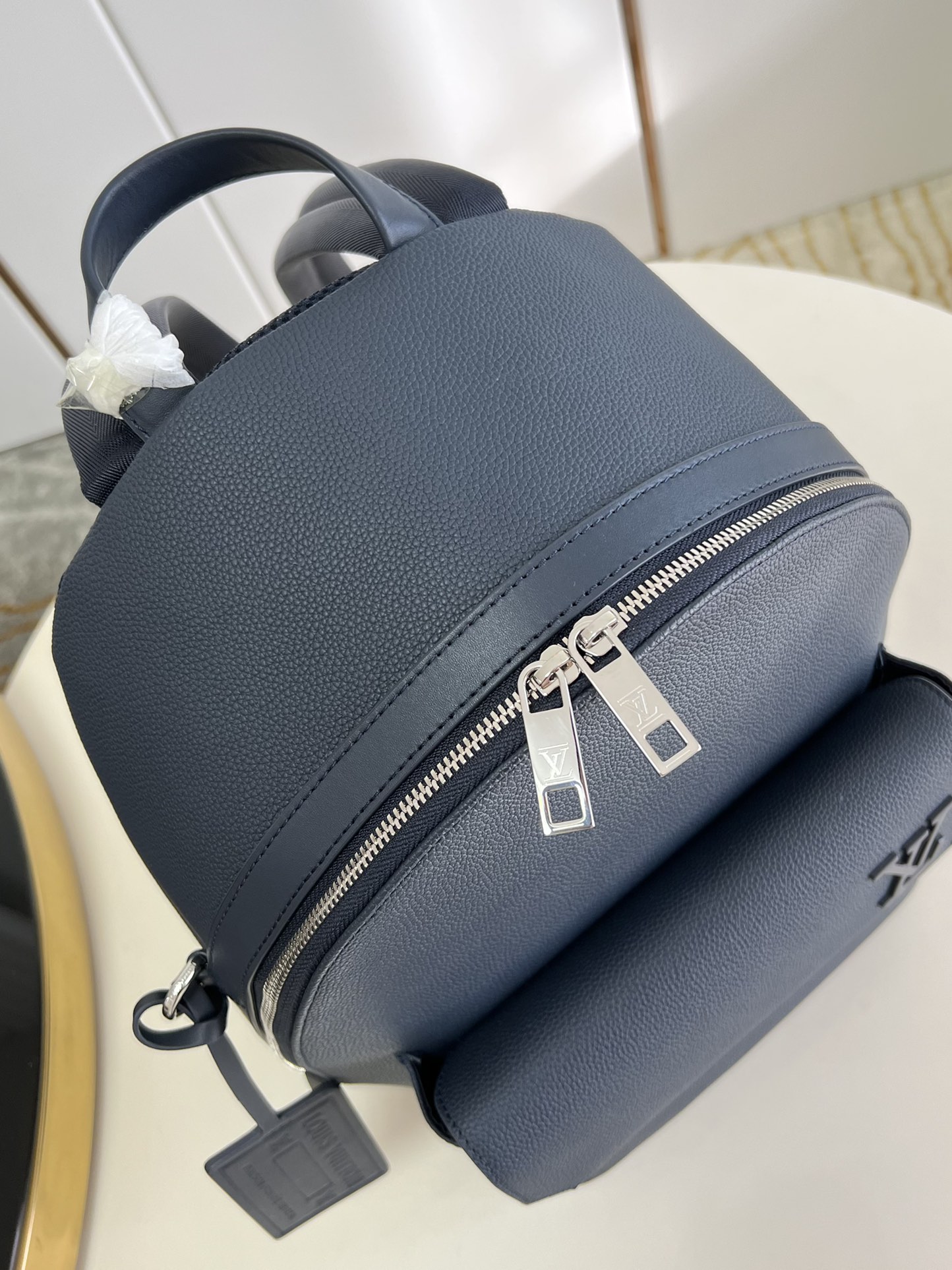 Made from grained cowhide leather, the Takeoff Backpack’s simple but modern design makes it versatile. The monochromatic colorway is signed with matching-color LV Initials in metal. Part of the LV Aerogram Collection, the bag features a flap on the front pocket with bias-cut corners and the distinctive embossed name tag. Product details 11.8 x 16.9 x 5.5 inches (length x Height x Width) • Atlantic Blue • Cowhide leather • Cowhide-leather trim • Textile lining • Palladium-color hardware • Signature initials in tone-on-tone metal • Customizable signature label tag • Zipped closure • Front flap pocket with magnetic closure • Handle:Single M23735 Louis Vuitton Takeoff Backpack LV Aerogram - Men - Bags M23735 Louis Vuitton - Men - Bags - Backpacks - Takeoff Backpack