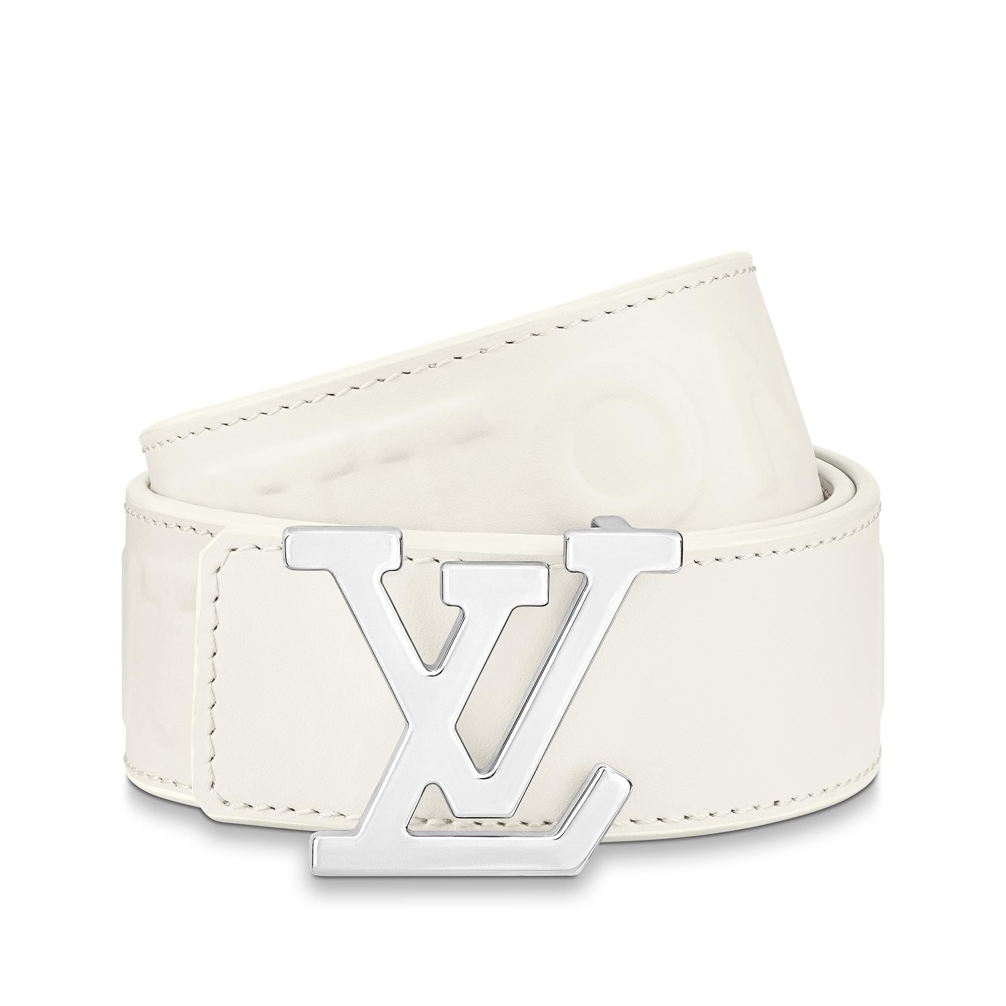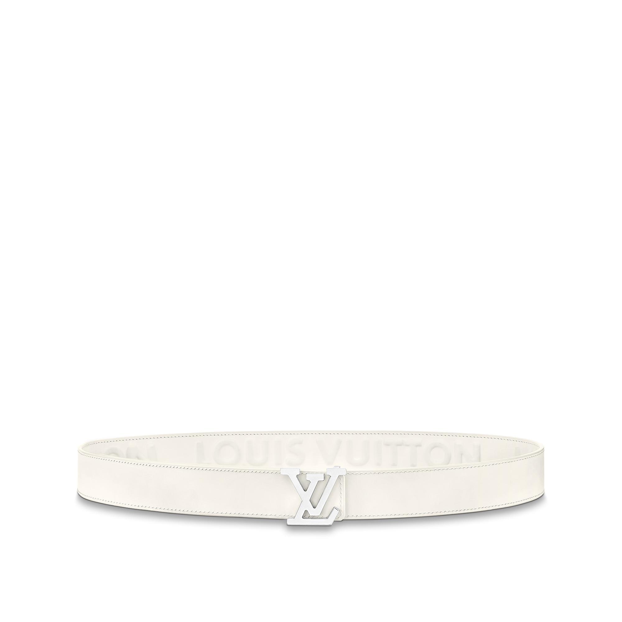 This LV Aerogram 35mm reversible belt spotlights the House's iconic signature in a sporty, modern style. The design features a double-sided strap with debossed lettering on one side and elegant plain leather on the other. It fastens with a gleaming LV Aerogram buckle that creates an impactful impression. Product details 37.4 x 13.8 inches (length x Width) Width: 1.4 inches/35 mm White Debossed calf leather recto side Plain calf leather verso side Silver-color hardware Louis Vuitton signature debossed on strap LV Aerogram buckleM0454T WhiteLouis Vuitton LV Aerogram 35MM Reversible Belt - Men - AccessoriesMen - Accessories - Belts - LV Aerogram 35MM Reversible Belt