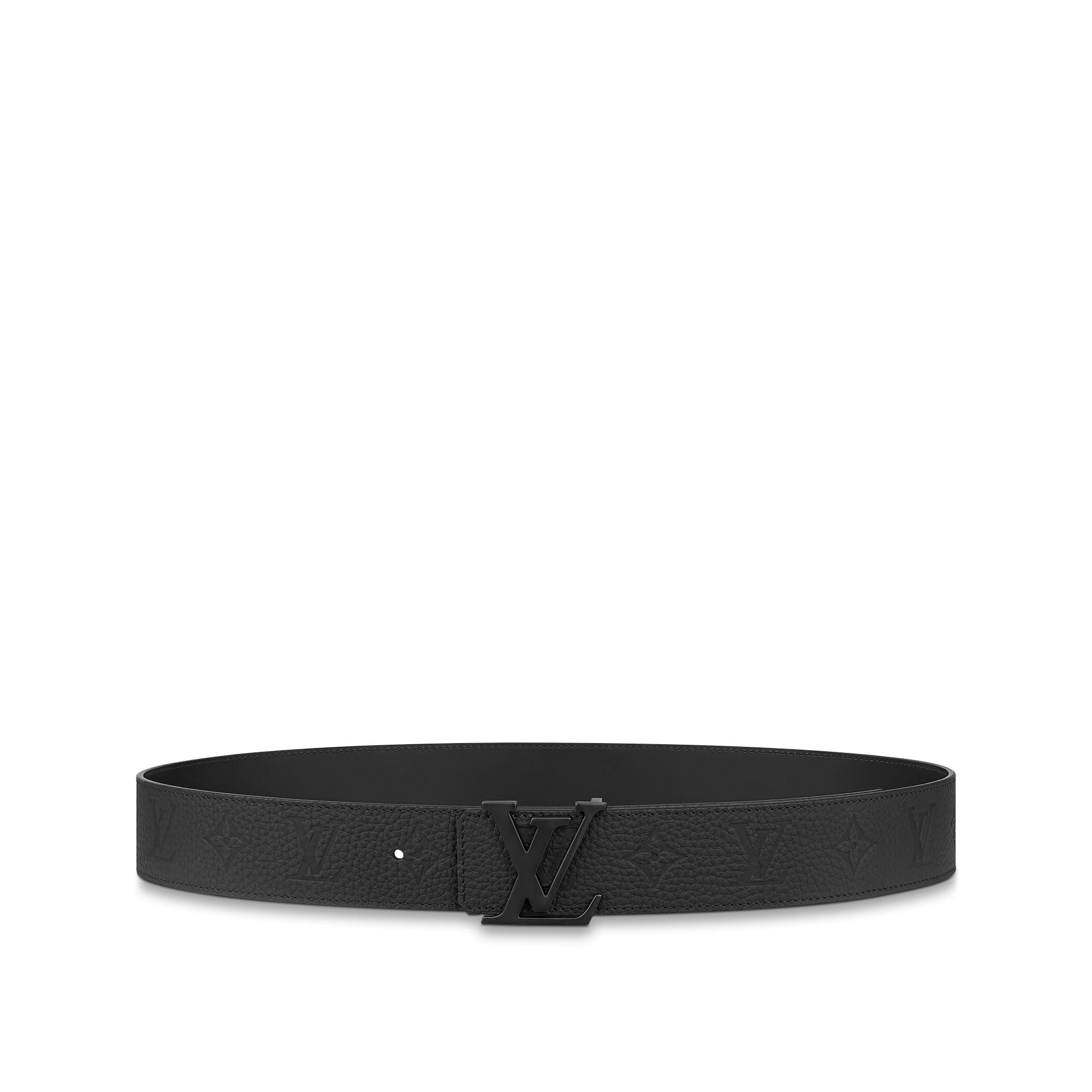 Louis Vuitton's iconic emblems are given a modern twist in the LV Initiales 40mm reversible belt. Central to the design is the LV Initials buckle with a striking matte finish. The double-sided calf leather strap offers versatility while spotlighting the House's expert craftmanship via the finely embossed Monogram pattern. Product details 35.4 x 15.7 inches (length x Width) Width: 1.6 inches/4 cm Black Reversible Taurillon leather recto side Calf leather verso side Black hardware Embossed Monogram pattern LV Initials buckleM0424U Louis Vuitton LV Initiales 40MM Reversible Belt - Men - AccessoriesMen - Accessories - Belts - LV Initiales 40MM Reversible Belt