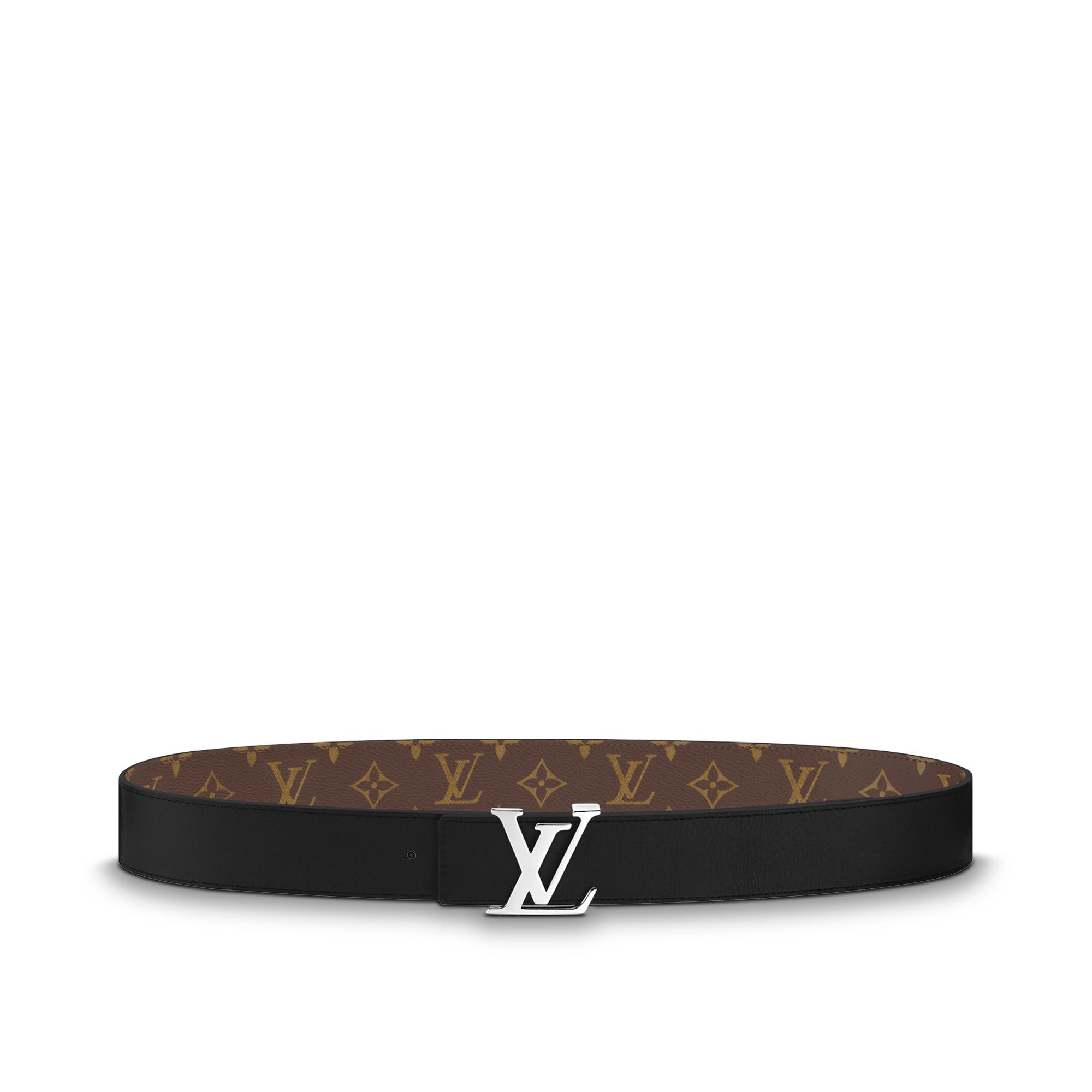 The LV Initials 40 is extended in a new reversible version in Monogram with a silvery finishing buckle, using the same codes as on the Monogram Macassar leather goods from the Fall/Winter 2009 men's show. It can be worn casually with jeans or reversed for business. Product details 15.75 inches (Width) Width: 40 mm / 1.6 inches Shiny silvery LV buckle Reversible: Monogram canvas on one side, smooth black calf leather on the otherM9821U Louis Vuitton LV Initiales 40MM Reversible - Men - AccessoriesMen - Accessories - Belts - LV Initiales 40MM Reversible