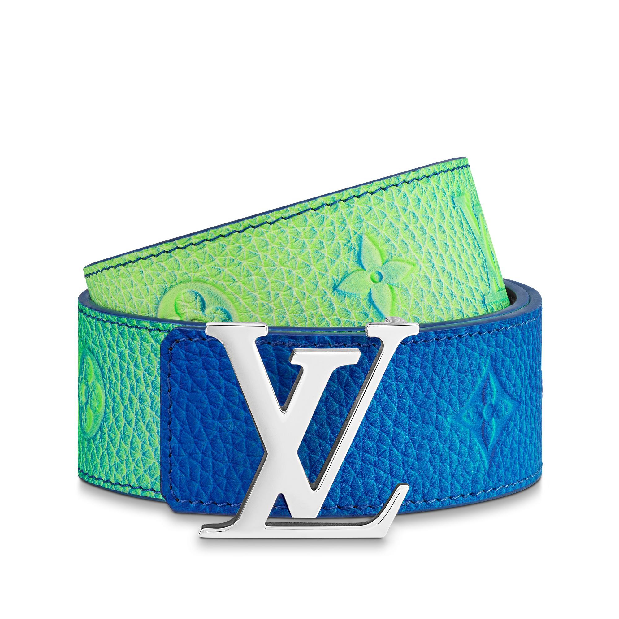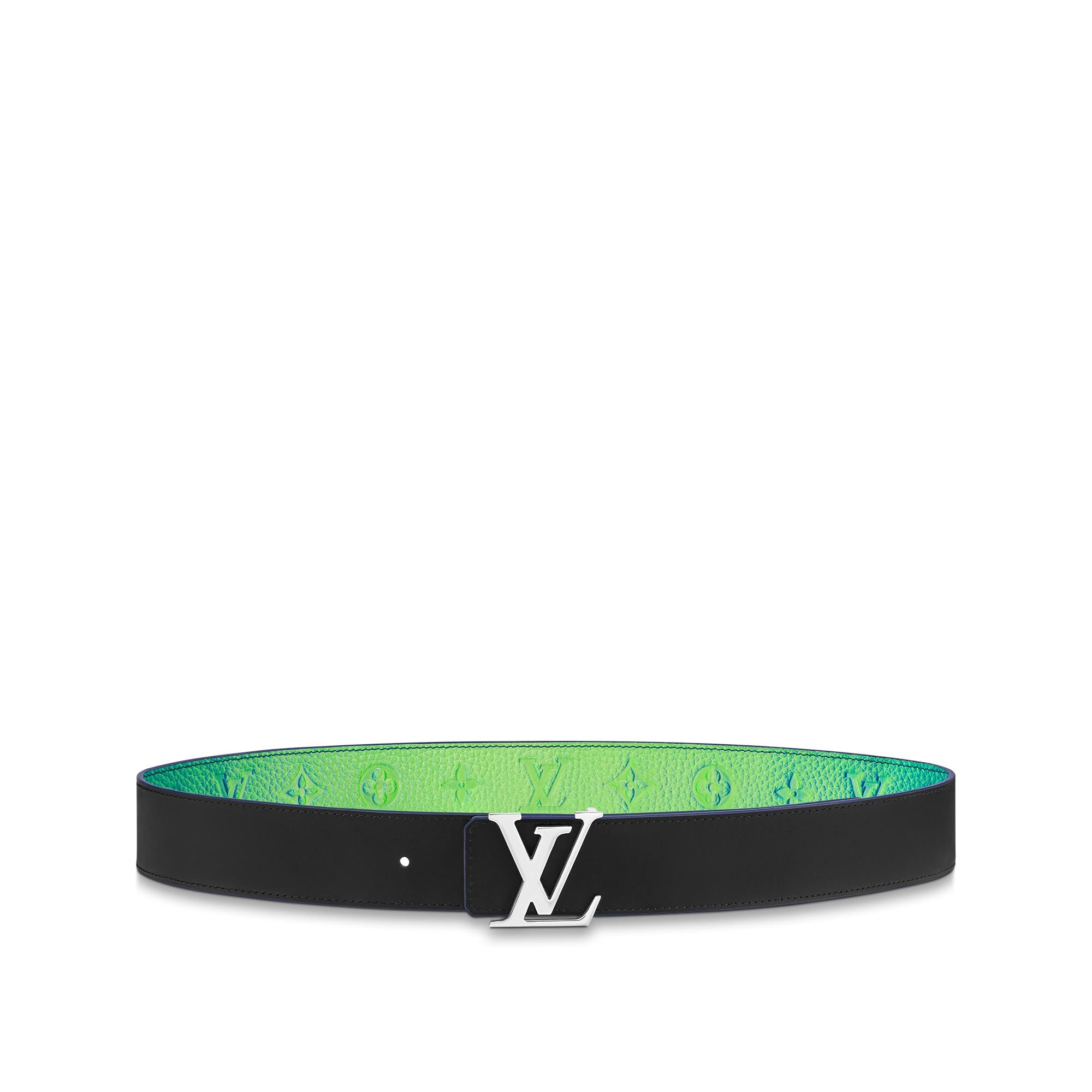 This LV Initials Taurillon Illusion 40mm Reversible Belt exemplifies the House's fine craftsmanship and adventurous spirit. The double-sided strap features an embossed Monogram pattern with a spray effect that creates a contemporary look. Plain calf leather covers the reverse side, while the iconic LV Initials buckle completes this versatile accessory. Product details 37.4 x 15.7 inches (length x Width) Width: 4 cm/1.6 inches Blue/Green Taurillon Illusion leather on front Plain calf leather on reverse Silver-colour hardware All-over embossed Monogram pattern Double spray effect finish LV Initials buckleM0502T GreenLouis Vuitton LV Initials Taurillon Illusion 40MM Reversible Belt - Men - AccessoriesMen - Accessories - Belts - LV Initiales Taurillon Illusion 40MM Reversible Belt