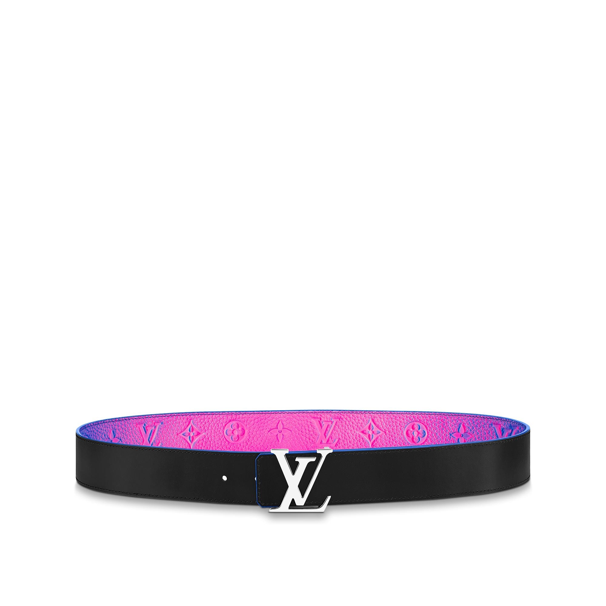 This LV Initials Taurillon Illusion 40mm Reversible Belt exemplifies the House's fine craftsmanship and adventurous spirit. The double-sided strap features an embossed Monogram pattern with a spray effect that creates a contemporary look. Plain calf leather covers the reverse side, while the iconic LV Initials buckle completes this versatile accessory. Product details 37.4 x 15.7 inches (length x Width) Width: 4 cm/1.6 inches Blue/Pink Taurillon Illusion leather on front Plain calf leather on reverse Silver-colour hardware All-over embossed Monogram pattern Double spray effect finish LV Initials buckleM0503T RoseLouis Vuitton LV Initials Taurillon Illusion 40MM Reversible Belt - Men - AccessoriesMen - Accessories - Belts - LV Initiales Taurillon Illusion 40MM Reversible Belt