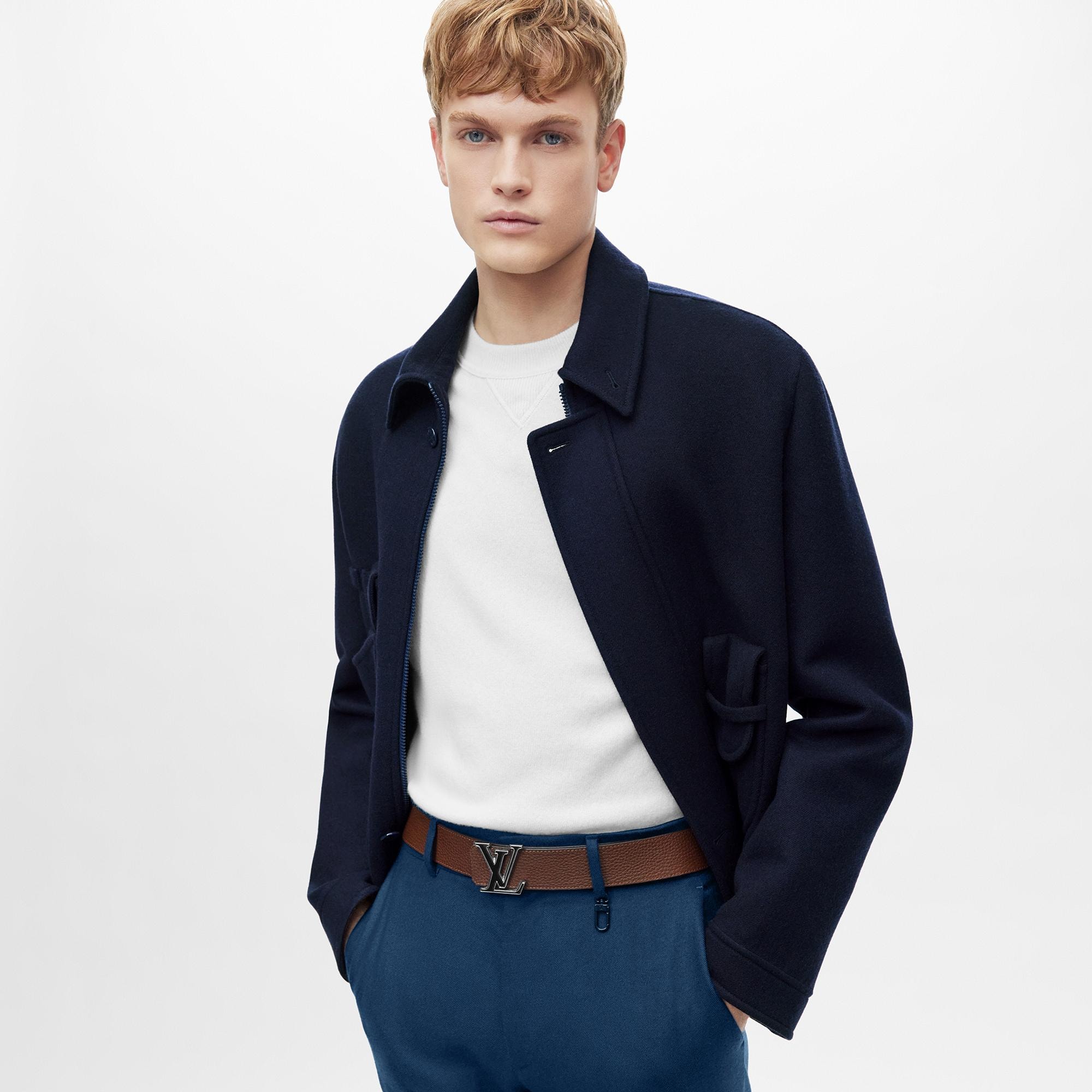 The LV Tilt reversible belt features an eye-catching three-dimensional buckle. The sharp lines of the metal buckle contrast with the soft Taurillon leather of the strap. Combining classic and contemporary values, the belt showcases the skills of the Louis Vuitton expert craftsmen. Product details 37.4 x 15.7 inches (length x Width) Width: 1.5 inches/4cm Size: 37.5 inches/95cm Cognac Taurillon leather strap recto Navy Taurillon leather strap verso 3D brass buckle with matt silver-color finishM0027T Louis Vuitton LV Tilt 40mm Reversible Belt - Men - AccessoriesMen - Accessories - Belts - LV Tilt 40mm Reversible Belt