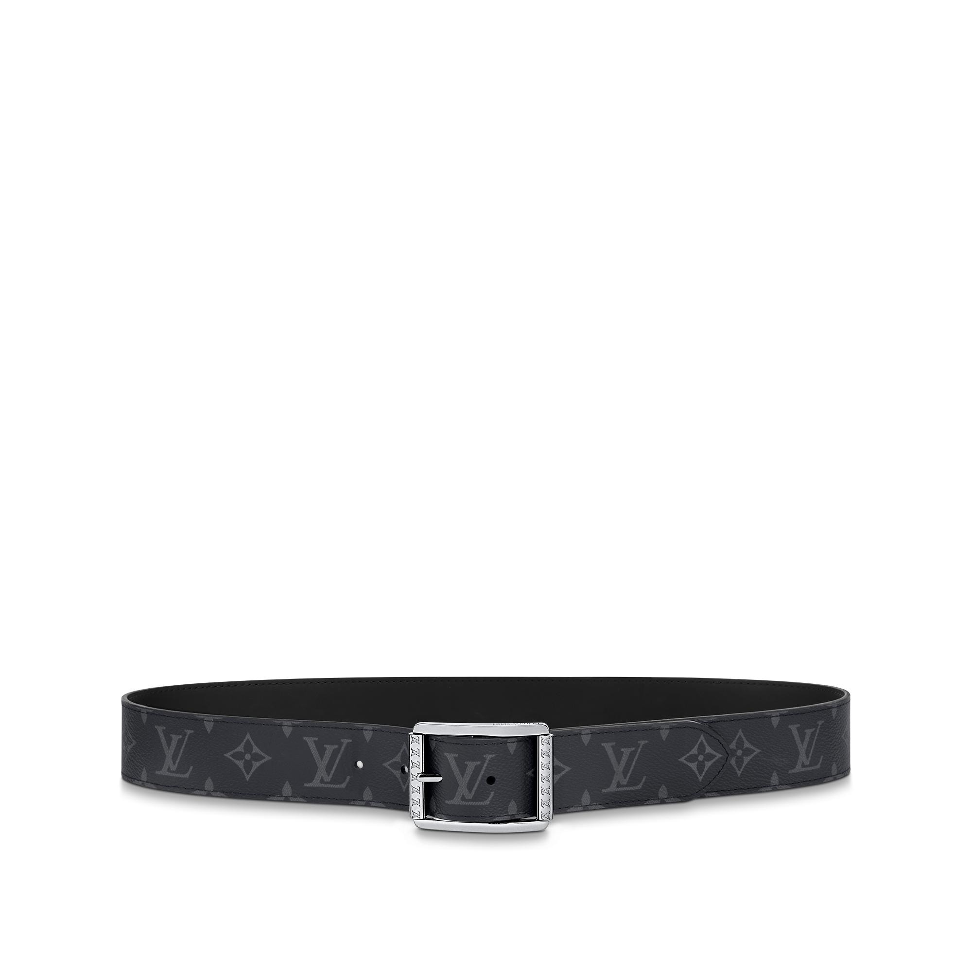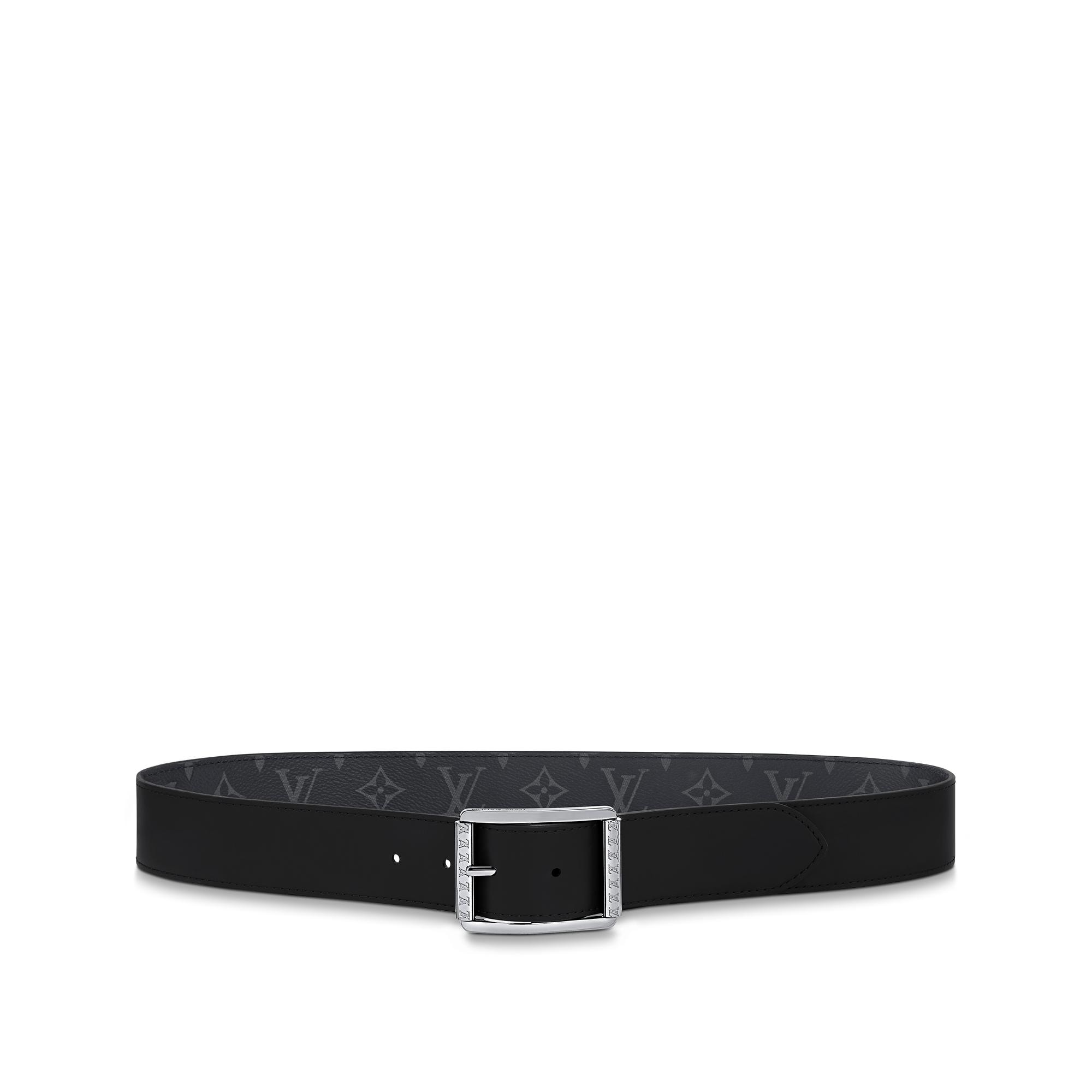 The Uptown 35mm reversible belt is a new addition for Fall-Winter 2022 that combines multiple House signatures. This accessory, which is a modern reinterpretation of the Reverso belt, features Monogram Eclipse canvas on one side and solid-color calf leather on the other. Its polished silver-color buckle is engraved with Monogram Flowers. Product details 33.5 x 13.8 inches (length x Width) Width: 1.4 inches/35 mm Monogram Eclipse canvas recto side Black leather verso side Silver-color hardware Monogram Flowers engraving on buckle Made in SpainM0541V Louis Vuitton Uptown 35MM Reversible Belt - Men - AccessoriesMen - Accessories - New This Season - Uptown 35MM Reversible Belt