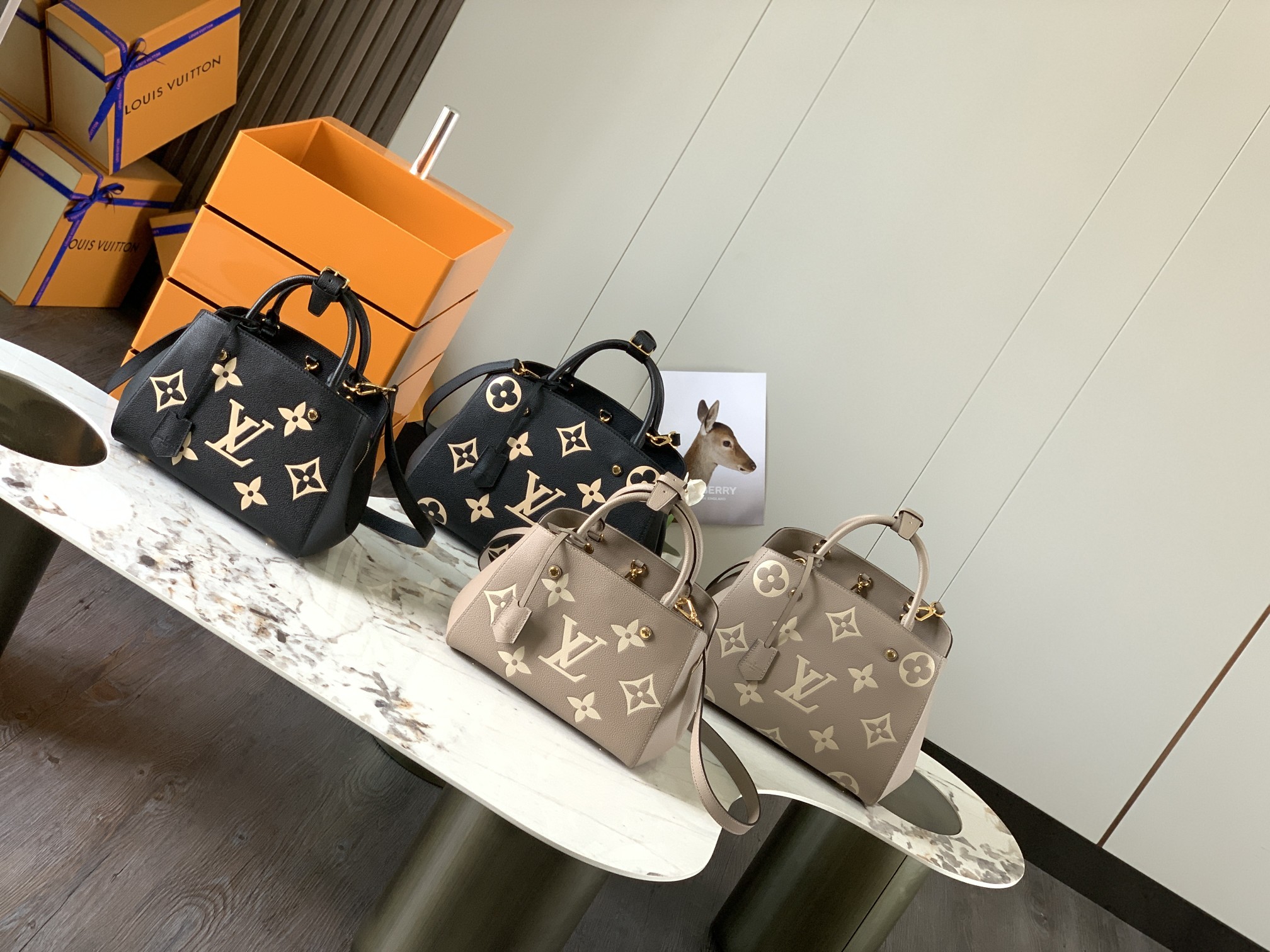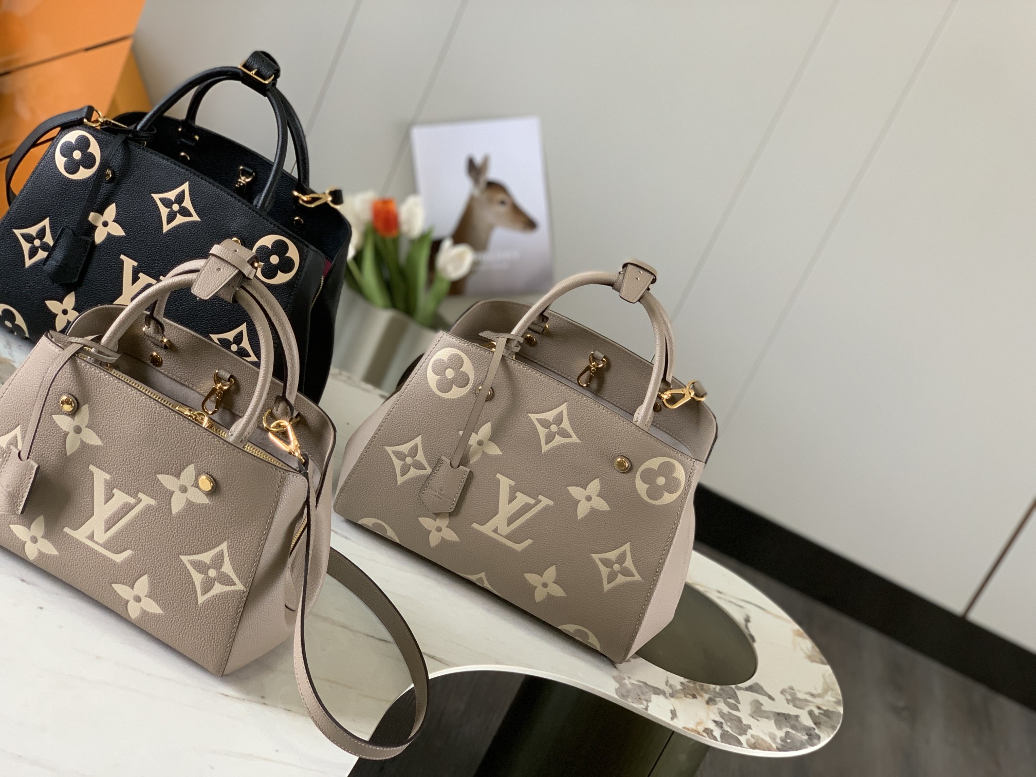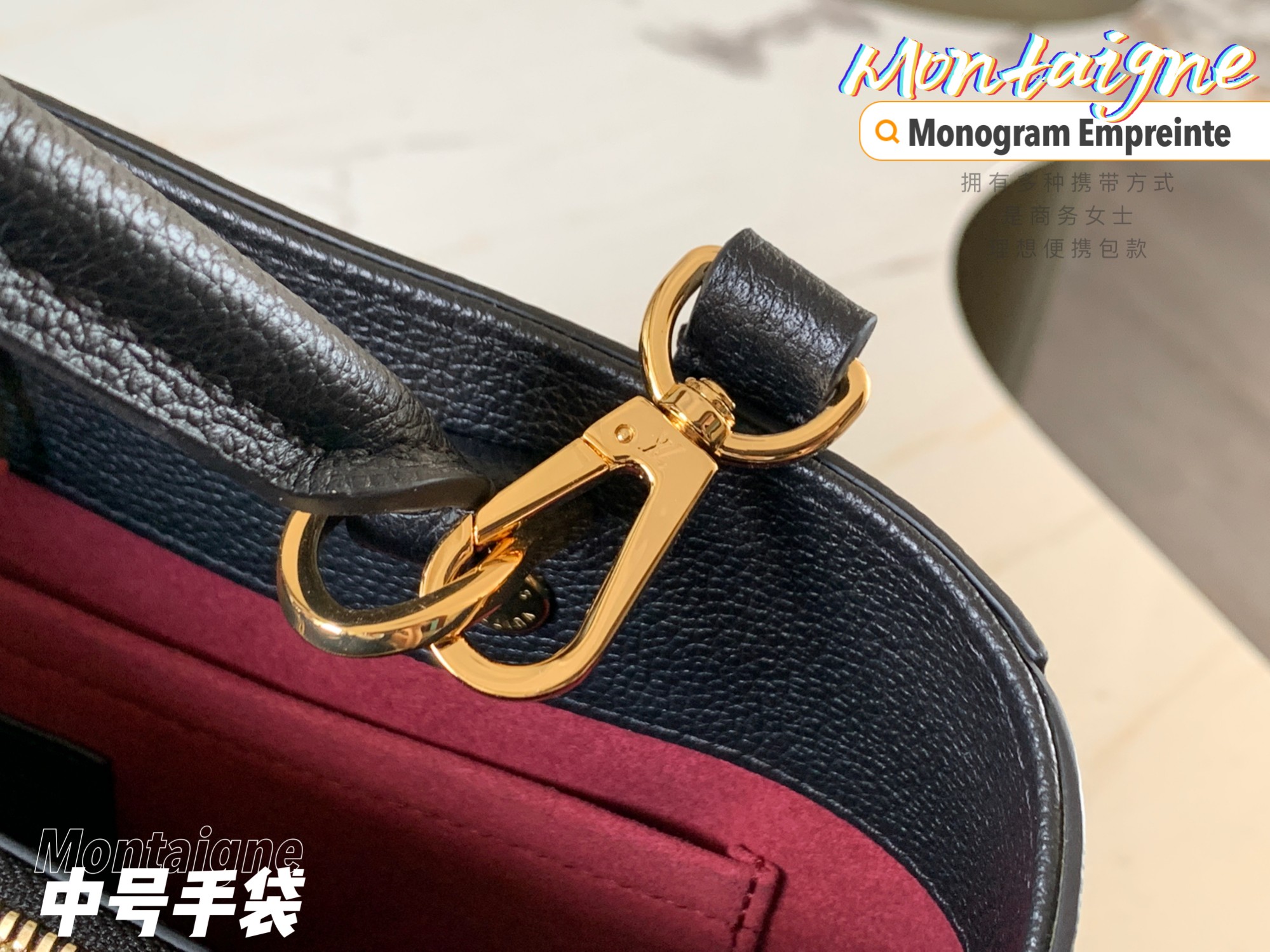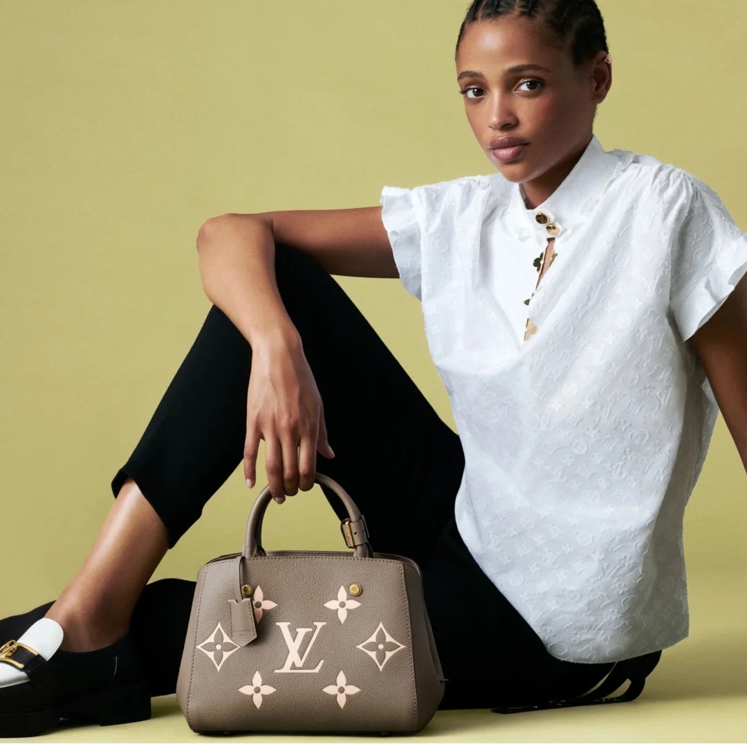 The Montaigne BB handbag is made from grained leather with a medium-sized all-over Monogram motif. The pattern is first printed then embossed into the leather. The result is an eye-catching bag with structured lines, ideal for office to off-duty use. It can be worn over the shoulder, thanks to its detachable strap. 29.0 x 20.0 x 13.0 cm ( length x height x width ) Black/Beige Embossed grained cowhide leather Grained cowhide-leather trim Microfiber lining Gold-color hardware Hook to secure belongings Central zipped compartment 2 wide compartments Inside double pocket Inside flat pocket Key bell 4 protective metal base feet Strap: Removable, not adjustable Strap Drop: 55.0 cm Handle: Double This reference is either Made in France, Spain, Italy or in the US. M45489 Tourterelle/Cream M45778 Black/Beige Your browser does not support the video tag.