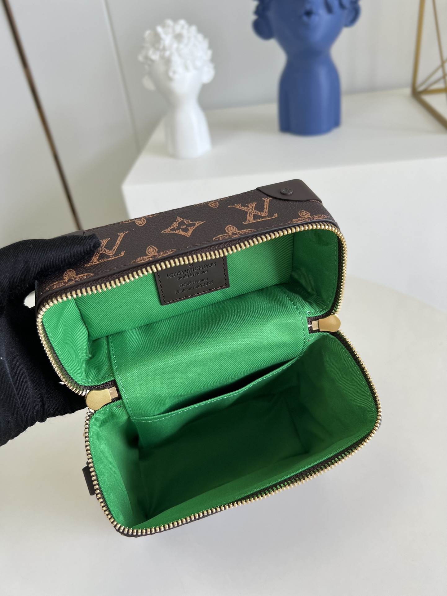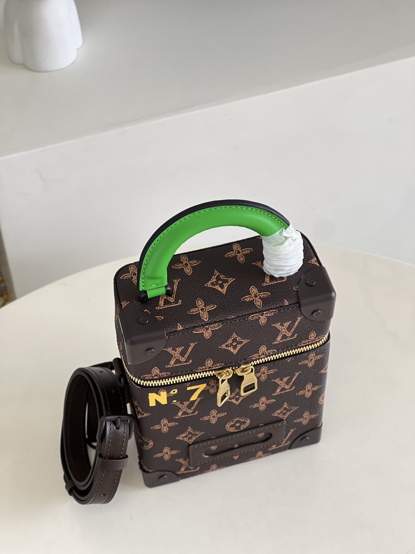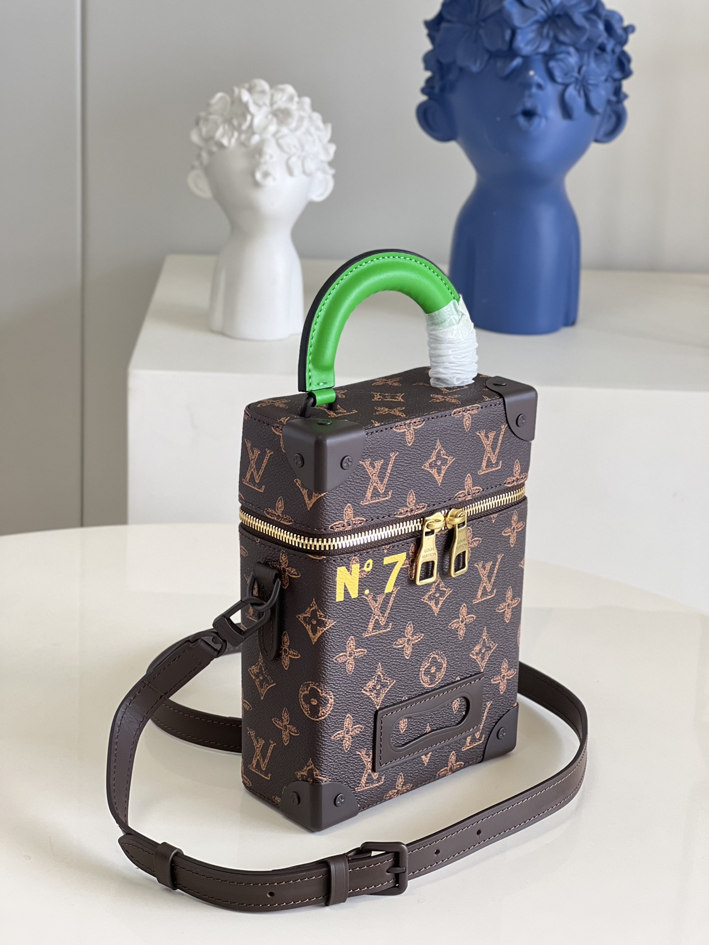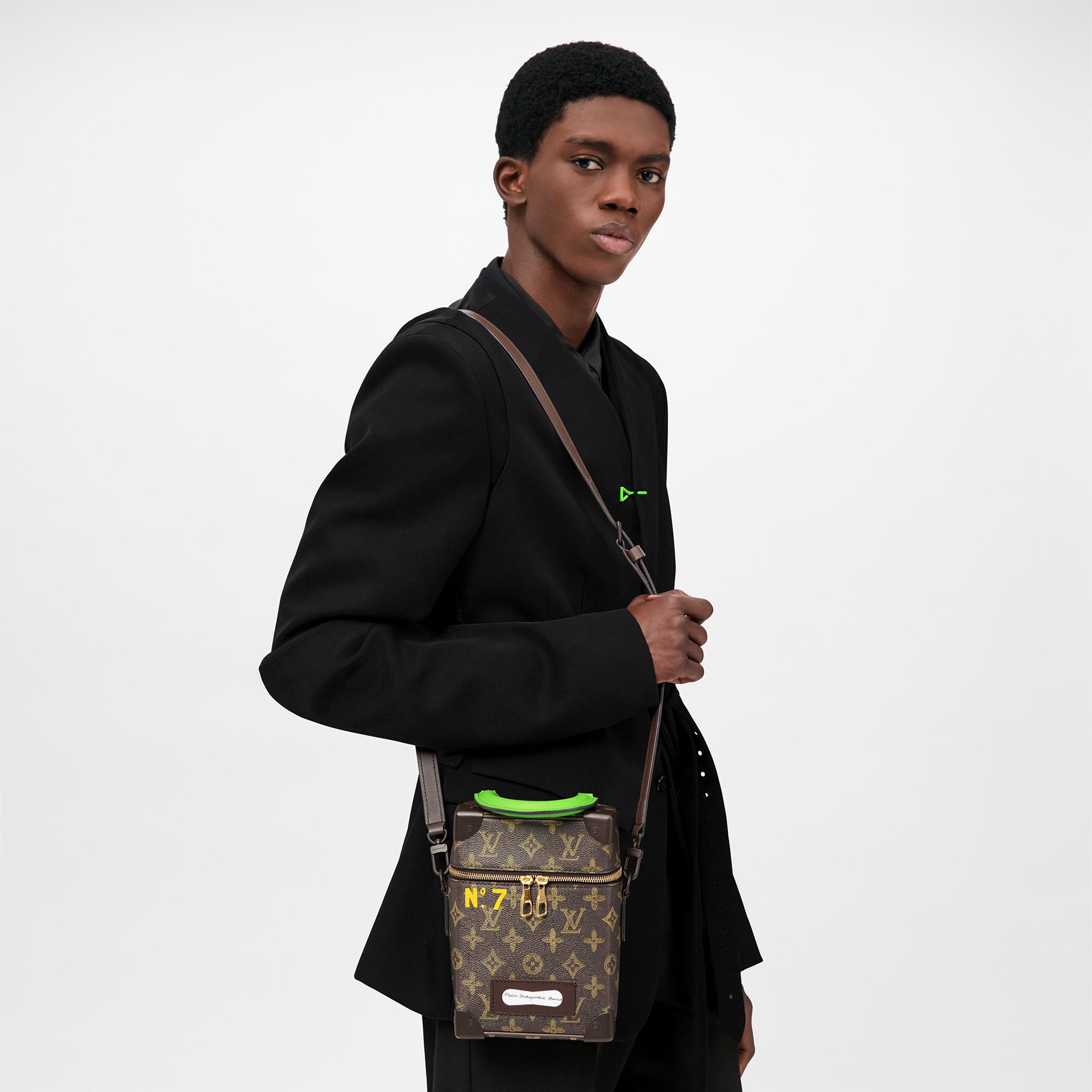 Inspired by the House’s historic luggage, the Vertical Box Trunk for Spring-Summer 2022 is a unique, contemporary everyday bag. Classic Monogram canvas is emblazoned with “N°7” in honor of Virgil Abloh’s seventh Louis Vuitton collection. Compact but roomy enough to hold all the essentials, it features a neon green handle and lining for a splash of exuberant color. Product details 6.1 x 8.7 x 3 inches (length x Height x Width) Monogram coated canvas Cowhide leather trim Textile lining Gold-color hardware Trunk-inspired riveted metal corners Double zipped closure Large main compartment Inside flat pocket Personalizable trunk-style name tag Strap:Removable, adjustable Strap drop: 20.5 inches Strap drop max: 23.2 inches Chain:Not removable Handle:Single This reference is either Made in France, Spain, Italy or in the US.M59664 MonogramLouis Vuitton Vertical Box Trunk - Men - BagsMen - Bags - Messenger and Crossbody Bags - Vertical Box Trunk
