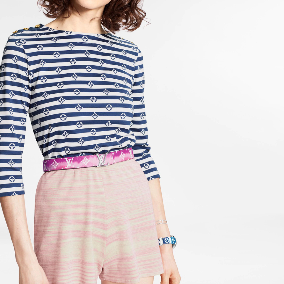 The LV Iconic 30mm reversible belt is emblazoned in two signature House patterns: the Monogram LV Escale on one side and Monogram Giant canvas on the other. An eye-catching LV Iconic buckle also graces the design. Produced in deeply saturated colors, this playful take on a Louis Vuitton classic heralds the onset of summer.