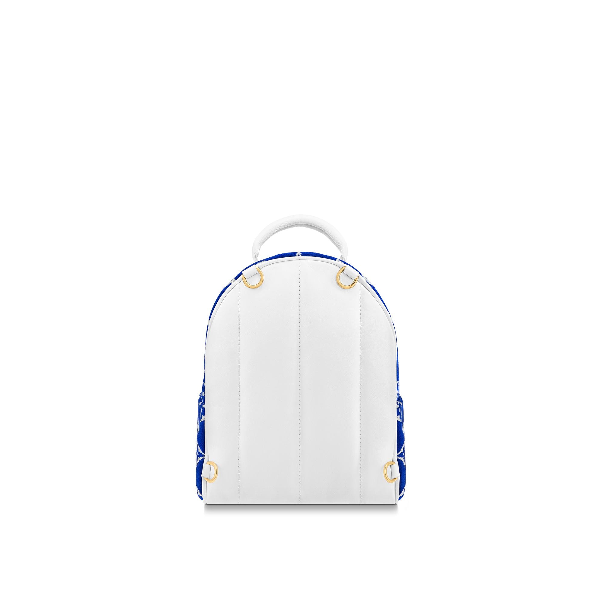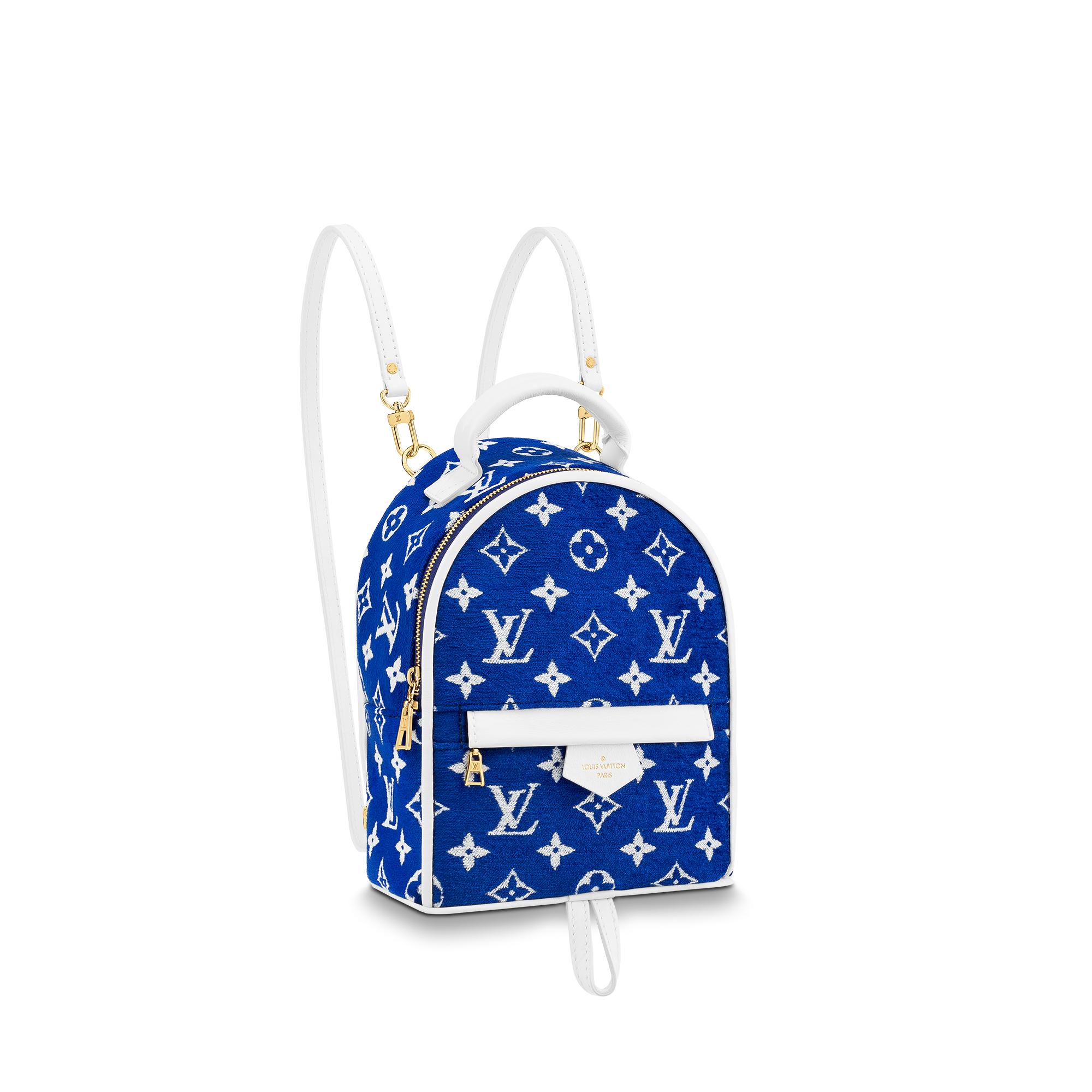 Fashionable and sporty, the Palm Springs Mini backpack hails from the LV Match collection, inspired by the world of Grand Slam tennis tournaments. Made from a velvety Monogram jacquard woven with eco-friendly chenille yarns, the bag features contrasting white leather trim and gold-finish hardware. Product details 6.7 x 8.7 x 3.9 inches (length x Height x Width) Blue Monogram velvet jacquard Cowhide-leather trim Microfiber lining Gold-color hardware Zip closure Leather scarf loop Outside zipped front pocket Inside flat pocket Handle:Single This reference is either Made in France, Spain, Italy or in the US.M46207 Louis Vuitton Palm Springs Mini Autres Toiles Monogram - Women - HandbagsWomen - Handbags - All Collections - Palm Springs Mini
