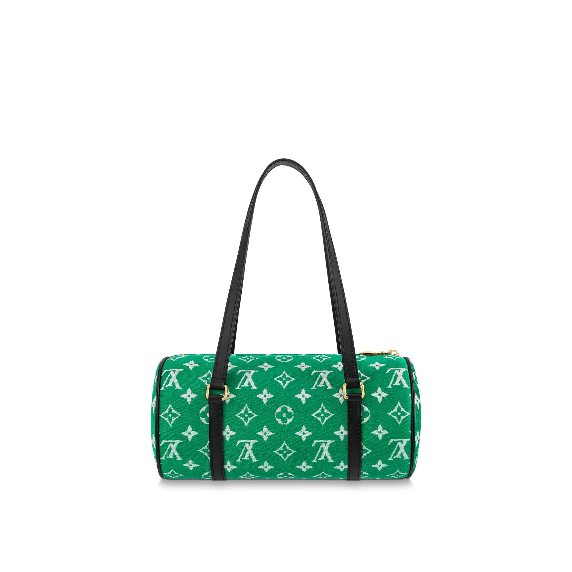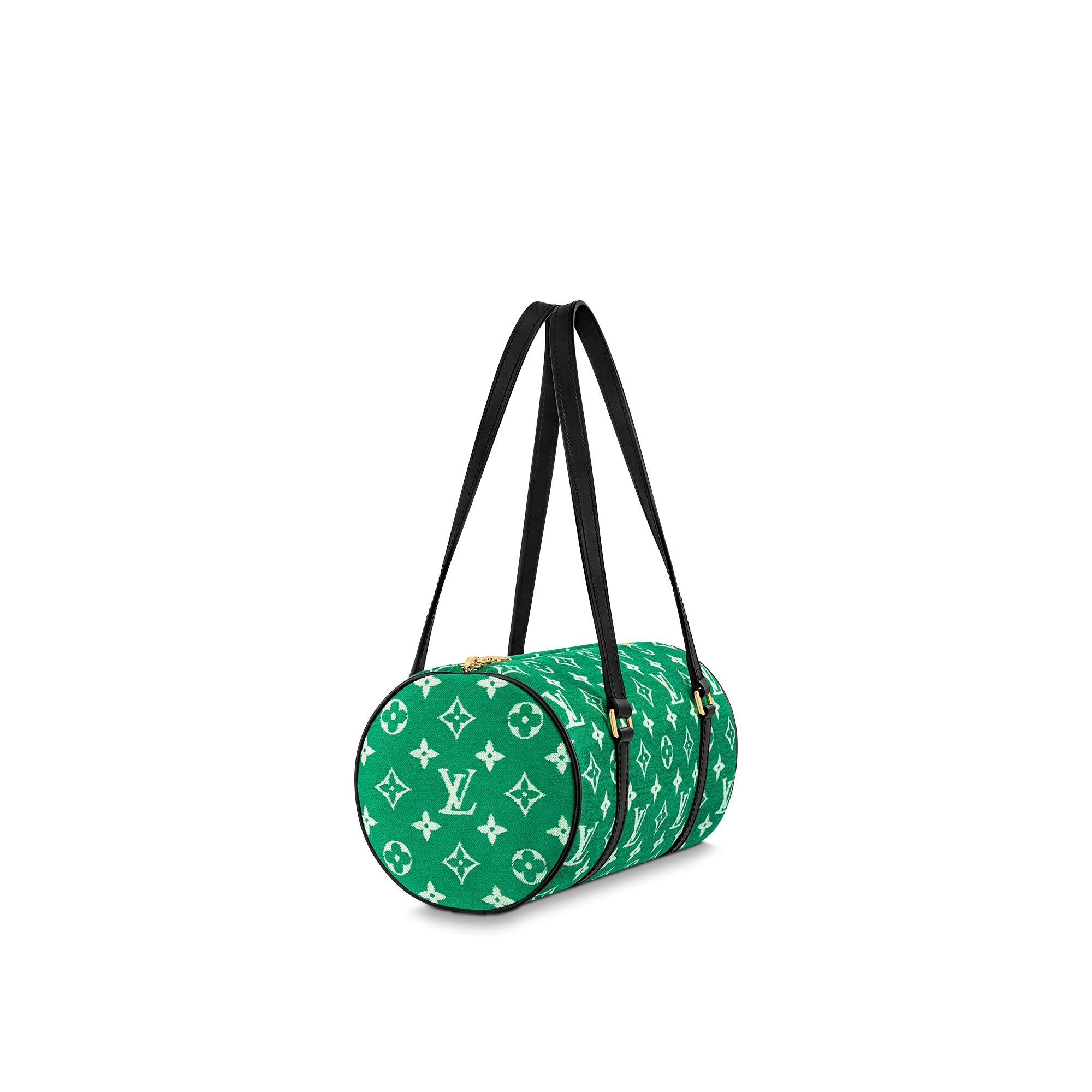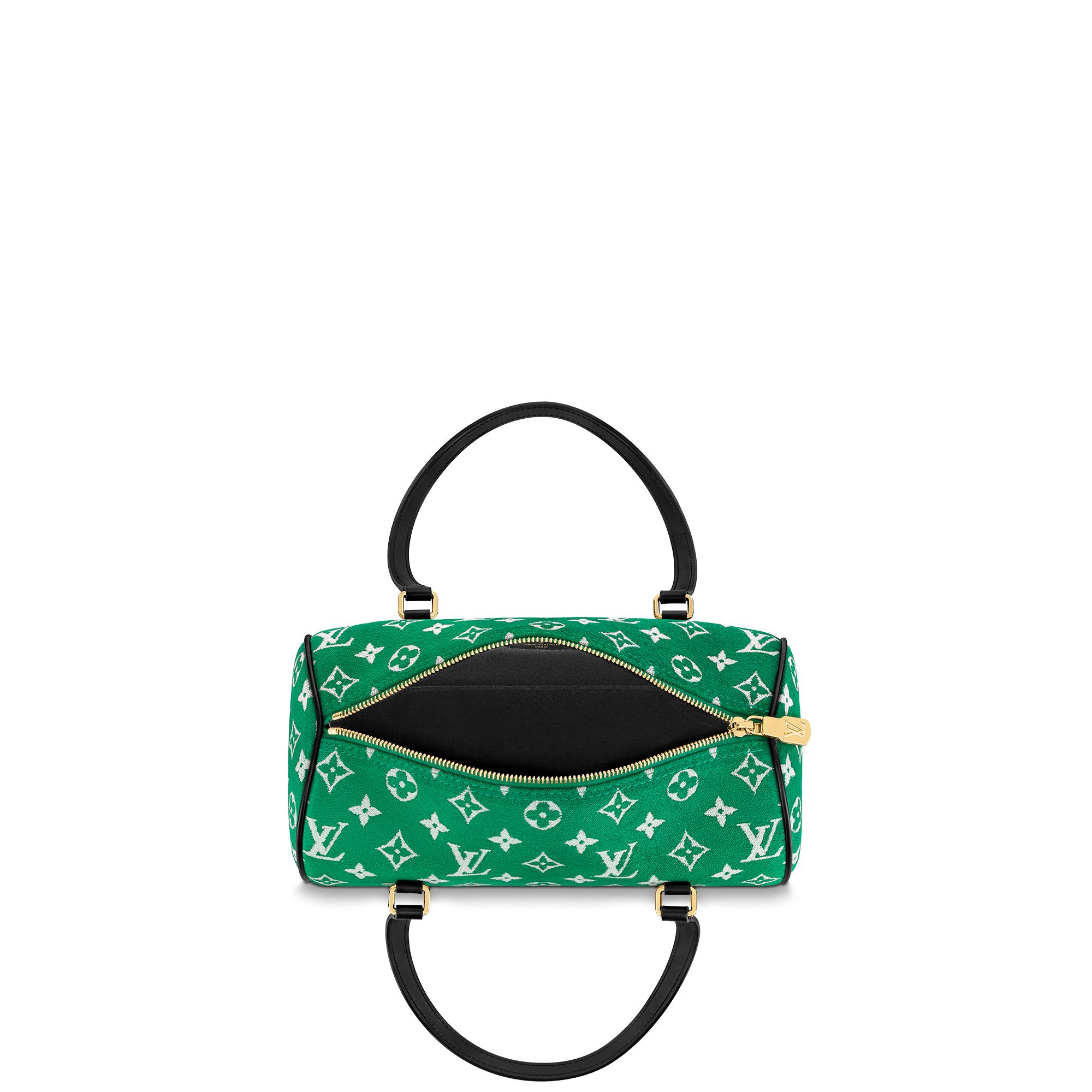 Inspired by Grand Slam tennis, Nicolas Ghesquière fashions the Papillon handbag from green Monogram jacquard velvet. Chenille yarn is woven together with a jacquard technique to create a Monogram pattern with a soft velour feel. Long shoulder straps make the Papillon a practical small bag. Product details 12.2 x 5.9 x 5.9 inches (length x Height x Width) Green Monogram jacquard velvet Cowhide-leather trim Microfiber lining Gold-color hardware Inside flat pocket D-ring Handle:Double This reference is either Made in France, Spain, Italy or in the US.M46206 Louis Vuitton Papillon Autres Toiles Monogram - Women - HandbagsWomen - Handbags - Shoulder and Cross Body Bags - Papillon