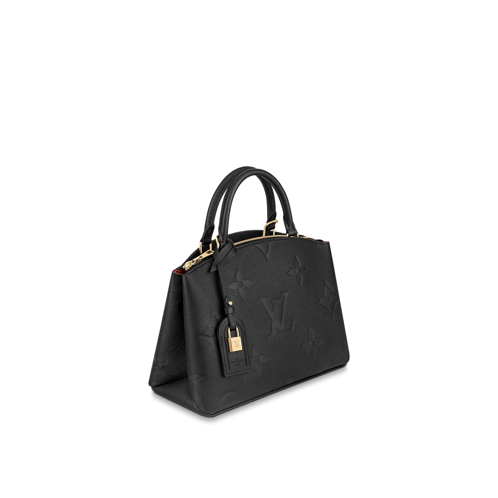 The sophisticated Petit Palais is a smaller handbag made from soft, grained leather with an embossed oversized Monogram pattern. The leather name tag and gold-color padlock bring a touch of elegance and evoke the House’s travel roots. There are two top handles for hand carry; the removable and adjustable strap provides comfortable shoulder wear. Product details 11.4 x 7.1 x 4.9 inches (length x Height x Width) Noir Embossed grained cowhide leather Grained cowhide-leather trim Microfiber lining Gold-color hardware 3 Compartments with one central zipped compartment 2 inside flat pockets Name tag Padlock Strap:Removable, adjustable Strap drop: 18.5 inches Strap drop max: 21.3 inches Handle:Double This reference is either Made in France, Spain, Italy or in the US.M58916 Monogram Empreinte LeatherLouis Vuitton Petit Palais Monogram Empreinte Leather - Women - HandbagsWomen - Handbags - Shoulder and Cross Body Bags - Petit Palais
