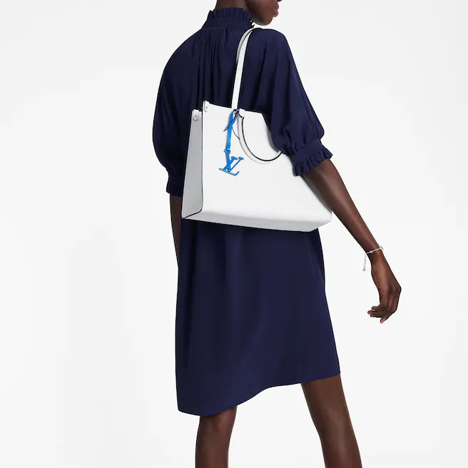 The Onthego MM tote bag is made from Epi grained leather with an inside lining in a contrasting color and accessorized with an eye-catching LV charm. Two sets of handles, long and short, allow hand and shoulder carry, and a roomy interior, which easily fits work essentials, including a laptop, make it a versatile everyday bag.