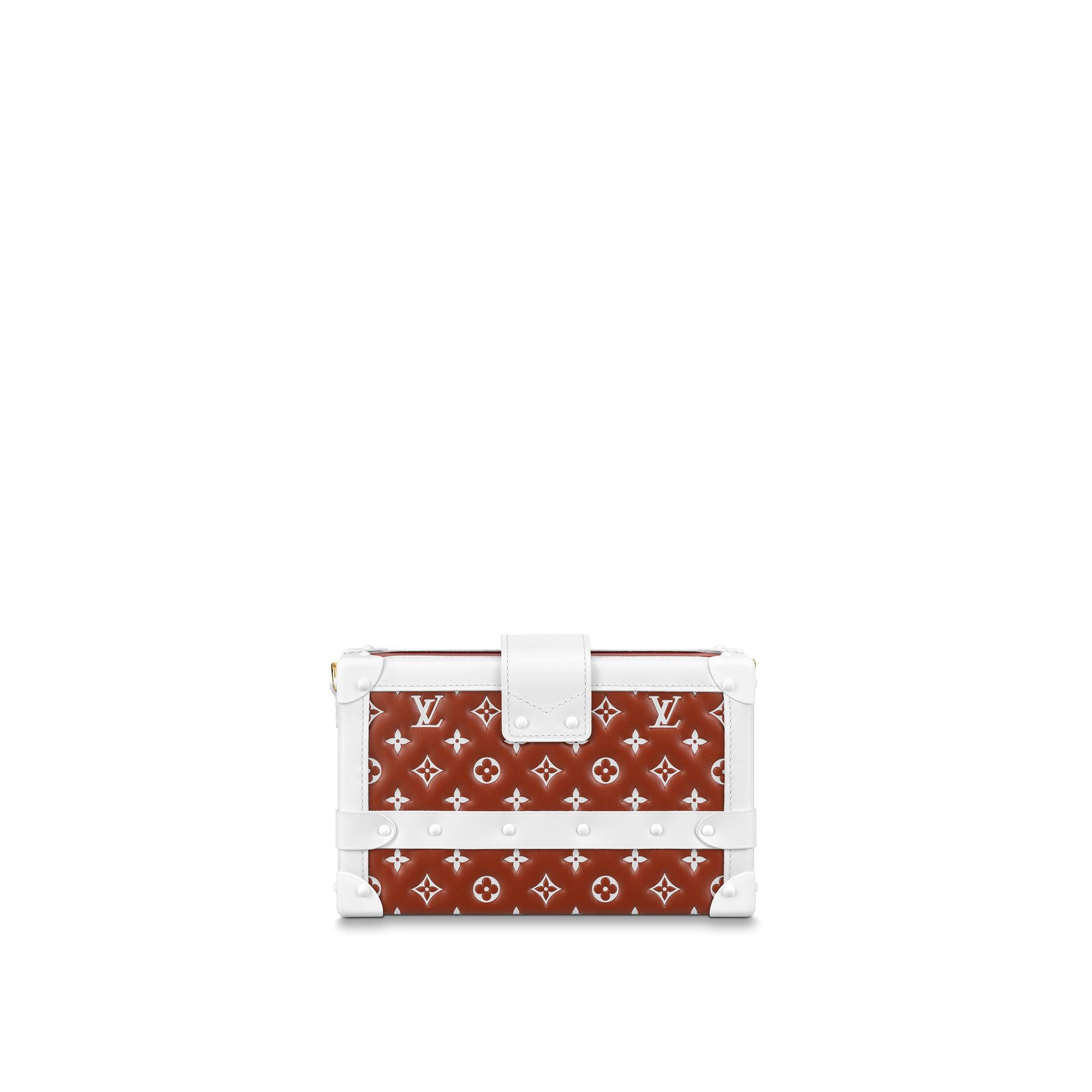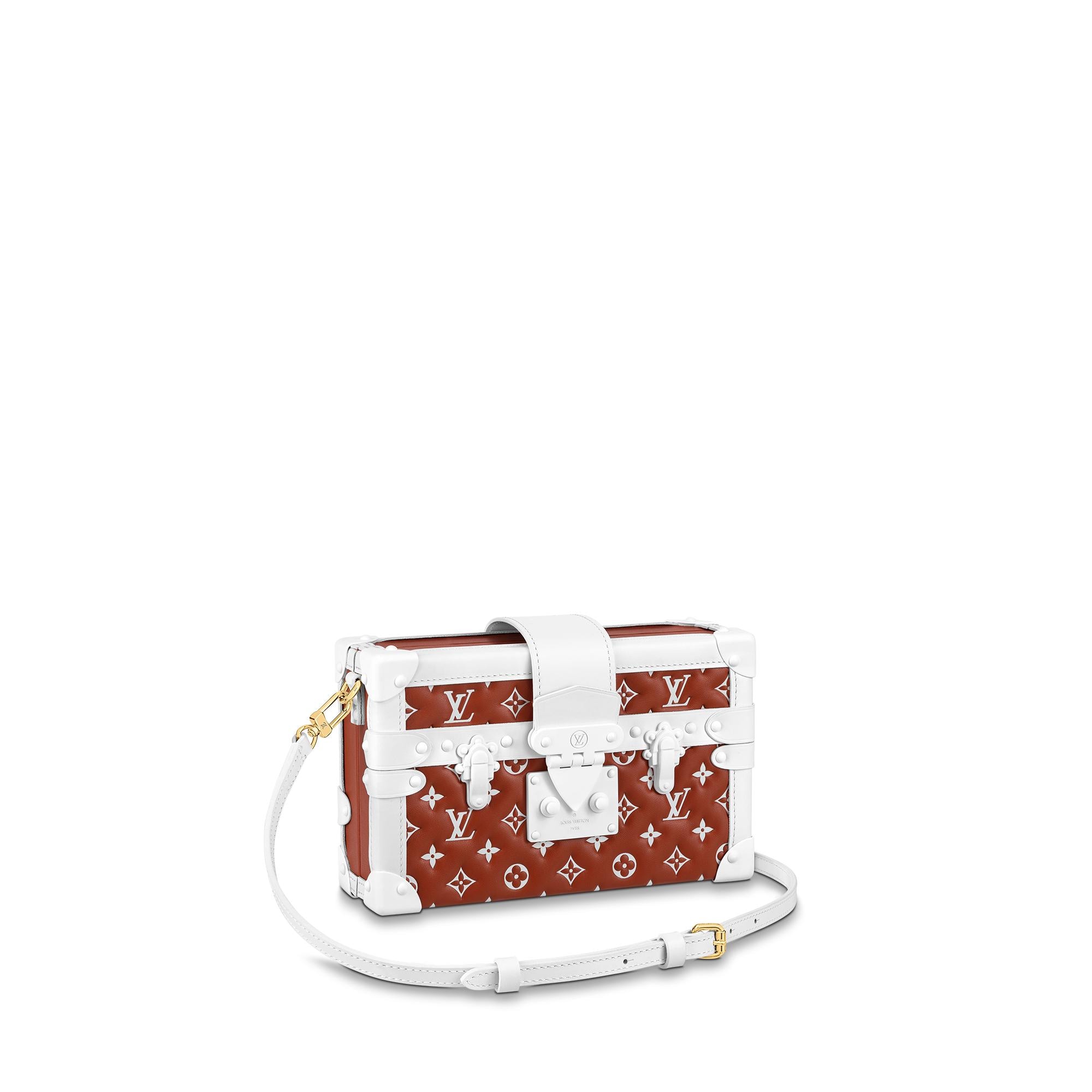Part of the LV Match capsule, a salute to Grand Slam tennis, this Petite Malle handbag is made from puffy, Monogram embossed lambskin. White calfskin trim contrasts with the terracotta leather, a nod to the lines on a clay court. Fun and fashionable, this luxurious “little trunk” can be carried as a clutch or worn on its detachable strap. Product details 7.9 x 4.9 x 2.4 inches (length x Height x Width) Terracotta Brown Monogram embossed puffy lambskin Calfskin trim Sheepskin lining White hardware S-lock Magnetic closure Inside flat pocket Strap:Removable, adjustable Strap drop: 19.7 inches Strap drop max: 21.7 inches This reference is either Made in France, Spain, Italy or in the US.M20764 Louis Vuitton Petite Malle H27 - Women - HandbagsWomen - Handbags - Shoulder and Cross Body Bags - Petite Malle
