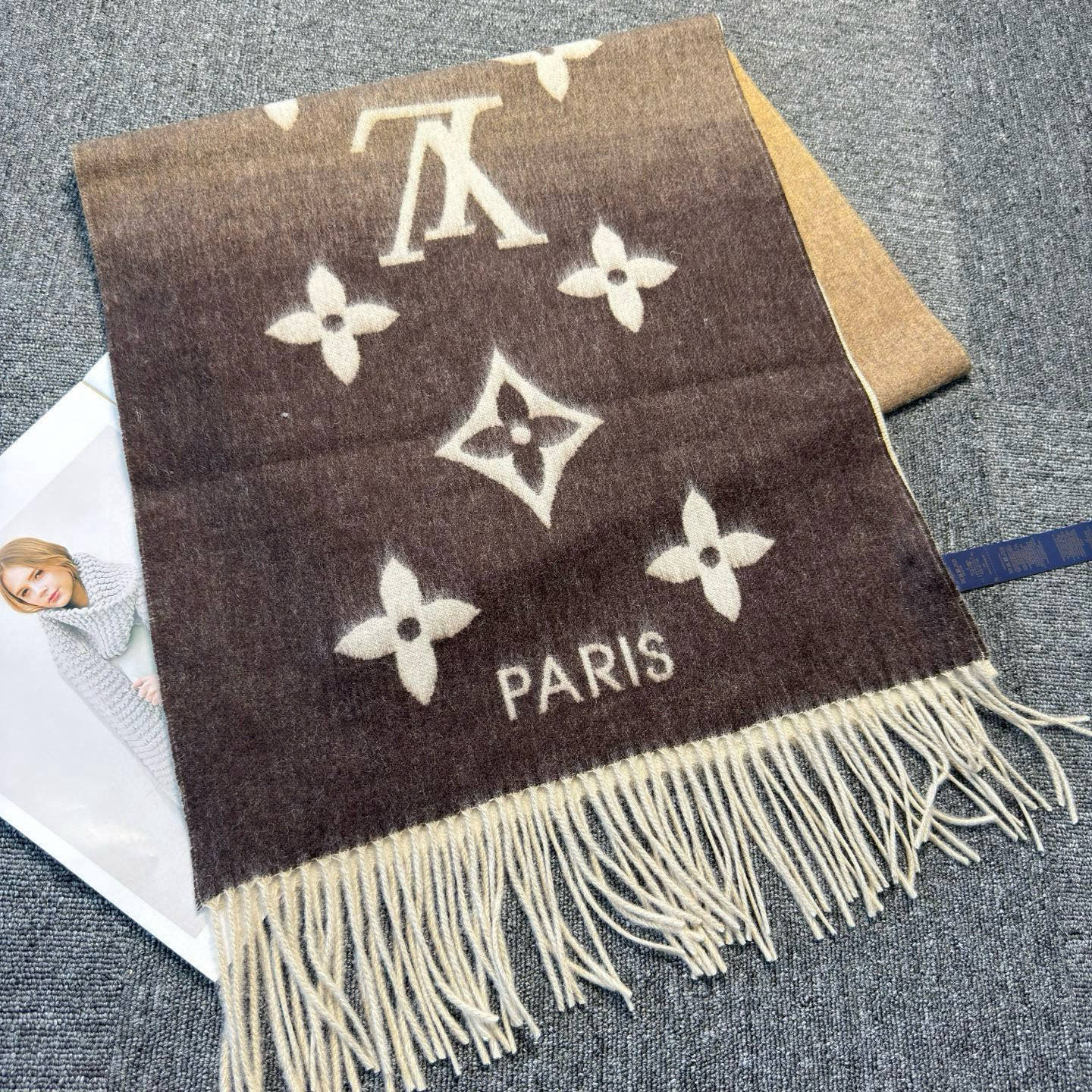 A new-season upgrade on a classic piece, the Reykjavik Gradient scarf is crafted from hand-dyed gradient yarns to create a striking beige ombré effect. It is emblazoned with an oversized Monogram Flower and LV Initial pattern for a contemporary touch. Constructed from pure cashmere in a long and large shape, it is a cozy piece for cooler days. Detailed Features 74.8 x 17.7 inches(length x Height) Beige Jacquard weave Gradient effect Contrasted pattern of Monogram Flowers and LV Initials Contrasted Louis Vuitton signature at bottom Fringe finish Dry clean only M73675 BeigeLouis Vuitton Reykjavik Gradient Scarf in Beige - Women - AccessoriesWomen - Accessories - Scarves and Shawls - Reykjavik Gradient Scarf
