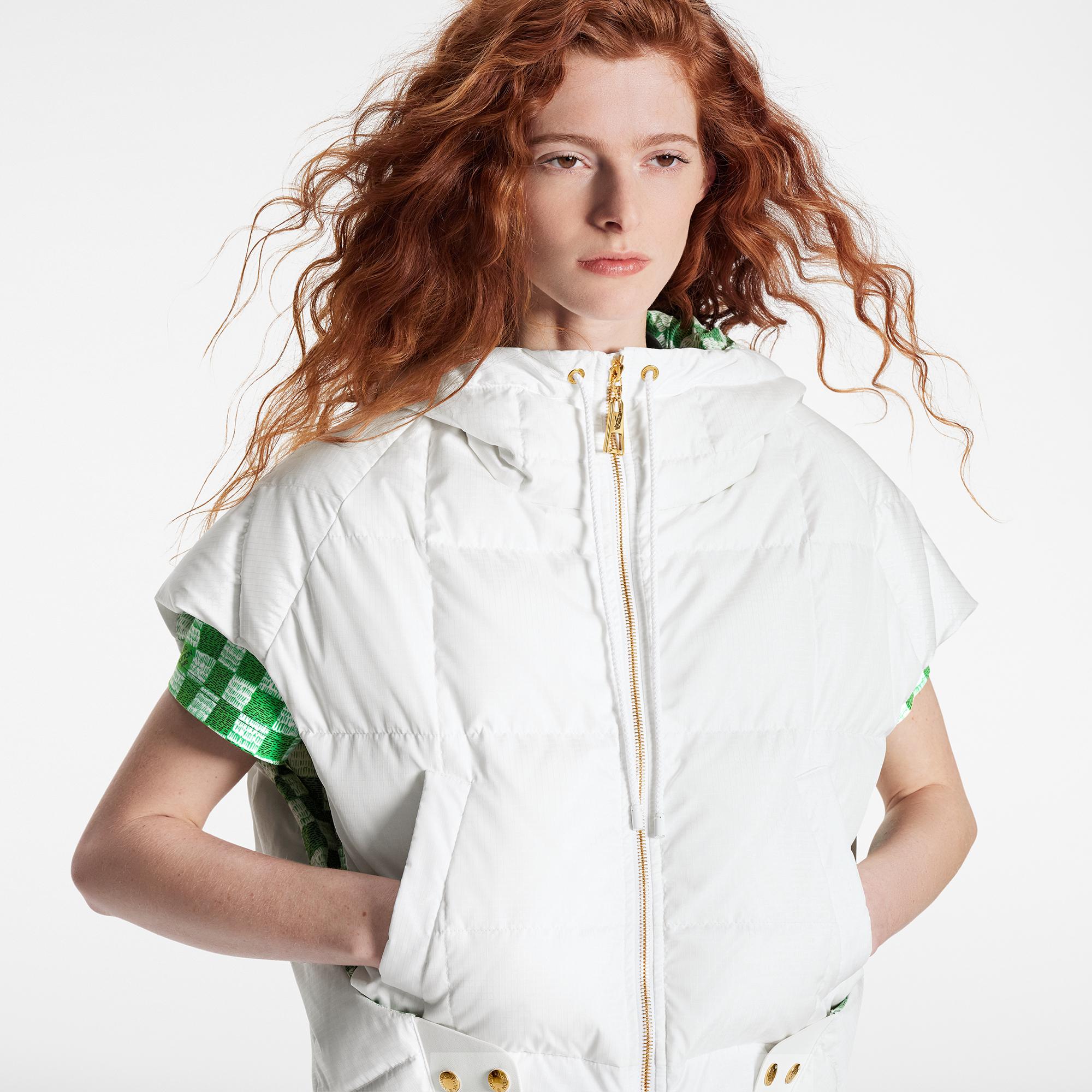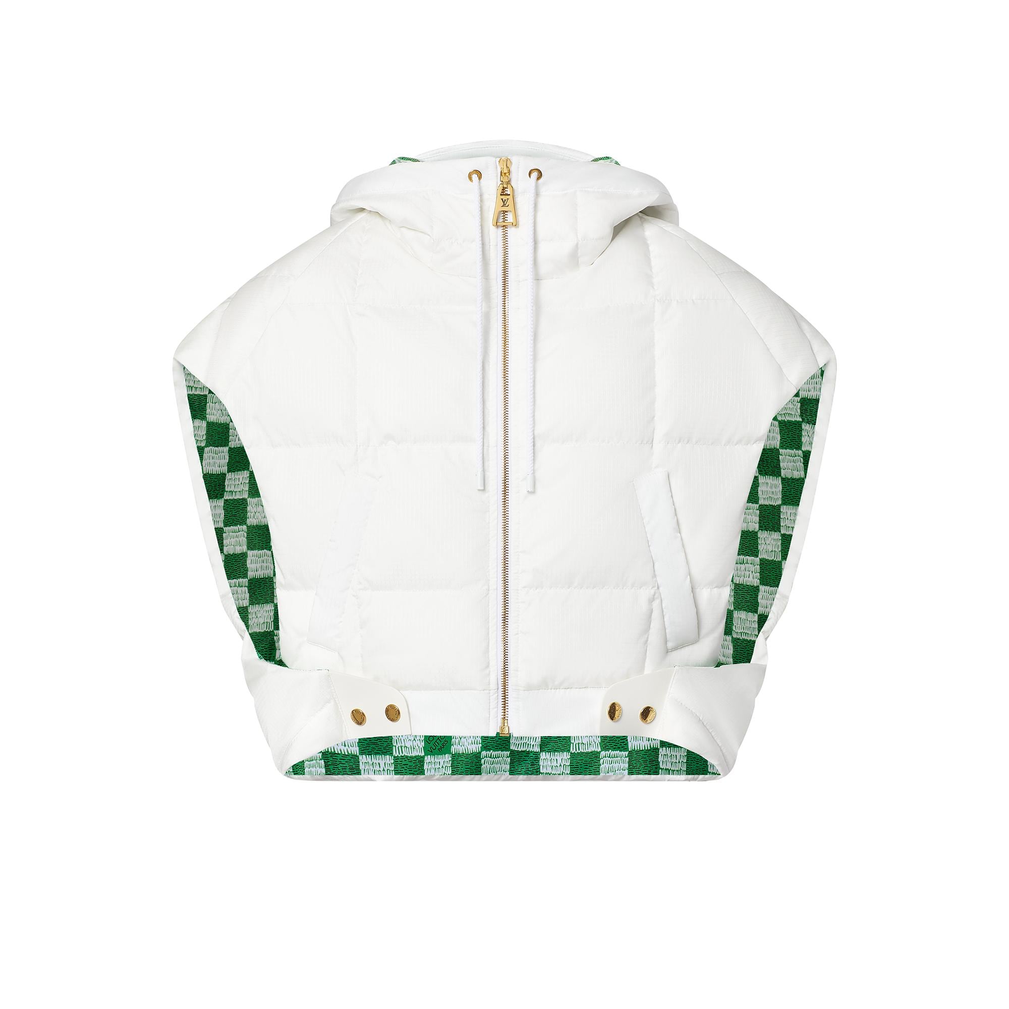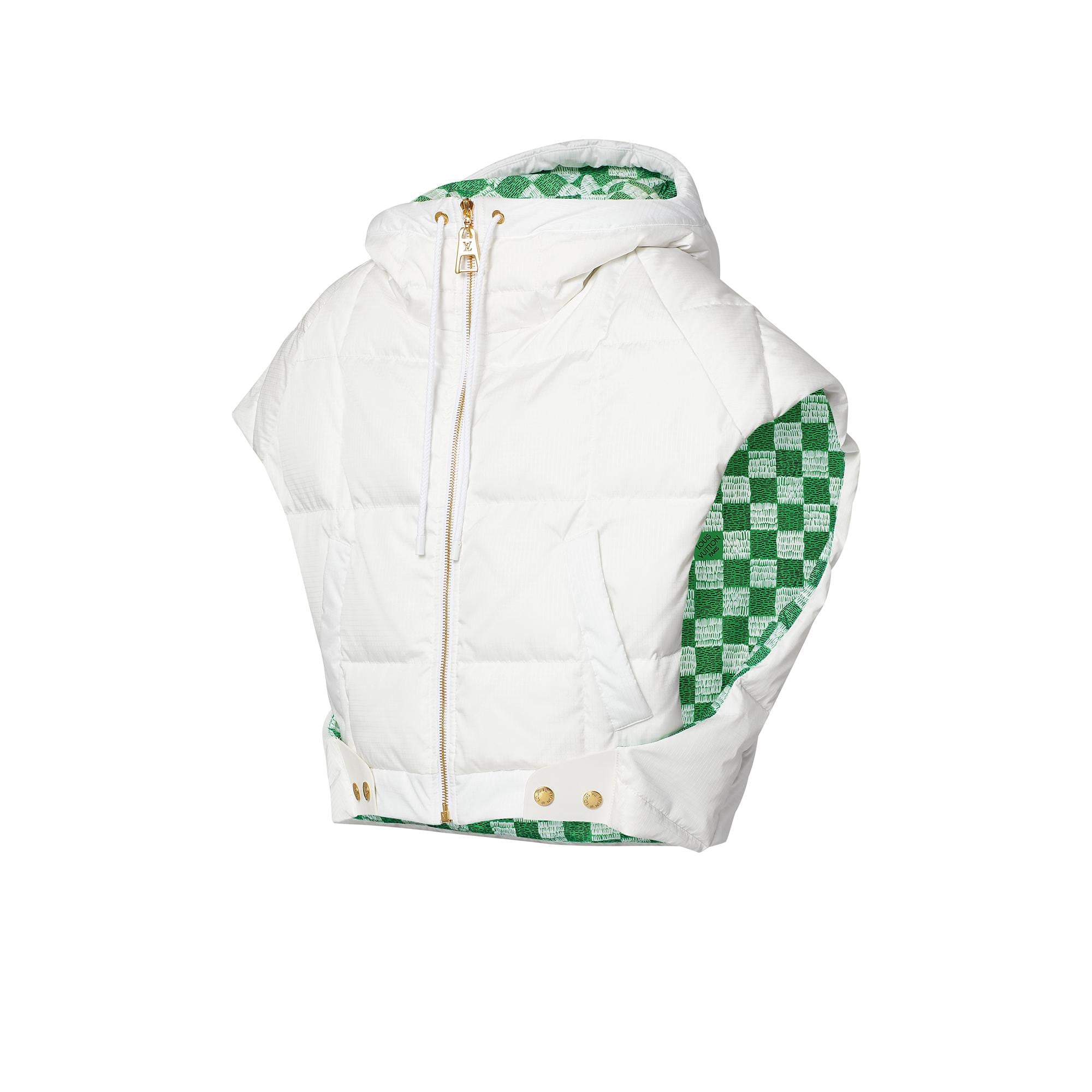 A signature cut with an understated graphic accent. This cozy cropped open-arm jacket is padded with feathers for exaggerated volume inspired by the House’s iconic Pillow Boots. Crafted from water-repellent ECONYL with an LV Match Damier lining and brass hardware for a chic metallic accent. Product details Main Material : 100% Polyamide Other Material : 91% White Goose Down, 9% White Duck Down Lining : 100% Polyamide Vert Vif, Green Regular fit Model wears size 36 Model measurements : Bust 30'' / 76 cm, Height 5' 10" / 176 cm, Waist 23,2" / 59 cm, Hips 34'' / 86 cm Made in Italy Do not wash Do not bleach Do not tumble dry Iron at a maximum sole-plate temperature of 110°C Mild professionnal dry cleaning in hydrocarbons1AA8Z7 38Louis Vuitton LV Match Open-Arm Jacket - Women - Ready-to-WearWomen - Ready-to-Wear - Coats and Jackets - LV Match Open-Arm Jacket