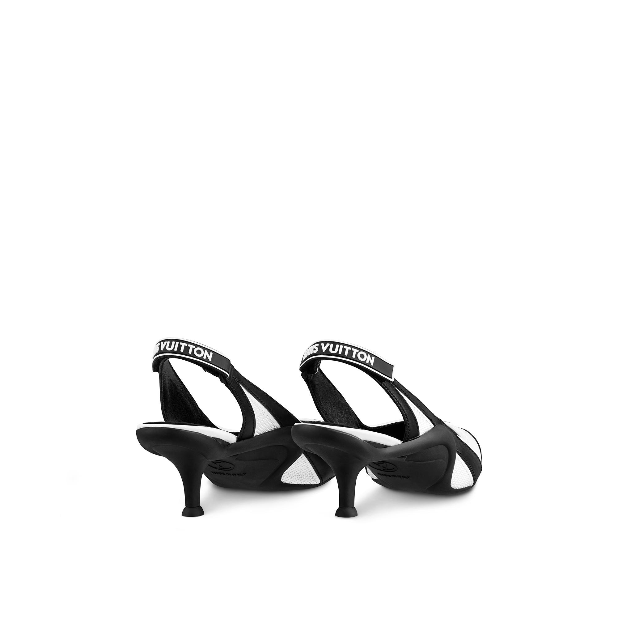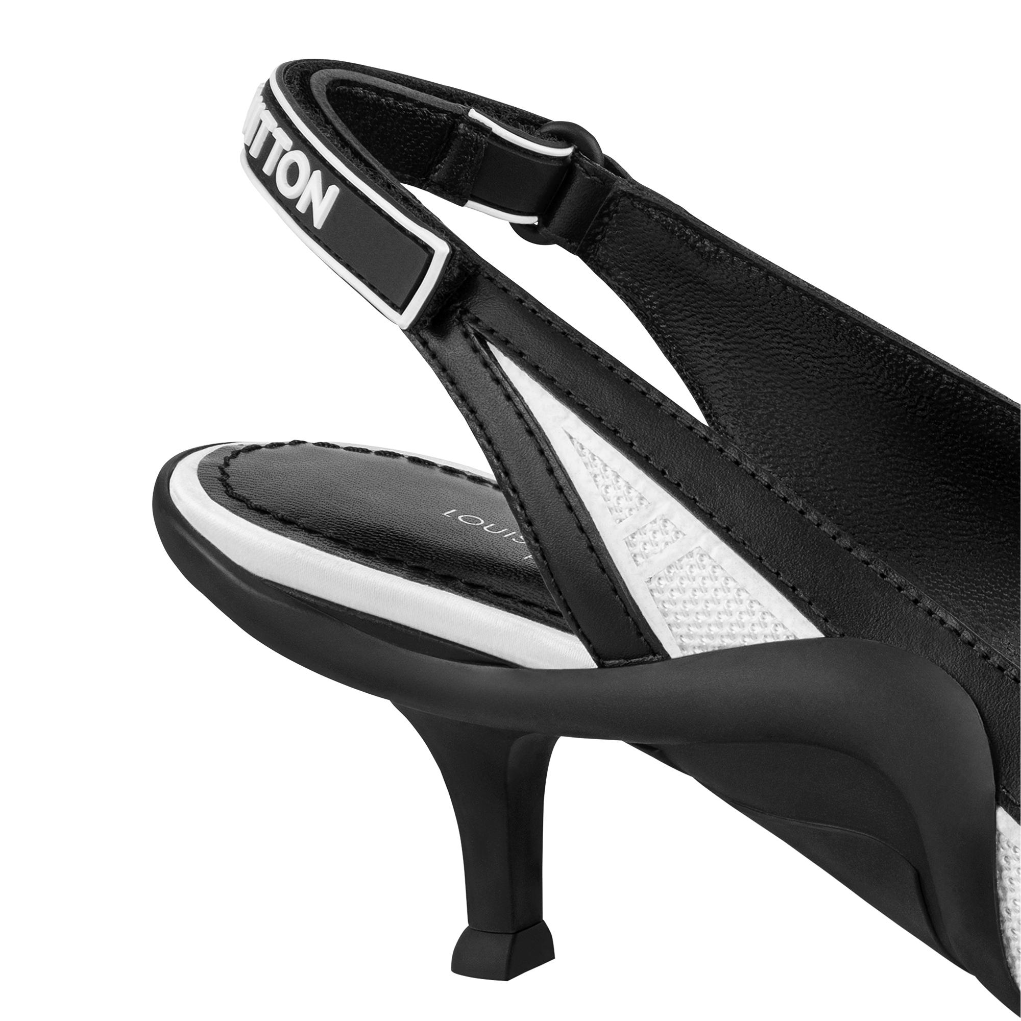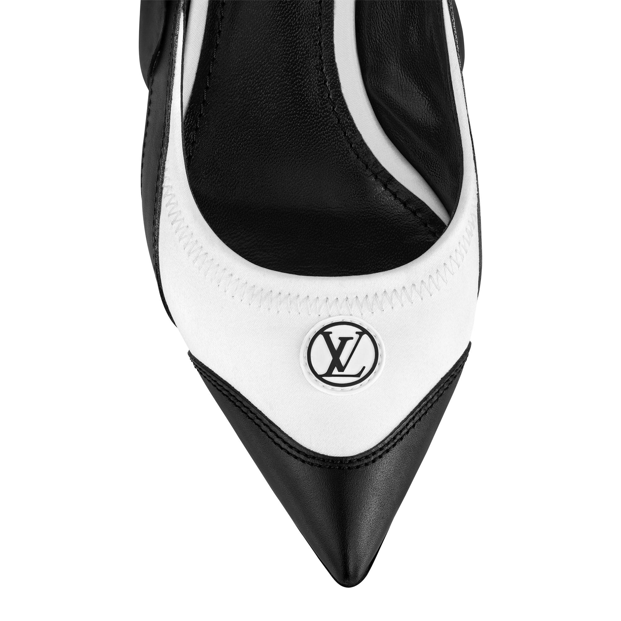 The Archlight slingback pump is an elegant reinterpretation of one of Louis Vuitton's most iconic models, the LV Archlight sneaker. The upper combines technical satin and calf leather, while the ultra-supple rubber outsole has a wavy shape that references the design of the sneaker. This model features an adjustable velcro strap at the back and a feminine kitten heel. This model tends to run large. We recommend that you order a half-size smaller than your usual shoe size. Product details White Technical satin and calf leather Velcro strap Supple rubber outsole 5.5 cm / 2.2-inch heel LV Circle signature Louis Vuitton signature on the strap Made in Italy1A9QTQ WhiteLouis Vuitton Archlight Slingback Pump - Women - ShoesWomen - Shoes - Pumps - Archlight Slingback Pump