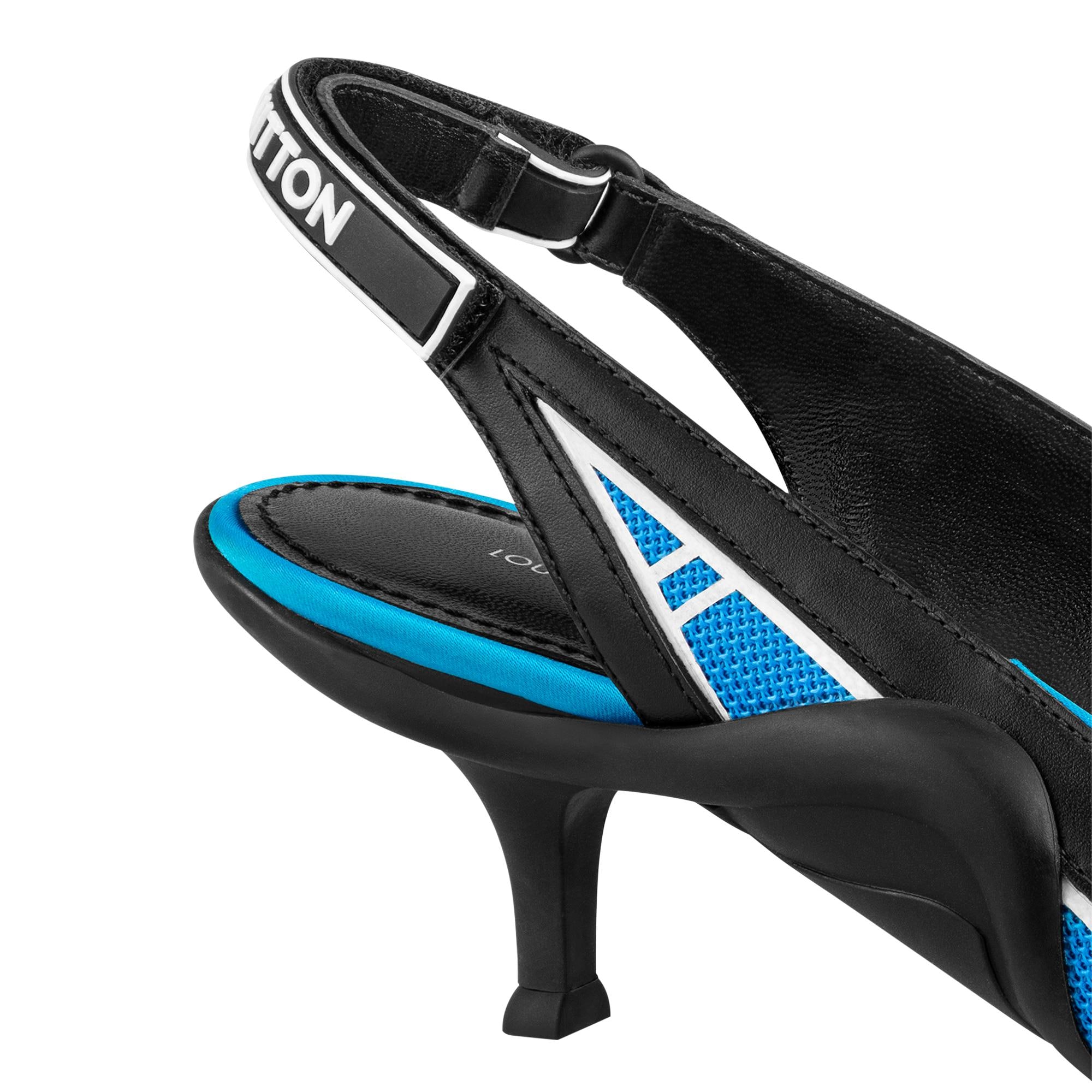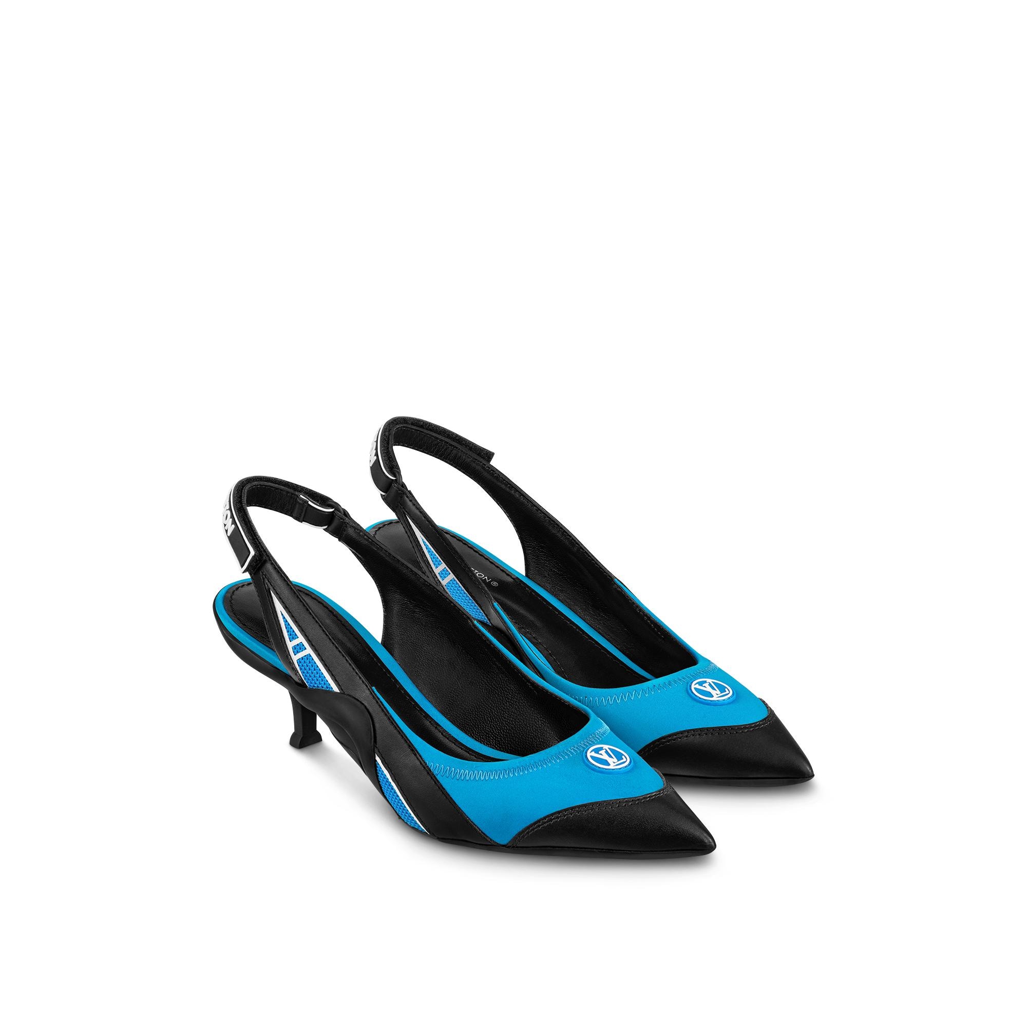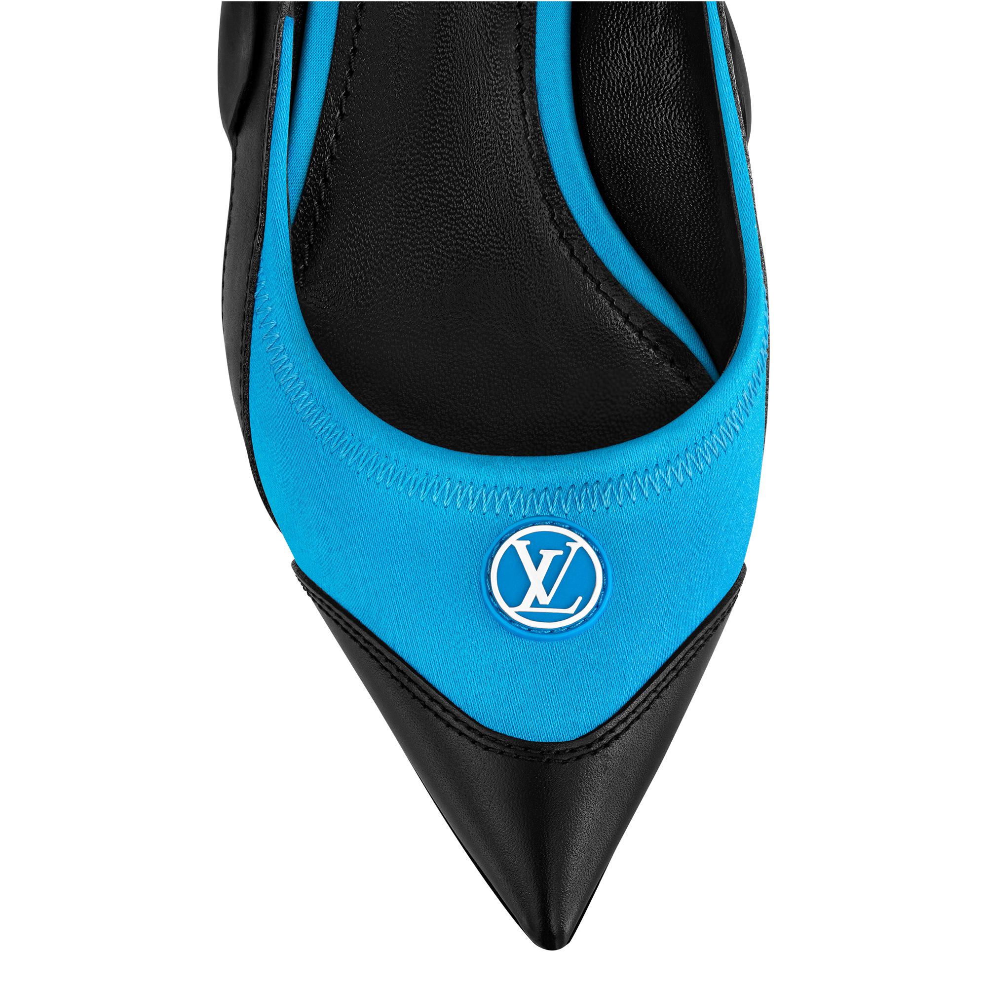 The Archlight slingback pump is an elegant reinterpretation of one of Louis Vuitton's most iconic models, the LV Archlight sneaker. The upper combines technical satin and calf leather, while the ultra-supple rubber outsole has a wavy shape that references the design of the sneaker. This model features an adjustable velcro strap at the back and a feminine kitten heel. This model tends to run large. We recommend that you order a half-size smaller than your usual shoe size. Product details Blue Technical satin and calf leather Velcro strap Supple rubber outsole 5.5 cm / 2.2-inch heel LV Circle signature Louis Vuitton signature on the strap Made in Italy1A9QVI BlueLouis Vuitton Archlight Slingback Pump - Women - ShoesWomen - Shoes - Pumps - Archlight Slingback Pump