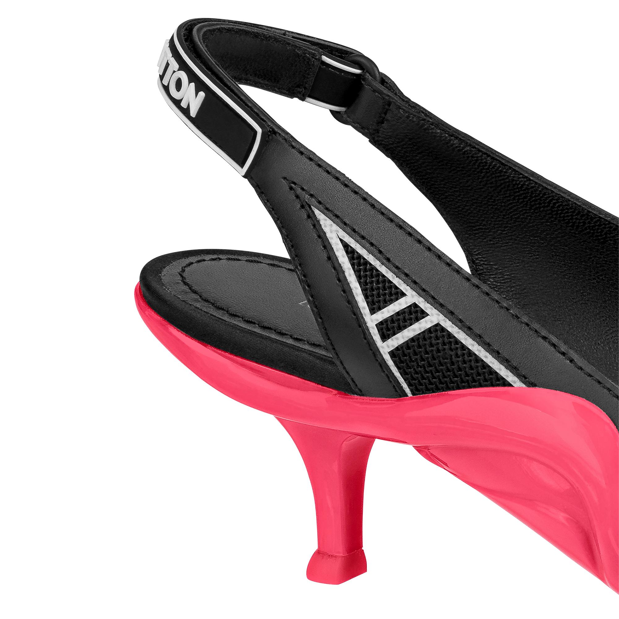 The Archlight slingback pump is an on-trend, kitten-heeled style which references the cult LV Archlight sneaker. Its upper combines technical satin with lambskin and sporty mesh inserts, while its colorful rubber outsole nods to the iconic, wave-shaped design of the sneaker. This model is adjusted at the back with a velcro strap bearing the Louis Vuitton signature. Product details Black / Fuchsia Pink Technical satin Adjustable velcro strap Supple rubber outsole 5.5 cm / 2.2-inch heel LV Circle signature Louis Vuitton signature on the strap Made in Italy1AAC5D Black PinkLouis Vuitton Archlight Slingback Pump - Women - ShoesWomen - Shoes - Pumps - Archlight Slingback Pump