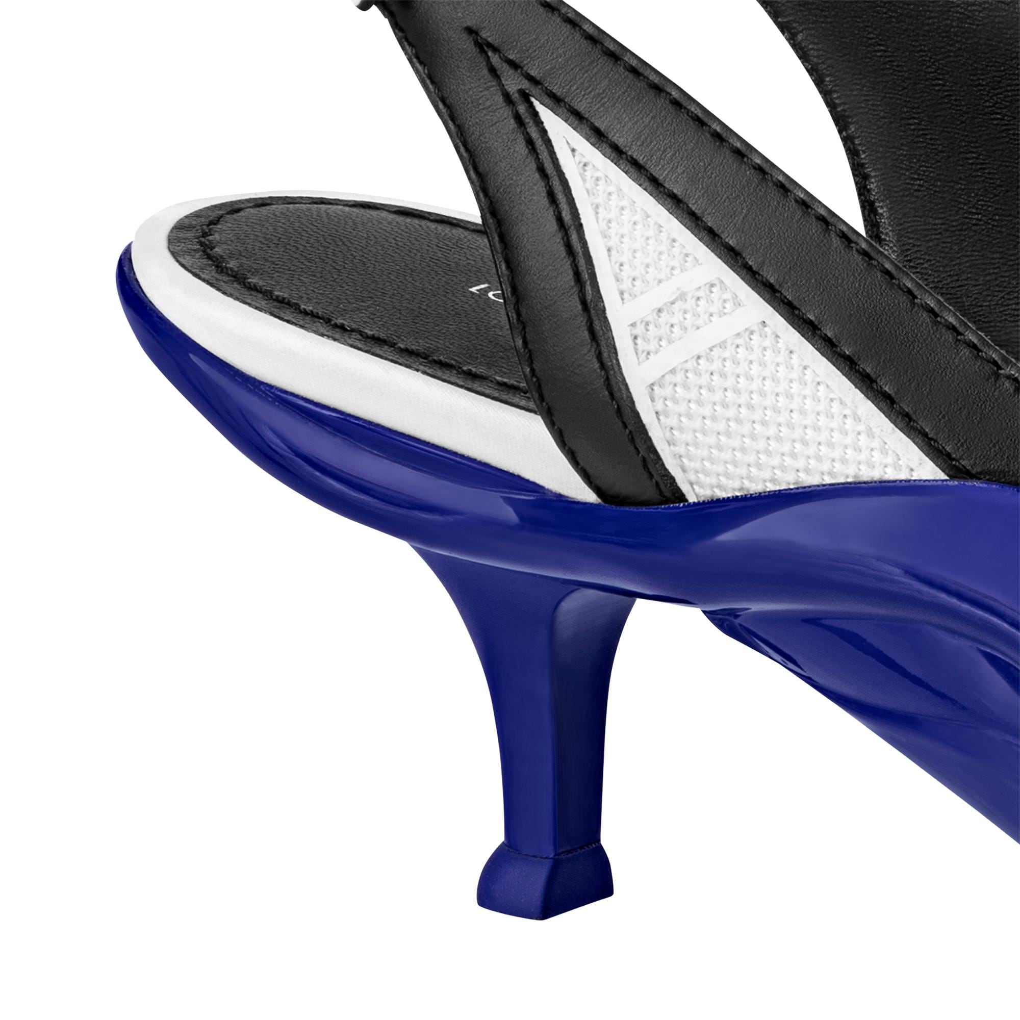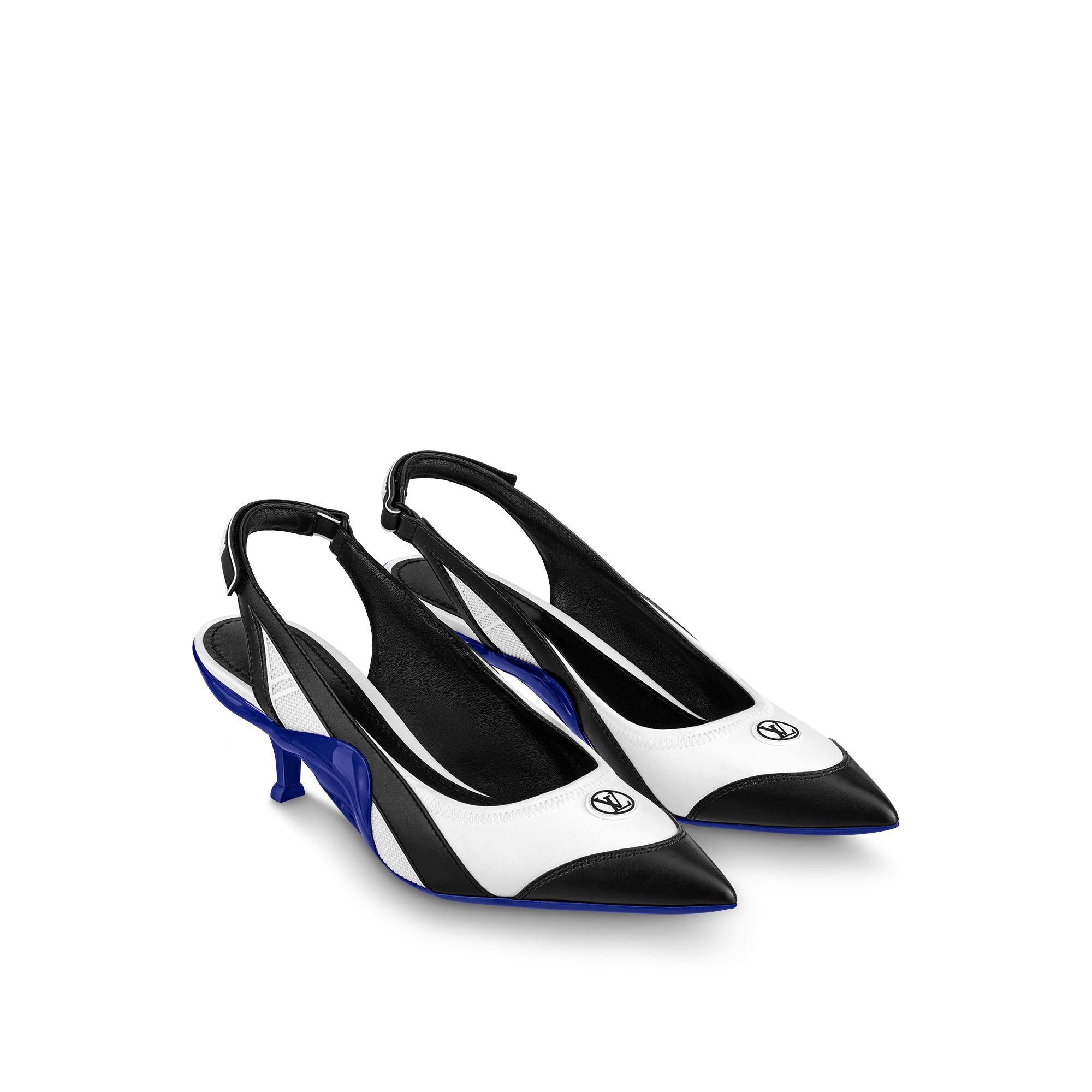 The Archlight slingback pump is an on-trend, kitten-heeled style which references the cult LV Archlight sneaker. Its upper combines technical satin with lambskin and sporty mesh inserts, while its colorful rubber outsole nods to the iconic, wave-shaped design of the sneaker. This model is adjusted at the back with a velcro strap bearing the Louis Vuitton signature. Product details White / Blue Technical satin Adjustable velcro strap Supple rubber outsole 5.5 cm / 2.2-inch heel LV Circle signature Louis Vuitton signature on the strap Made in Italy1AAC5S White / BlueLouis Vuitton Archlight Slingback Pump - Women - ShoesWomen - Shoes - Pumps - Archlight Slingback Pump