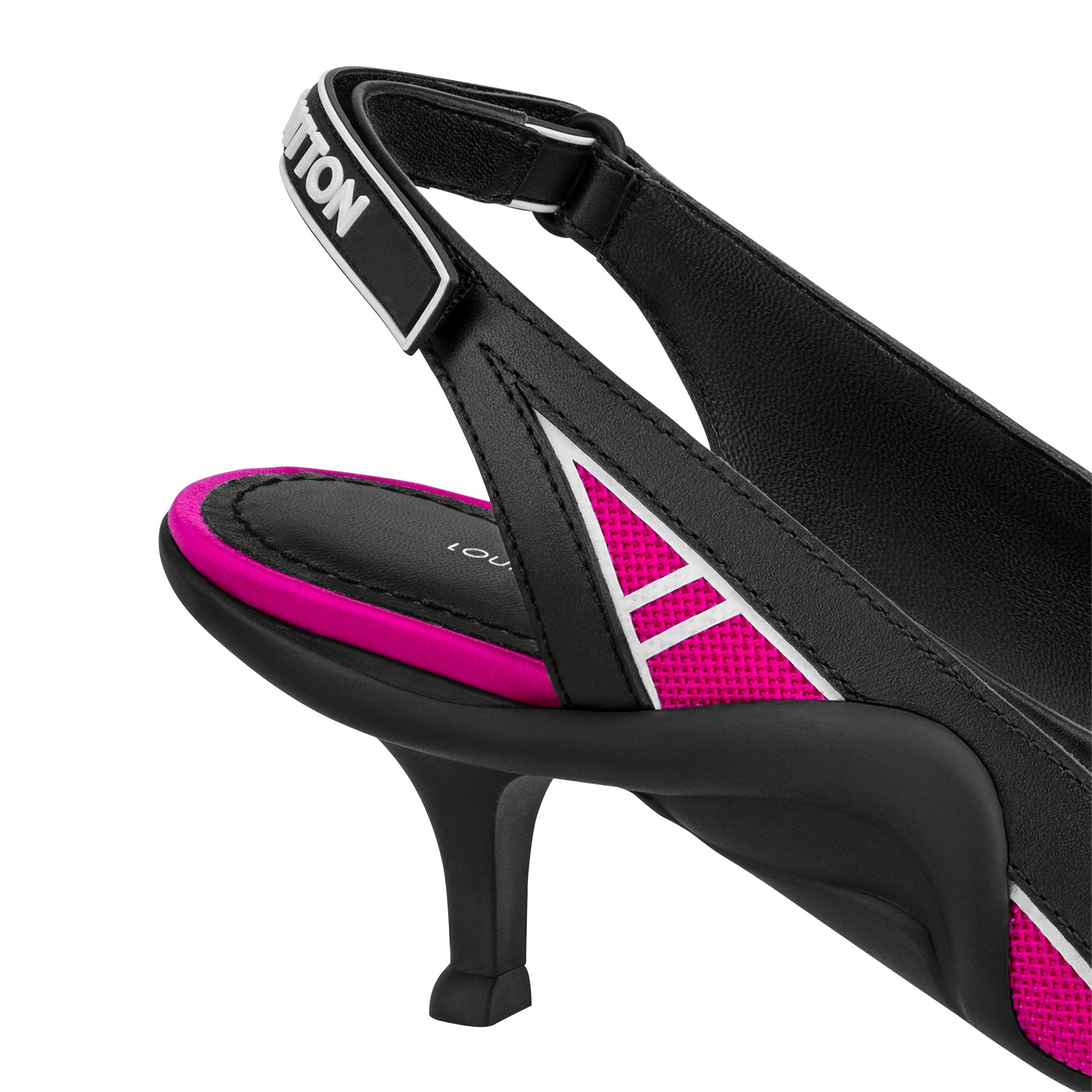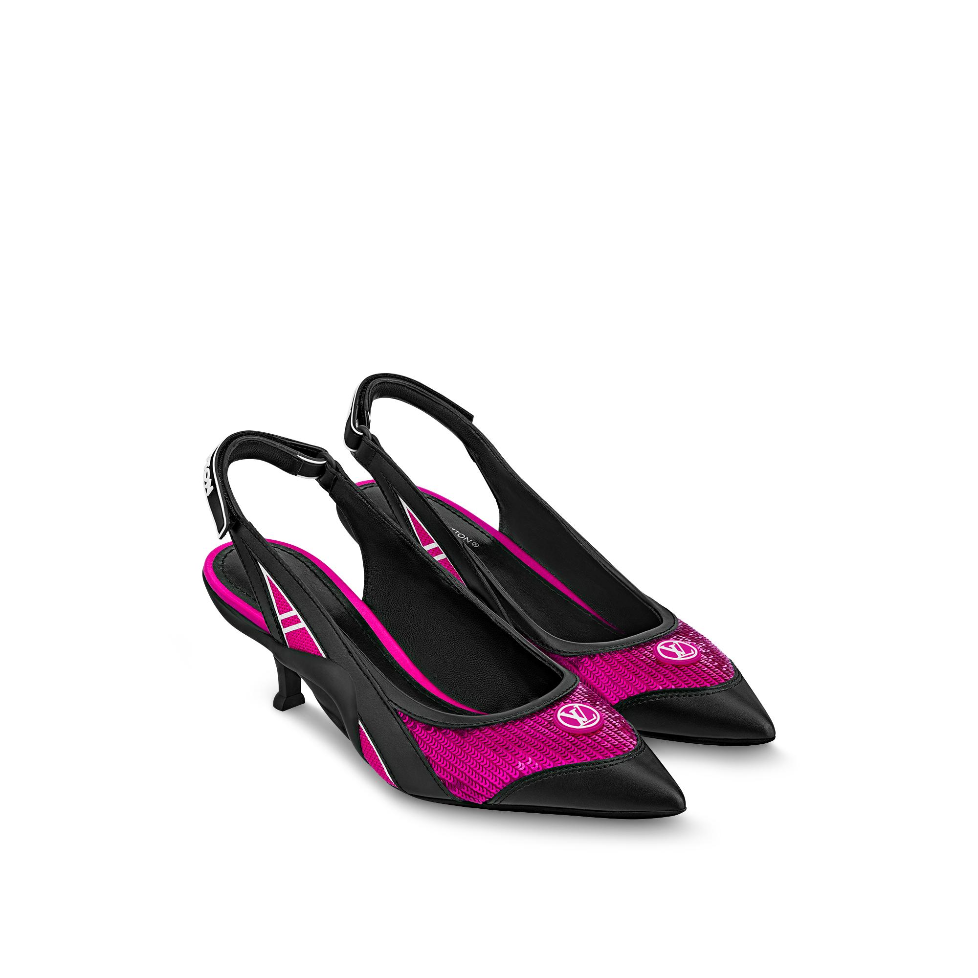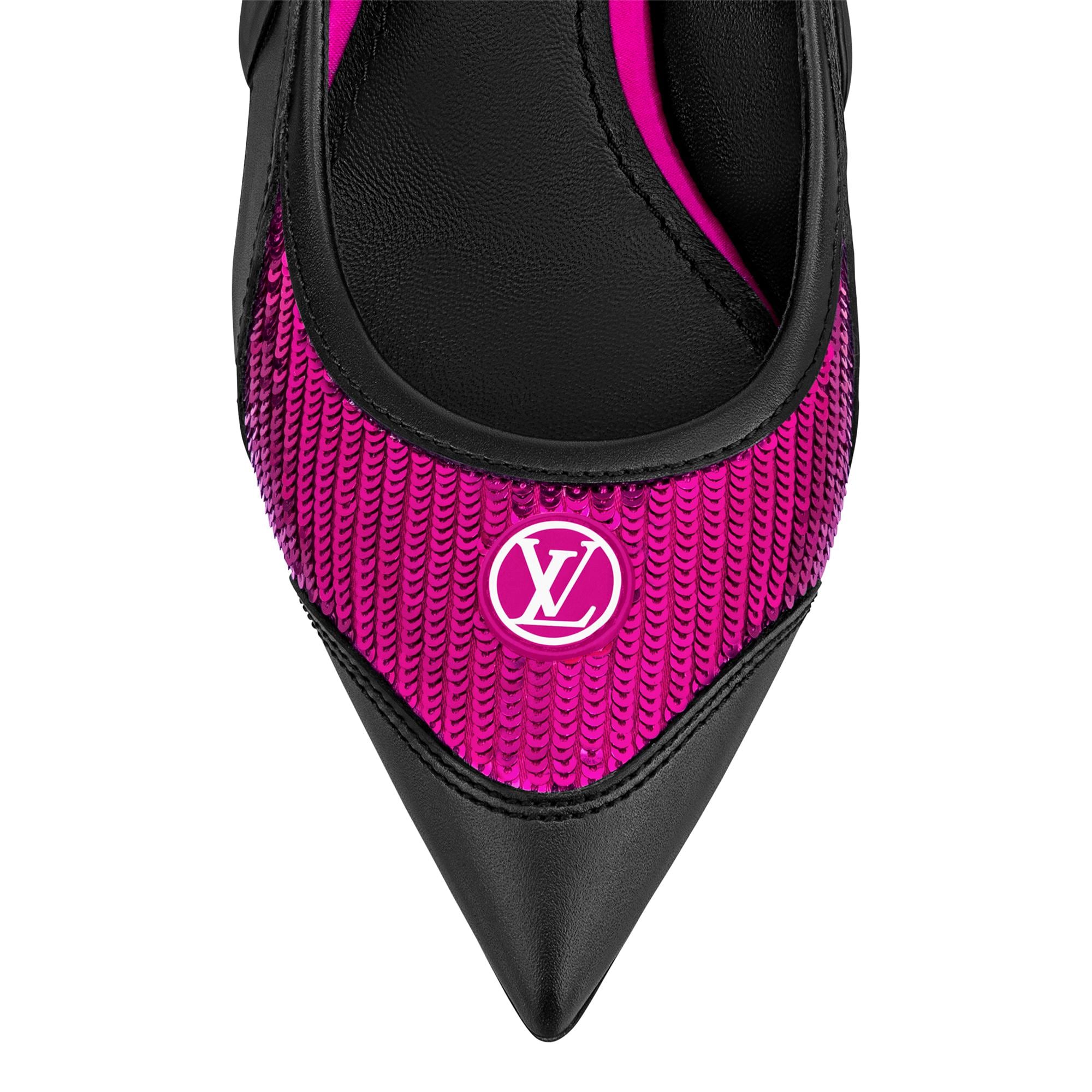 This sophisticated edition of the Archlight slingback pump comes in shimmering sequins. This design references the cult LV Archlight sneaker with its sporty mesh inserts, rubber Louis Vuitton and LV Circle signatures, and wavy outsole. It is finished with a fashionable kitten heel and adjusted at the back with a velcro strap. Product details Fuchsia Sequins Adjustable velcro strap Supple rubber outsole 5.5 cm / 2.2-inch heel LV Circle signature Louis Vuitton signature on the strap Made in Italy1AAHTH Louis Vuitton Archlight Slingback Pump - Women - ShoesWomen - Shoes - Pumps - Archlight Slingback Pump