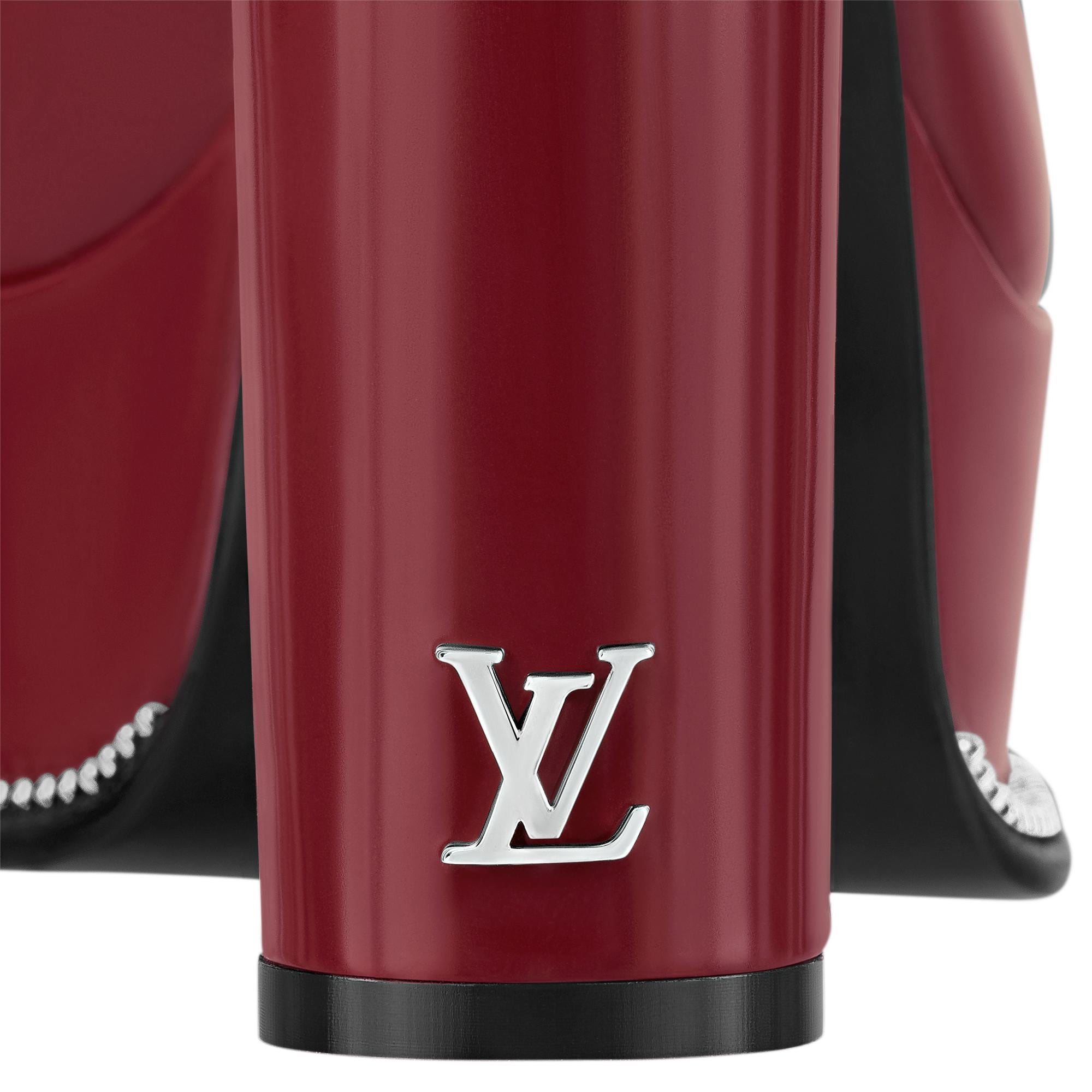 The Fame platform pump in glazed calf leather nods to the Seventies with its chunky platform and high heel, which is embellished with a metal LV Initials accessory. A silver-tone zip around the outsole complements this design, whose slender ankle strap is adjusted with a tiny buckle. Product details Garnet Red Glazed calf leather Leather outsole 12.5 cm / 4.9-inch heel with a 3.5 cm / 1.4 inch platform LV Initials on the heel Made in Italy1AABZX GarnetLouis Vuitton Fame Platform Pump - Women - ShoesWomen - Shoes - Pumps - Fame Platform Pump