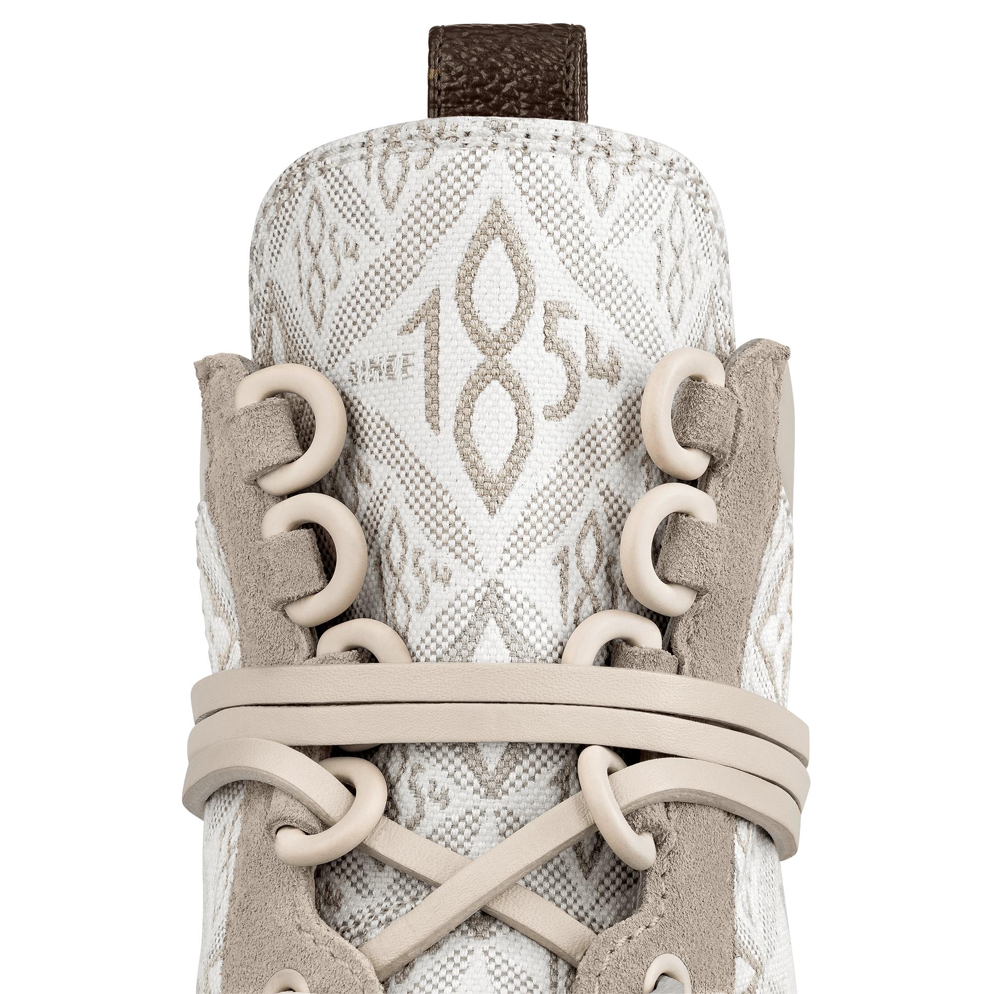 The iconic Laureate platform desert boot is revisited in Since 1854 jacquard textile, whose vintage-inspired pattern references the date the House was founded. Suede calf-leather trim complements this model, which is characterized by its treaded platform outsole and long leather laces. It is finished with a back loop in Monogram canvas. Product details Beige Jacquard textile and suede calf leather Leather laces Treaded rubber outsole 5 cm / 2-inch platform Patent Monogram-canvas back loop Made in Italy1A9RCS Louis Vuitton Laureate Platform Desert Boot - Women - ShoesWomen - Shoes - Boots and Booties - Laureate Platform Desert Boot
