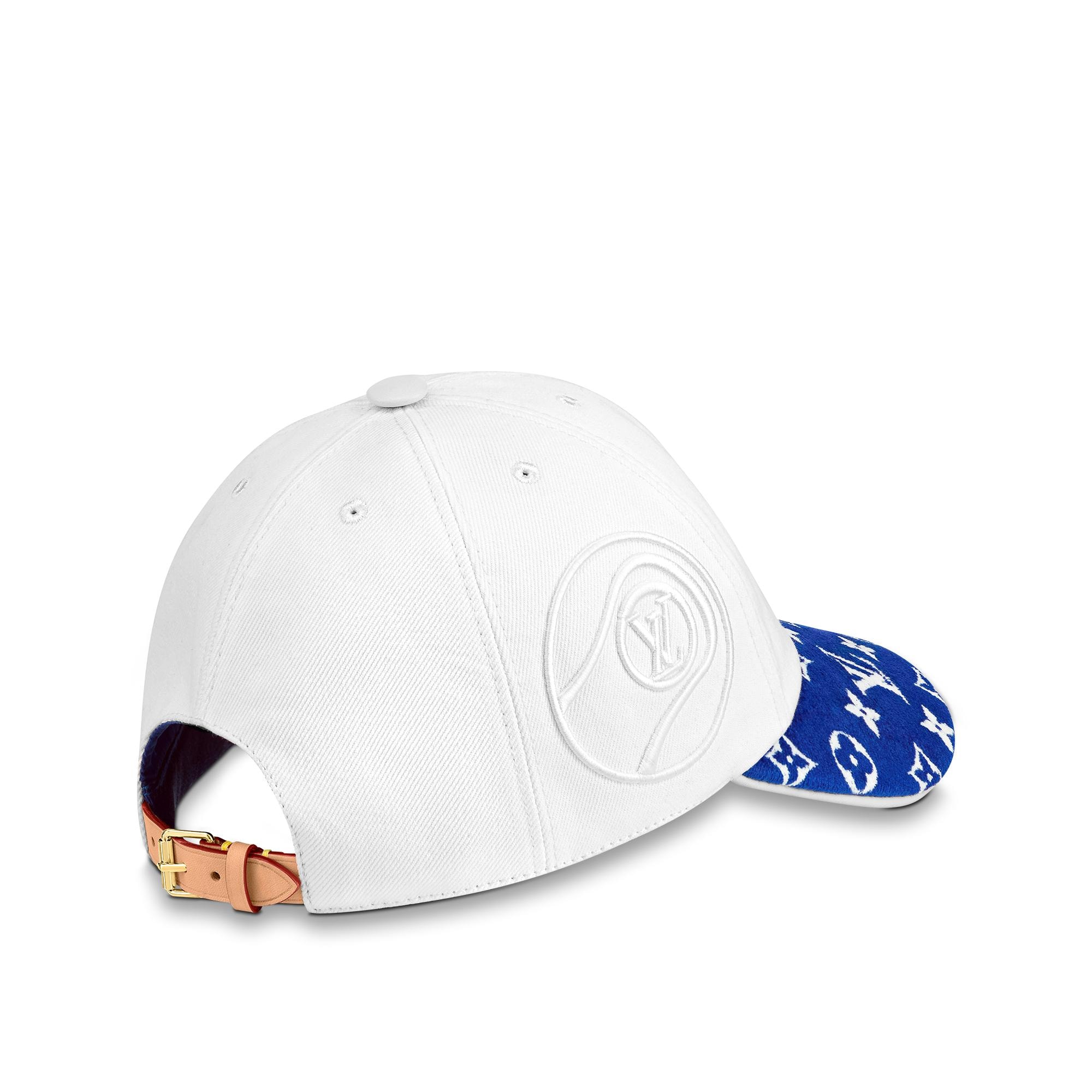 Luxurious textures and iconic House emblems characterize this LV Match cap. This sporty piece is finished with a Monogram Jacquard visor, an embroidered composition of a tennis ball with the LV Circle at the side and a strap at the back. The style is part of a new collection inspired by the world's four historic tennis tournaments. Product details 10.2 x 4.3 x 6.7 inches (length x Height x Width) Sizes available: M, L Blue 100% cotton Jacquard weave Monogram pattern Tennis ball with LV Circle embroideryM77740 BlueLouis Vuitton LV Match Cap - Women - AccessoriesWomen - Accessories - Hats and Gloves - LV Match Cap