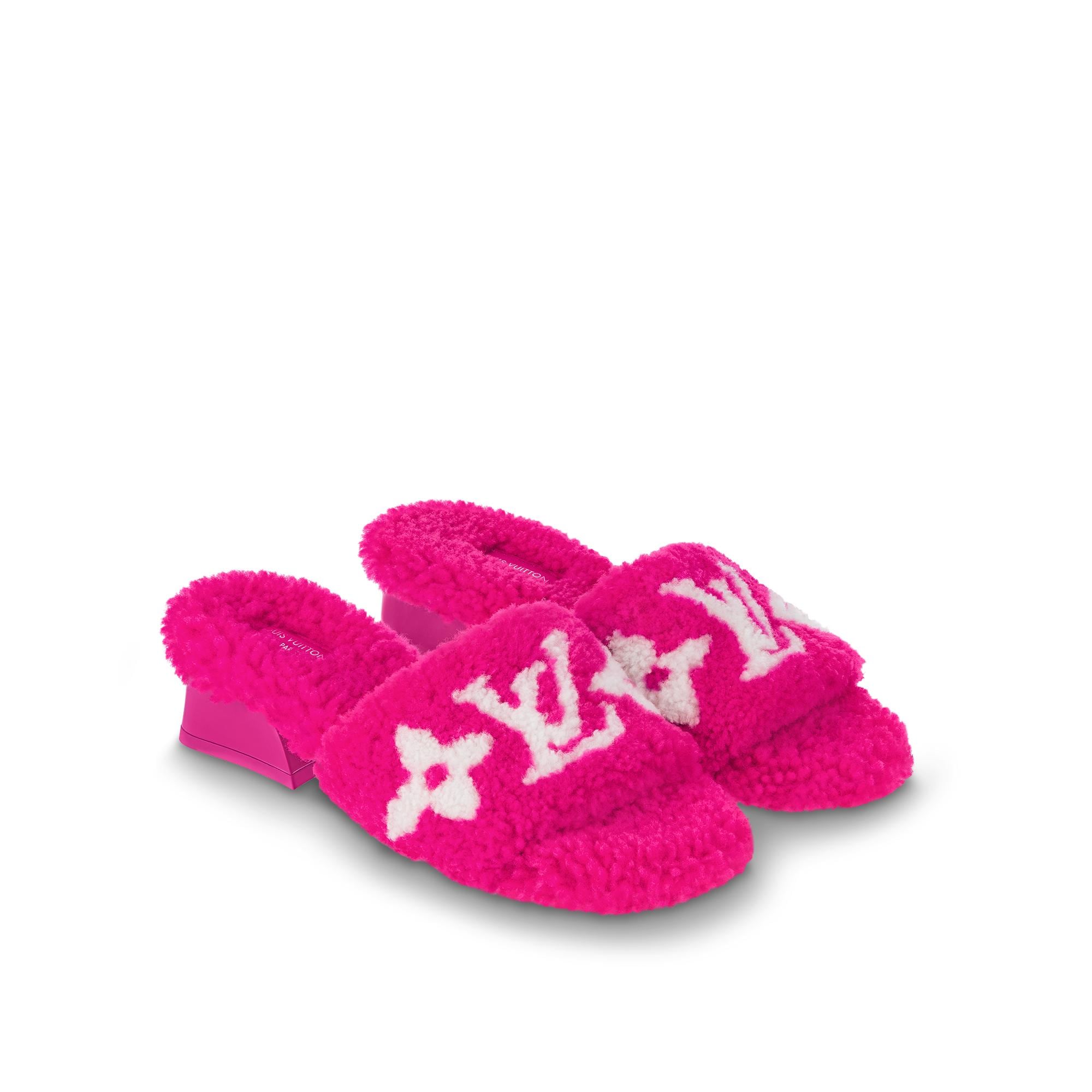 This feminine reinterpretation of the Magnetic mule comes in fluffy shearling with an oversized LV Initials logo in a contrasting color on the strap. The graphic block heel of the Magnetic line is color-matched to the upper, while the soft, shearling-covered footbed offers ultimate comfort. Product details Fuchsia Pink Shearling Leather outsole 3.5 cm / 1.4-inch heel LV Initials and Monogram Flowers Made in Italy1AA1QH Louis Vuitton Magnetic Mule - Women - ShoesWomen - Shoes - Mules and Slides - Magnetic Mule