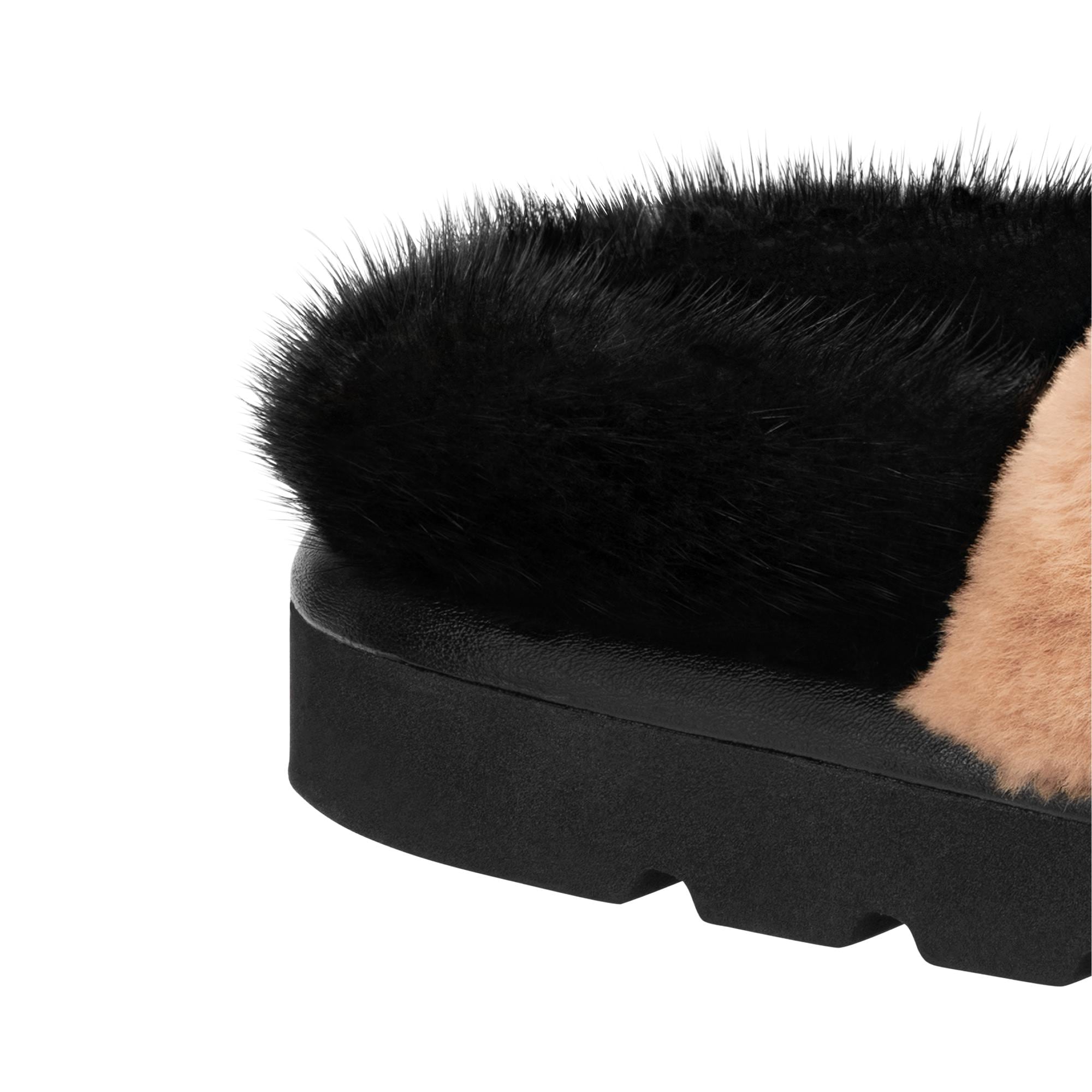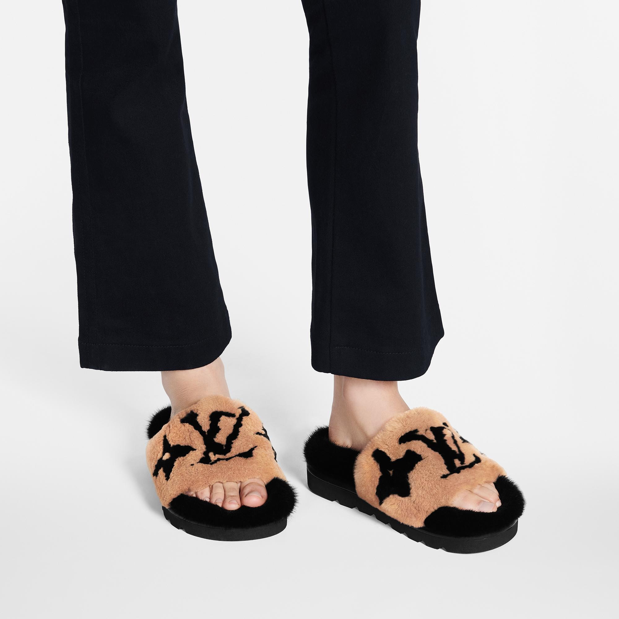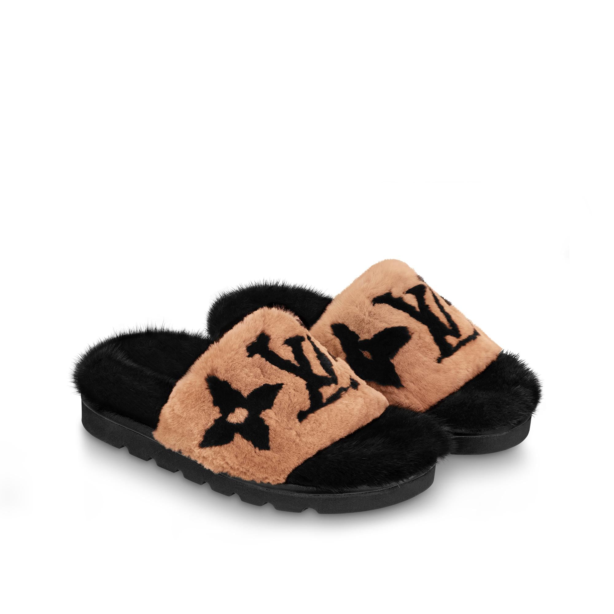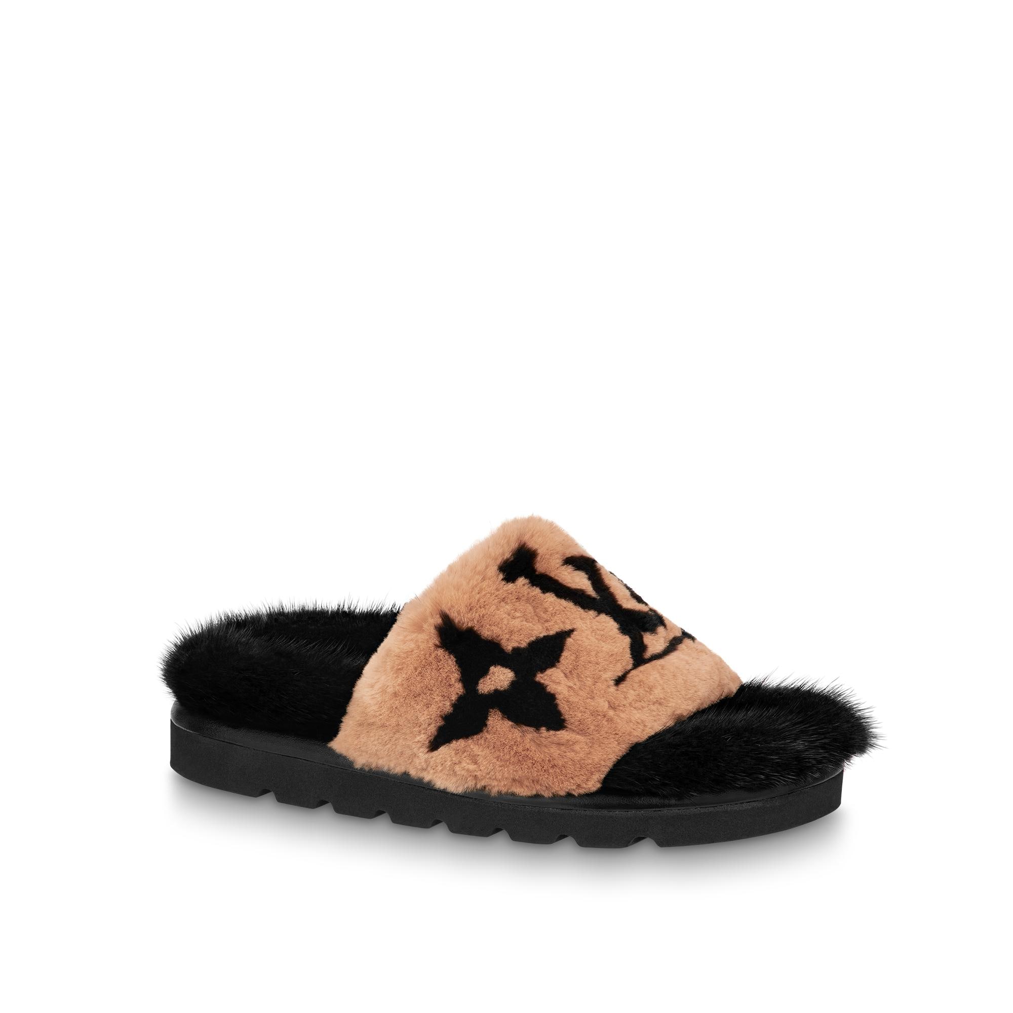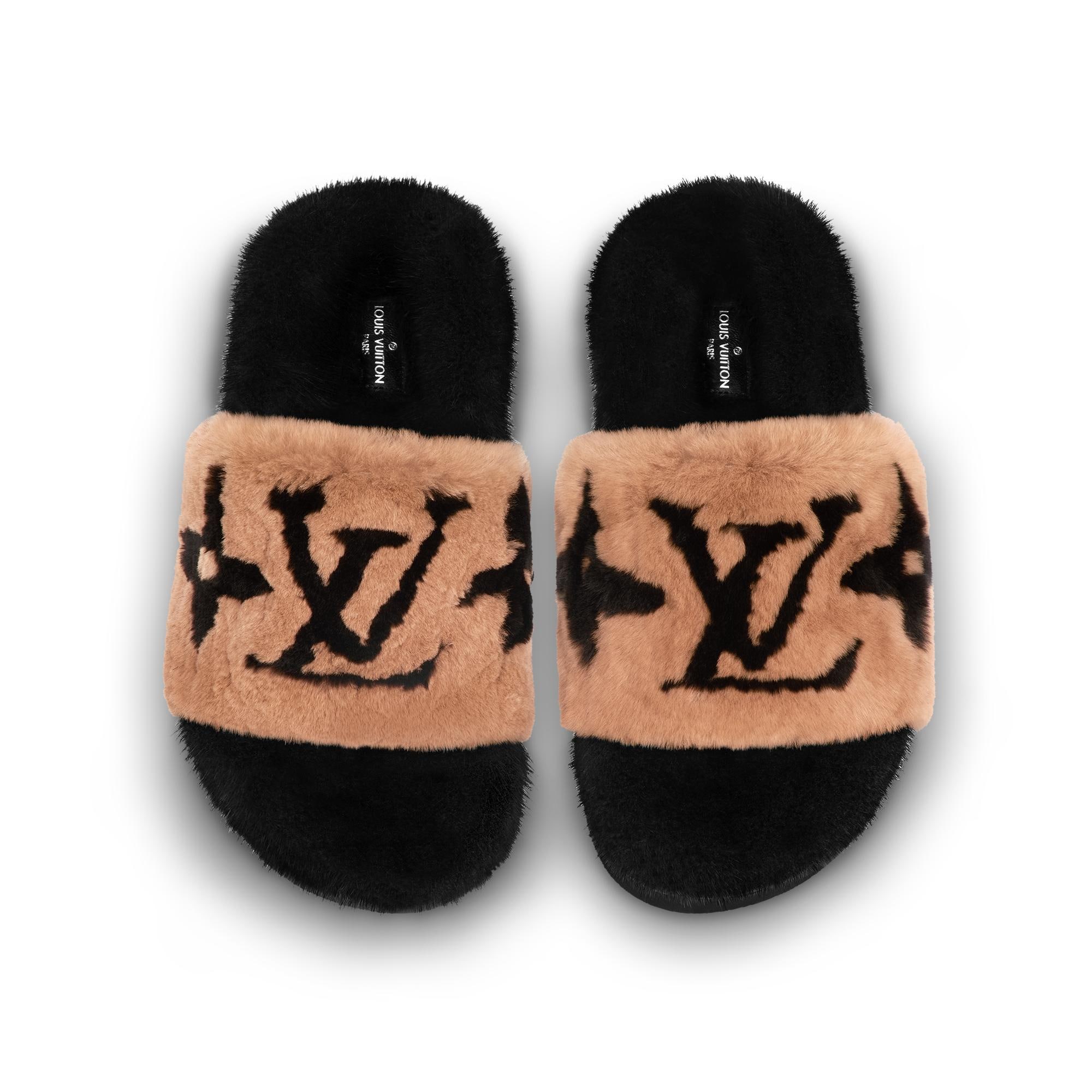 This exotic piece cannot be shipped to the city of San Francisco, Berkley and Los Angeles, California. Please call Client Services at +1.866.VUITTON for more details.This luxurious version of the Pool Pillow comfort mule is crafted from soft mink fur for instant warmth and comfort. The wide front strap features contrasting mink inserts, which form the LV Initials and Monogram Flowers. This model is finished with an anatomic footbed, also covered in mink, and a lightweight micro outsole with a contour in napa leather. Product details Cognac Brown Mink Anatomic insole Treaded micro outsole LV Initials and Monogram Flowers Made in Italy1A9BZS CognacLouis Vuitton Pool Pillow Comfort Mule - Women - ShoesWomen - Shoes - Mules and Slides - Pool Pillow Comfort Mule