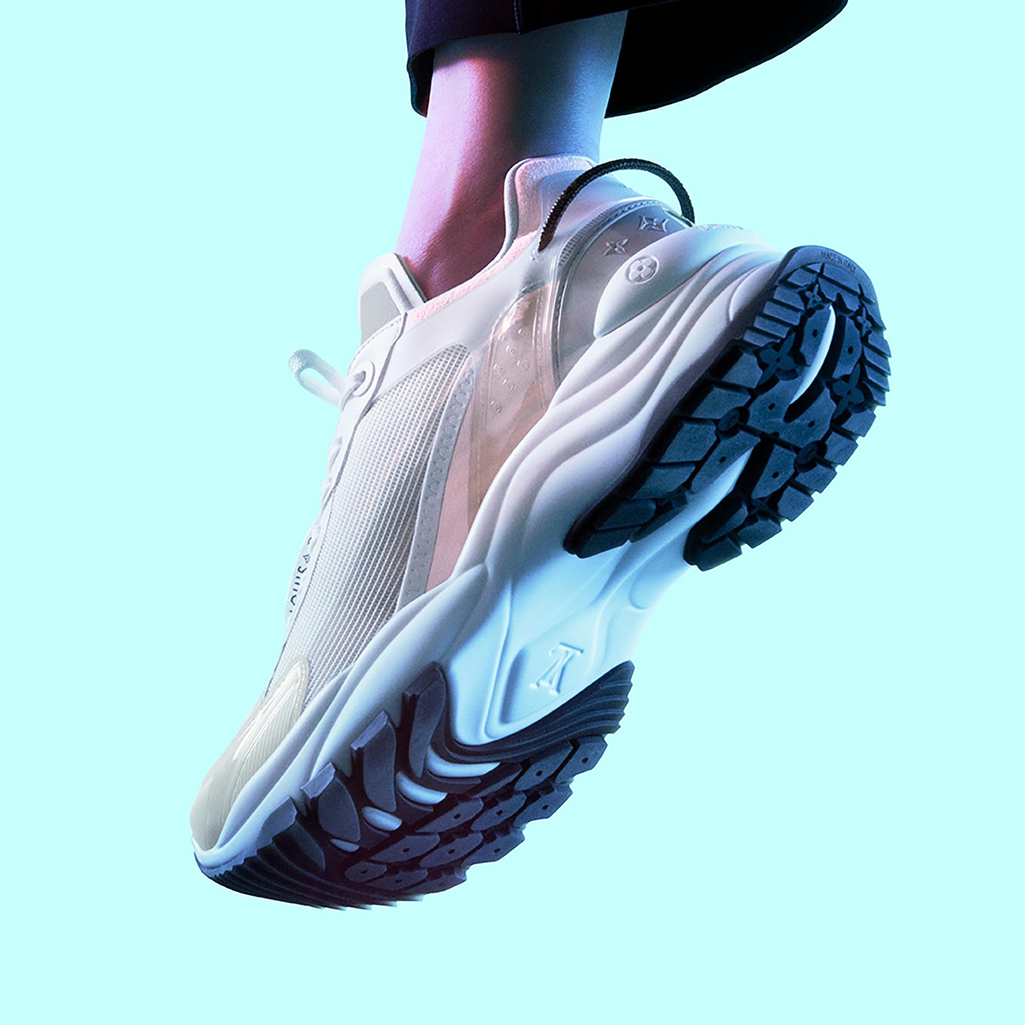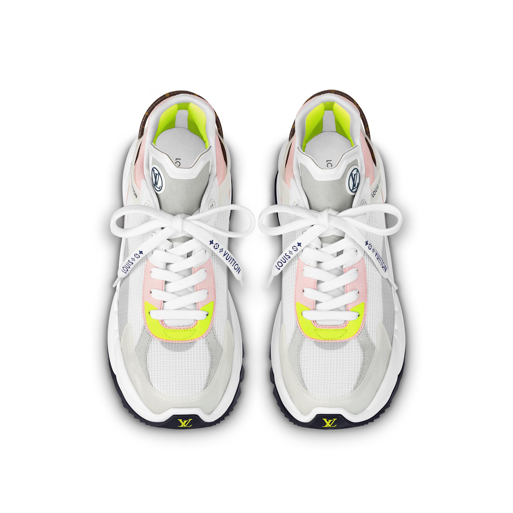 The Run 55 sneaker is a sporty model crafted from a combination of technical materials, including mesh, rubber and tape, as well as plain and suede calf leather. Geared to comfort, this running shoe features a lining with cushioned inserts and a lifted outsole for optimum bounce. The design incorporates multiple signatures, including a Monogram-canvas lace at the back. Product details Grey Mix of materials Cushioned lining Lifted rubber outsole Louis Vuitton-engraved eyelets Monogram-Flower and Vuitton signatures on the laces LV Circle rubber patch on the tongue LV Initials on the front and back Louis Vuitton signature on the back Patent Monogram-canvas lace on the back Made in Italy1A9H65 GreyLouis Vuitton Run 55 Sneaker - Women - ShoesWomen - Shoes - Sneakers - Run 55 Sneaker