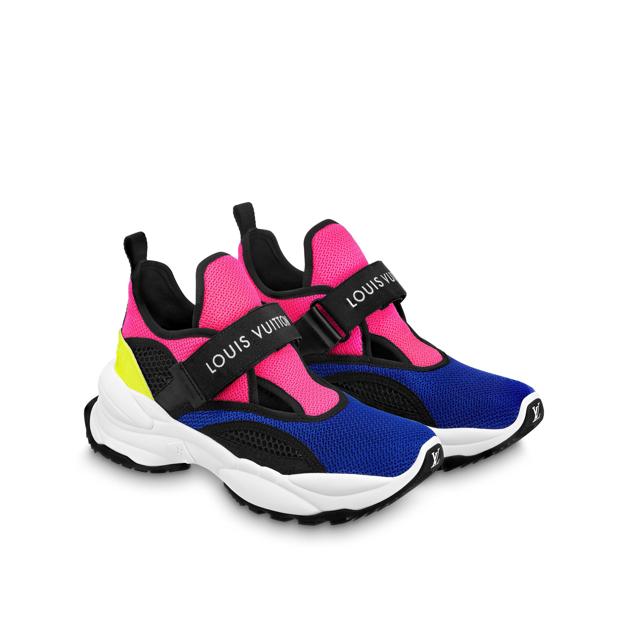 This version of the Run 55 sneaker comes in technical mesh with cutouts for optimum breathability. The Louis Vuitton signature is printed on the adjustable elastic strap which crosses the top of the foot. This running shoe is characterized by its lifted rubber outsole, designed for optimum bounce and comfort. Product details Bleu Roi Blue Mesh Velcro elastic strap Lifted rubber outsole Louis Vuitton signature on the strap LV Initials on the front and back Louis Vuitton signature on the back LV Initials and Monogram Flowers on the outsole Made in Italy1A9PDC Louis Vuitton Run 55 Sneaker - Women - ShoesWomen - Shoes - Sneakers - Run 55 Sneaker