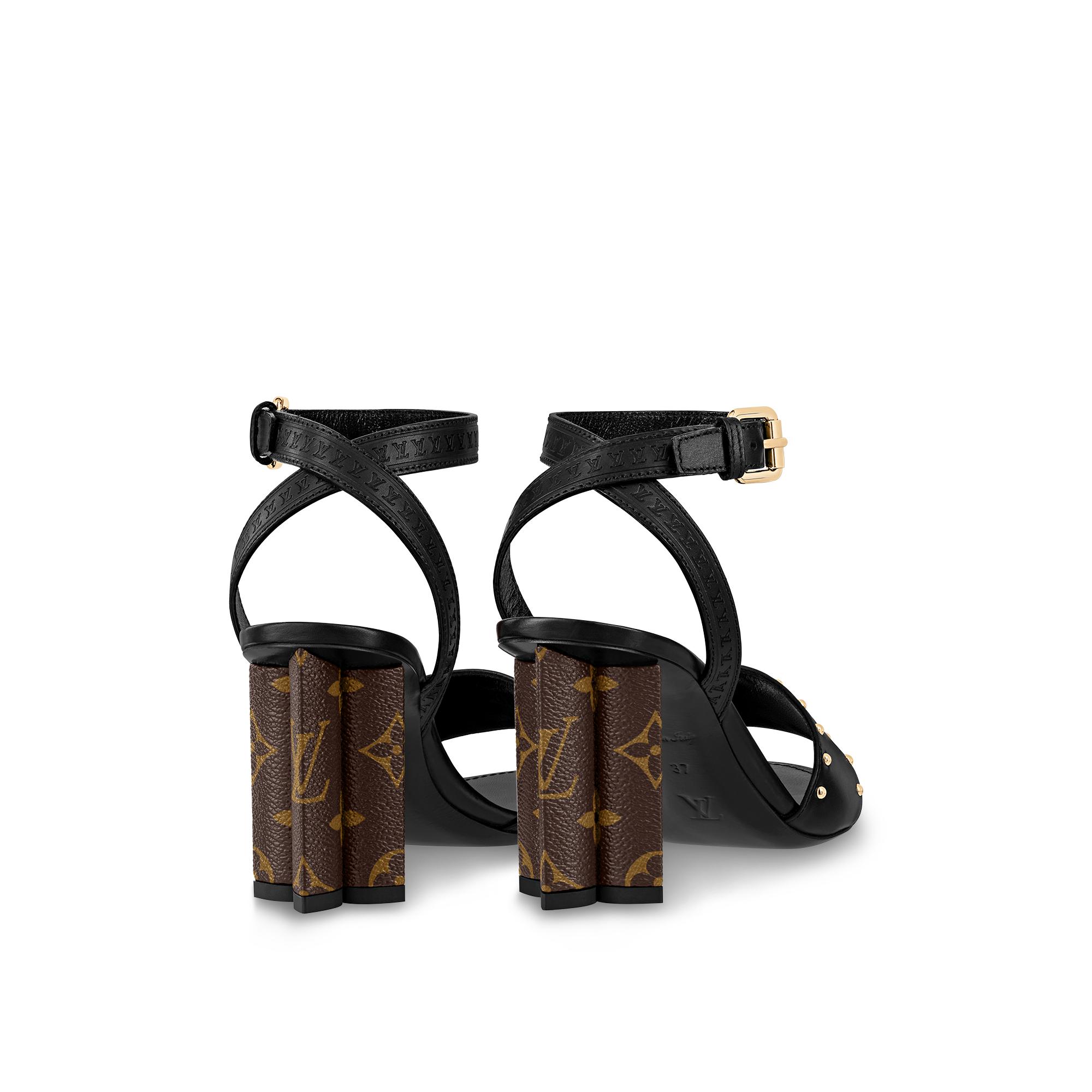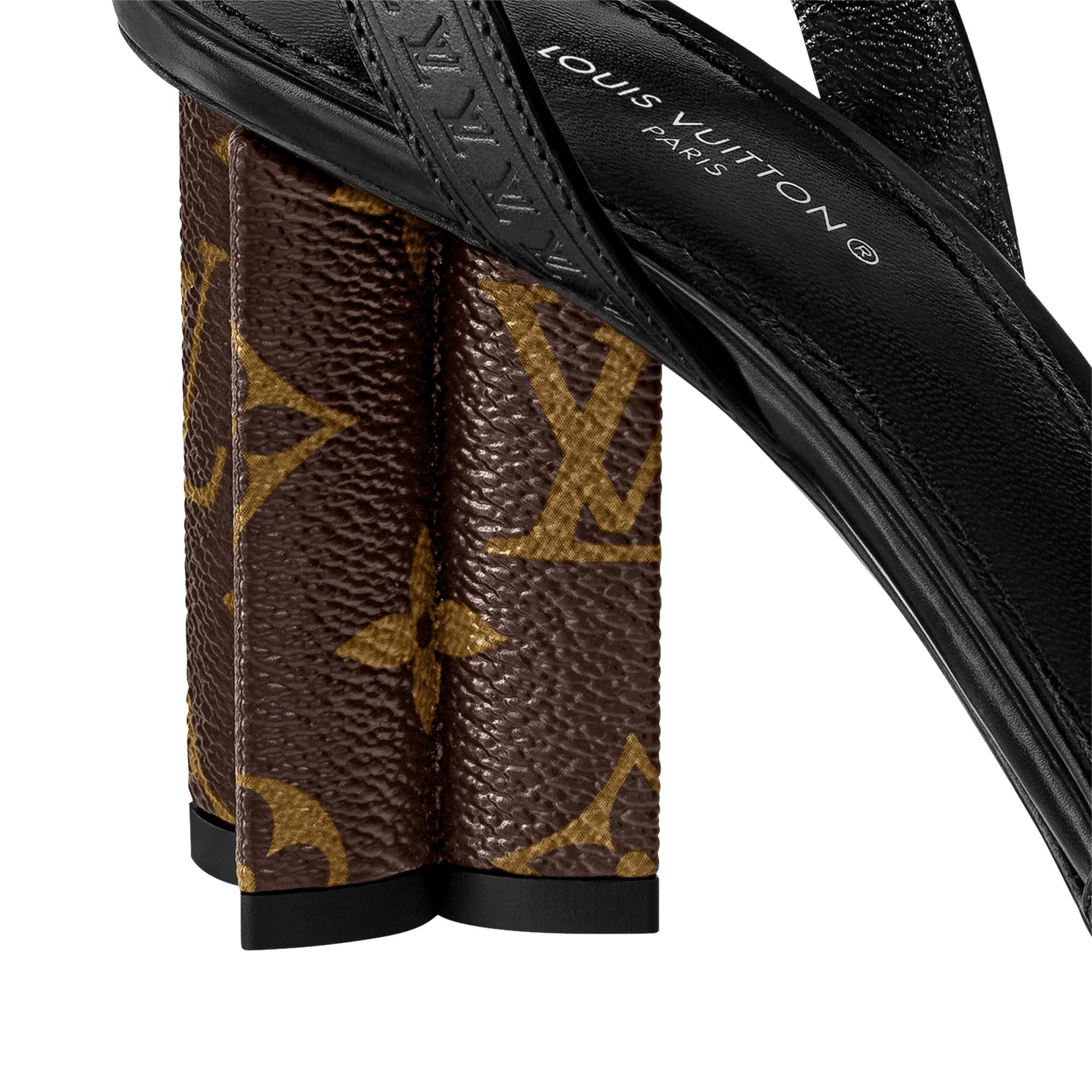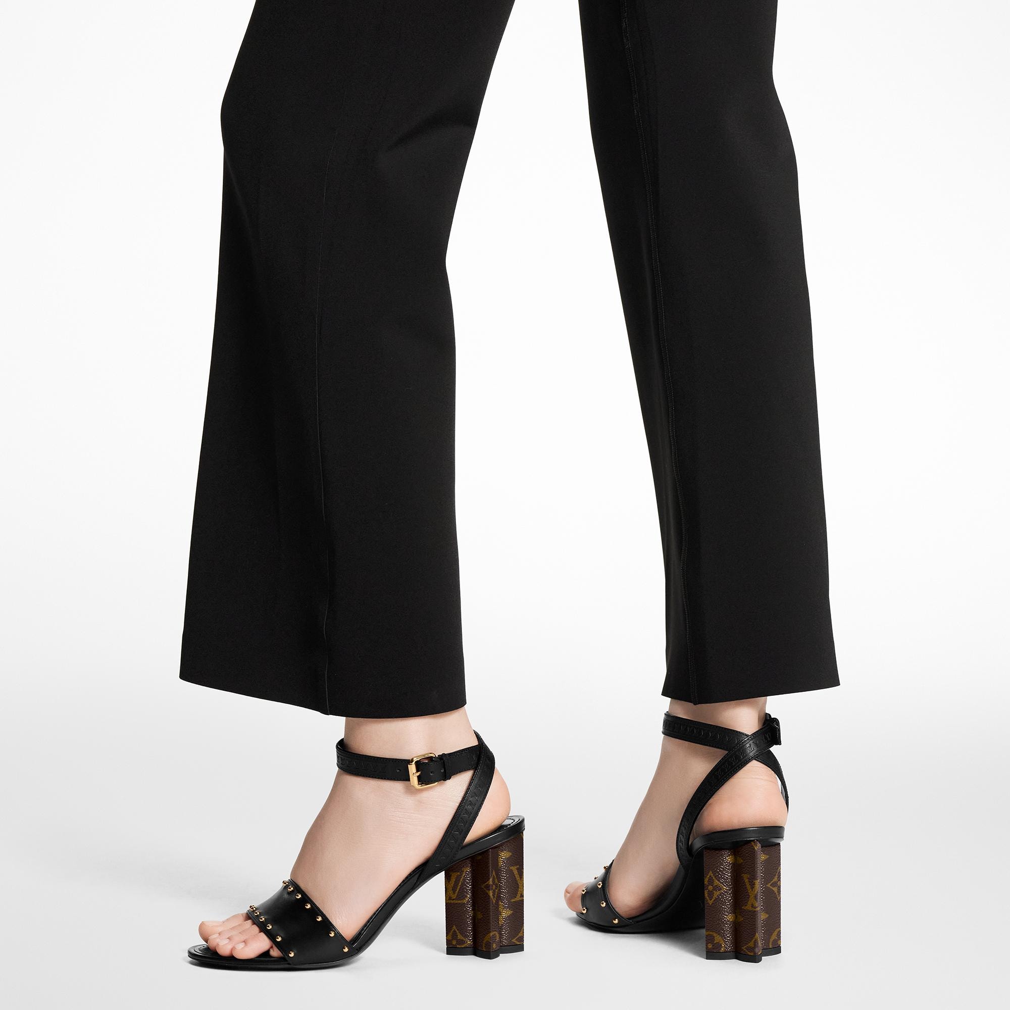 The Silhouette sandal is a refined style combining a calf leather upper with an iconic Monogram Flower-shaped heel covered with patent Monogram canvas. Key details evoke historic Louis Vuitton trunks: the tiny, gold-tone studs decorating the front strap, and the row of LV Initials discreetly embossed on the ankle strap. Product details Black Calf leather and patent Monogram canvas Leather outsole 8 cm / 3.1-inch heel Monogram Flower-shaped heel Louis Vuitton-engraved buckle Made in Italy1AAC84 Louis Vuitton Silhouette Sandal - Women - ShoesWomen - Shoes - Sandals and Espadrilles - Silhouette Sandal