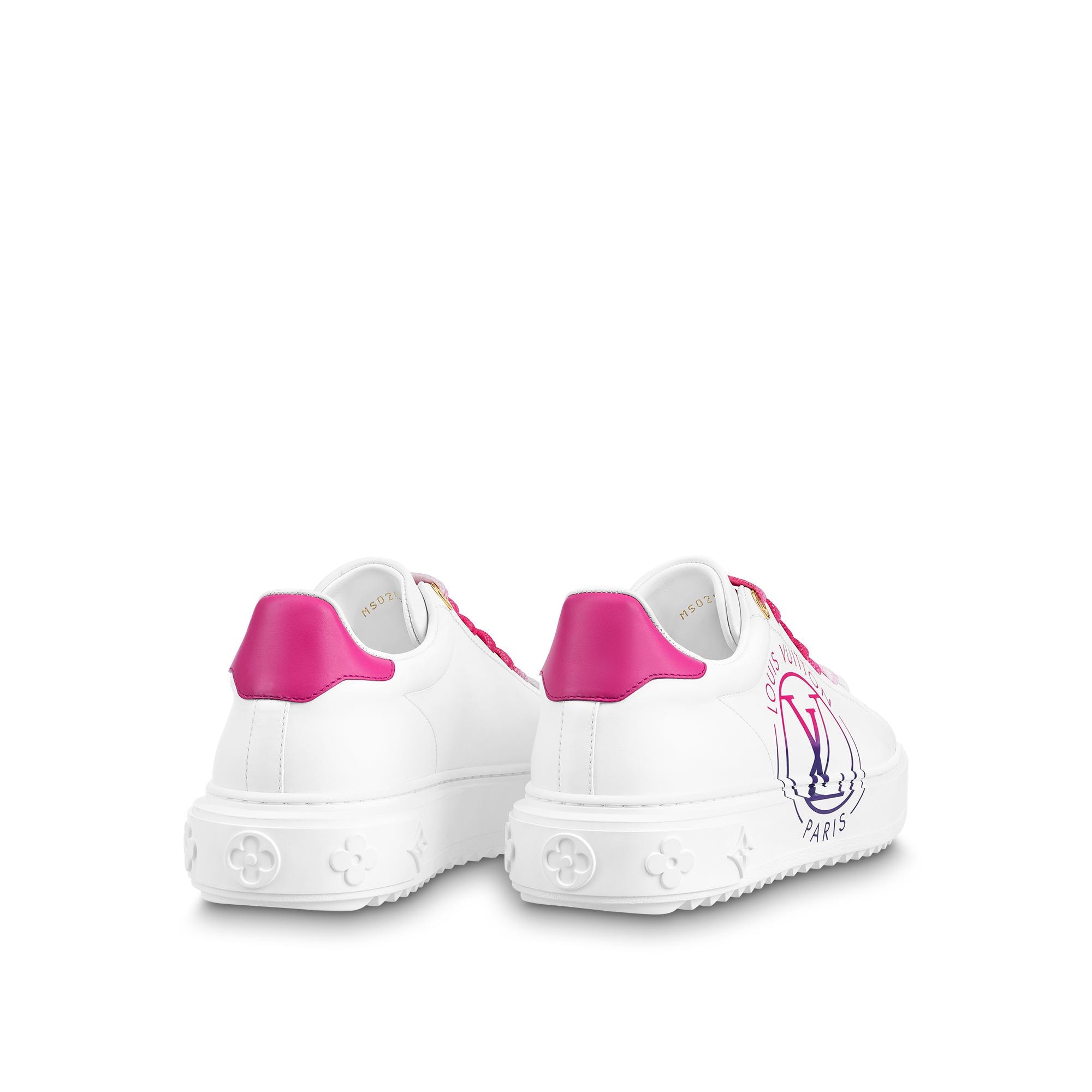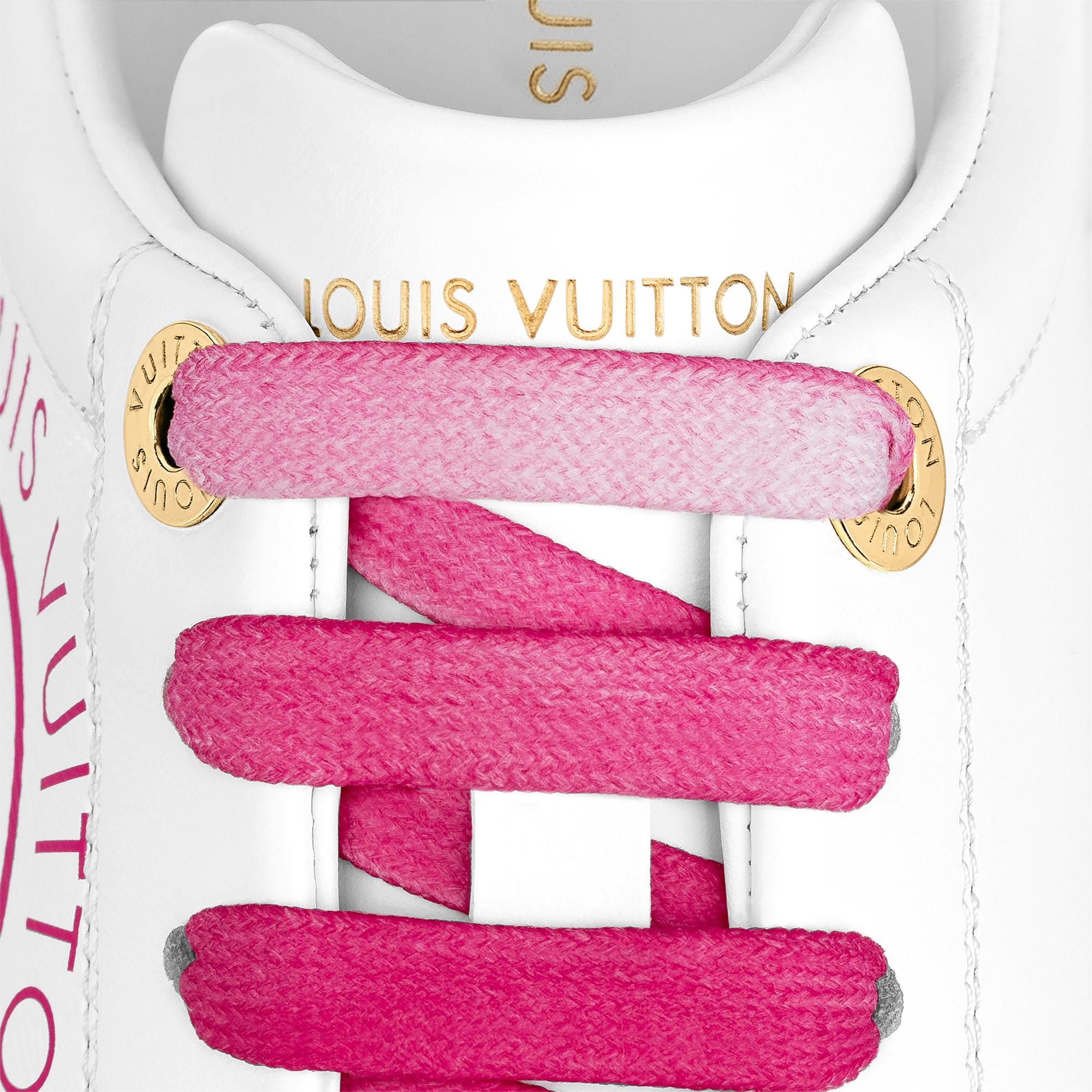The emblematic Time Out sneaker is revisited in printed calf leather with a color-gradient effect on both the laces and the oversized LV Circle signature on the side. Other refined details of this design include Louis Vuitton-engraved, gold-tone eyelets and the 3-D pattern of Monogram Flowers on the distinctive elevated outsole. Product details Fuchsia Pink Printed calf leather Elevated, treaded rubber outsole Louis Vuitton signature on the tongue LV Circle signature on the side Louis Vuitton-engraved eyelets Monogram Flowers on the outsole Made in Italy1AA1BH 35.0Louis Vuitton Time Out Sneaker - Women - ShoesWomen - Shoes - Sneakers - Time Out Sneaker