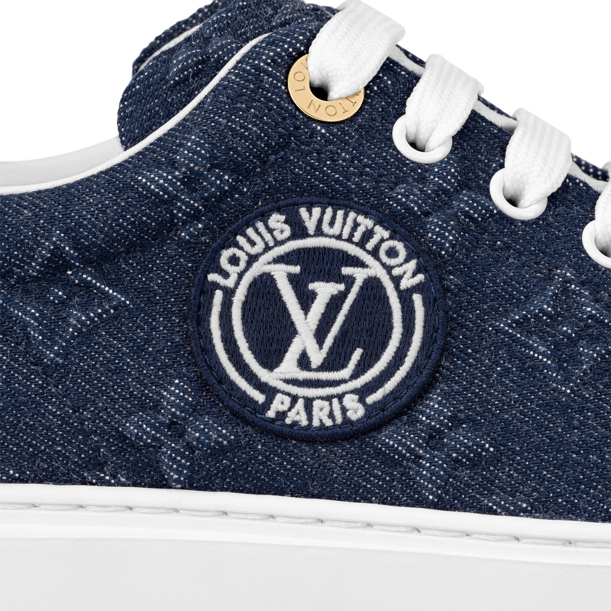 The emblematic Time Out sneaker is reworked in denim, which is debossed with Louis Vuitton's iconic Monogram pattern. This richly detailed design also features smooth and suede calf-leather trim, and engraved, gold-tone eyelets. Its distinctive elevated, treaded rubber outsole is decorated with a 3-D pattern of Monogram Flowers. Product details Blue Monogram-debossed denim Elevated, treaded rubber outsole Louis Vuitton signature on the tongue Louis Vuitton-engraved eyelets Monogram Flowers on the outsole Made in Italy1AADMG Louis Vuitton Time Out Sneaker - Women - ShoesWomen - Shoes - Sneakers - Time Out Sneaker
