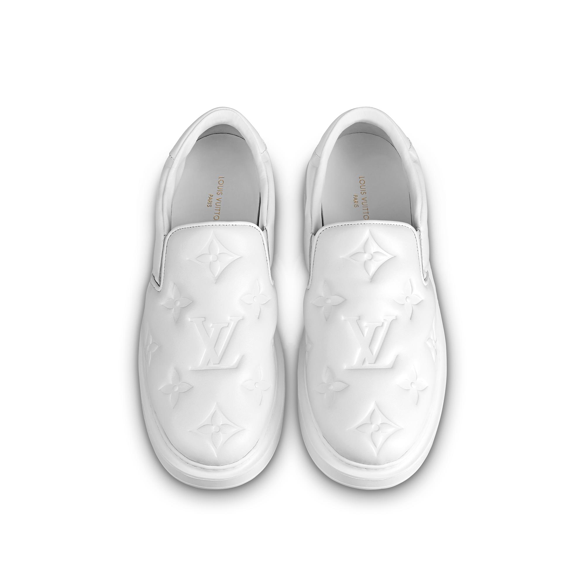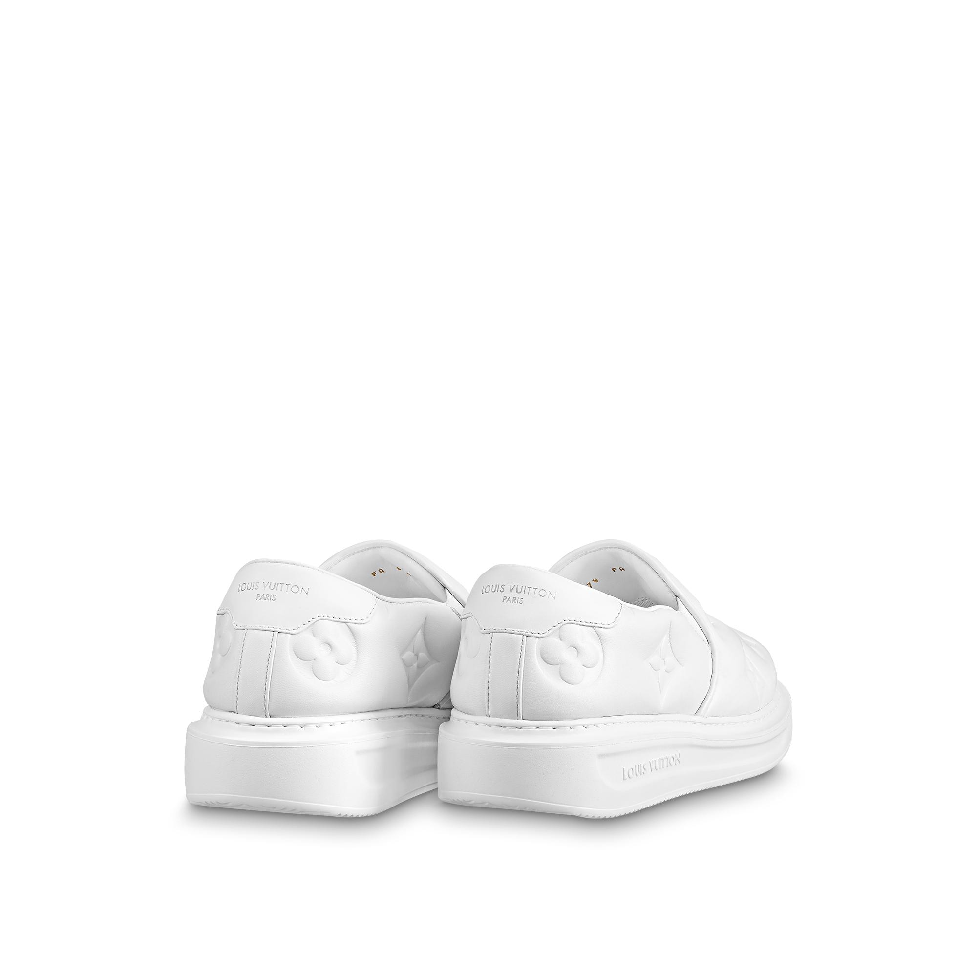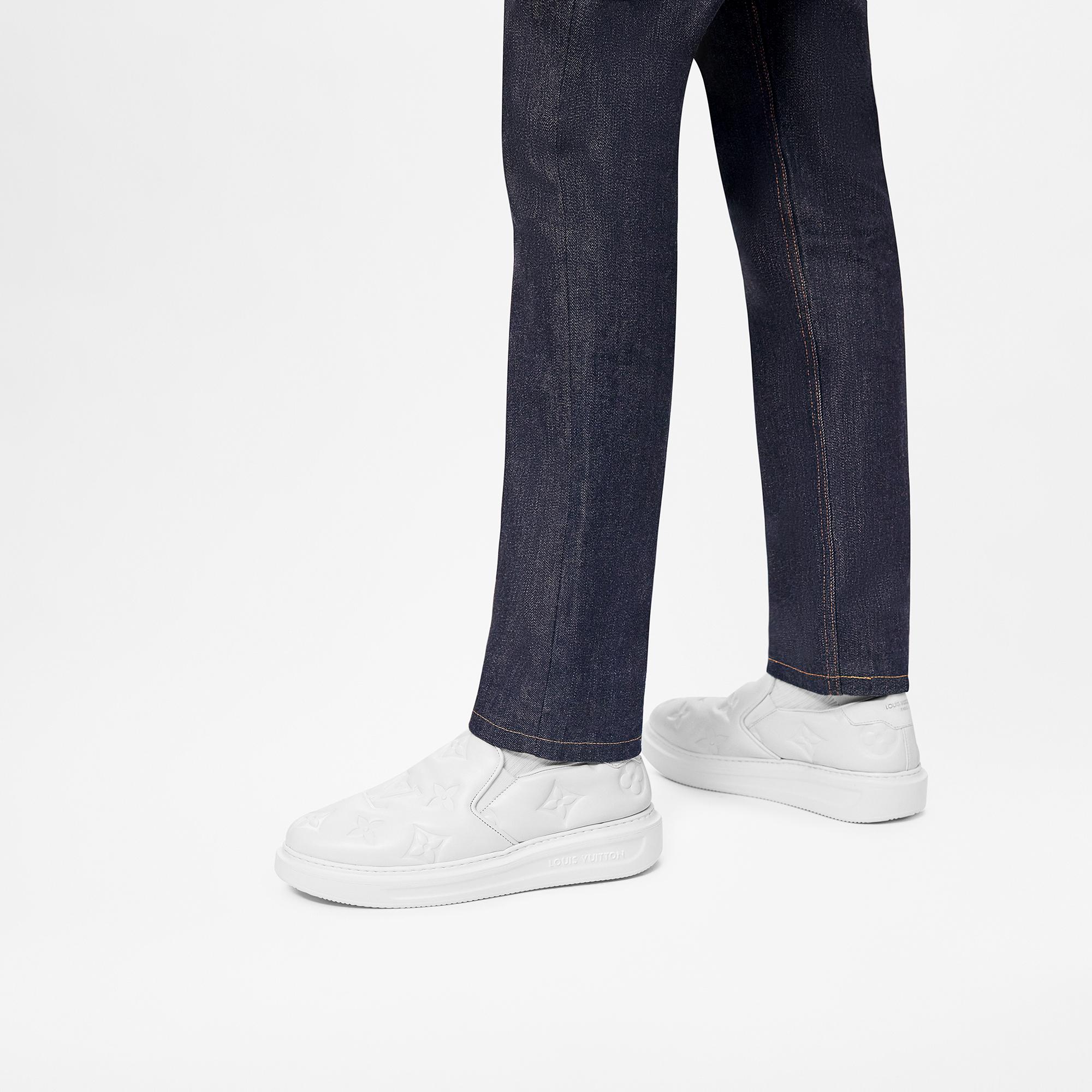 The Beverly Hills slip-on sneaker comes in soft calf leather embossed with an oversized version of the iconic Monogram pattern. Discreet elastic inserts allow for easy fitting, while the white rubber outsole is extremely lightweight. The Louis Vuitton signature is printed at the back of the shoe and debossed on the outsole. Product details White Monogram-embossed calf leather Elastic for easy fitting Ultra-light rubber outsole Louis Vuitton signature on the back and outsole Made in Italy1A9K9J WhiteLouis Vuitton Beverly Hills Slip On - Men - ShoesMen - Shoes - Sneakers - Beverly Hills Slip On