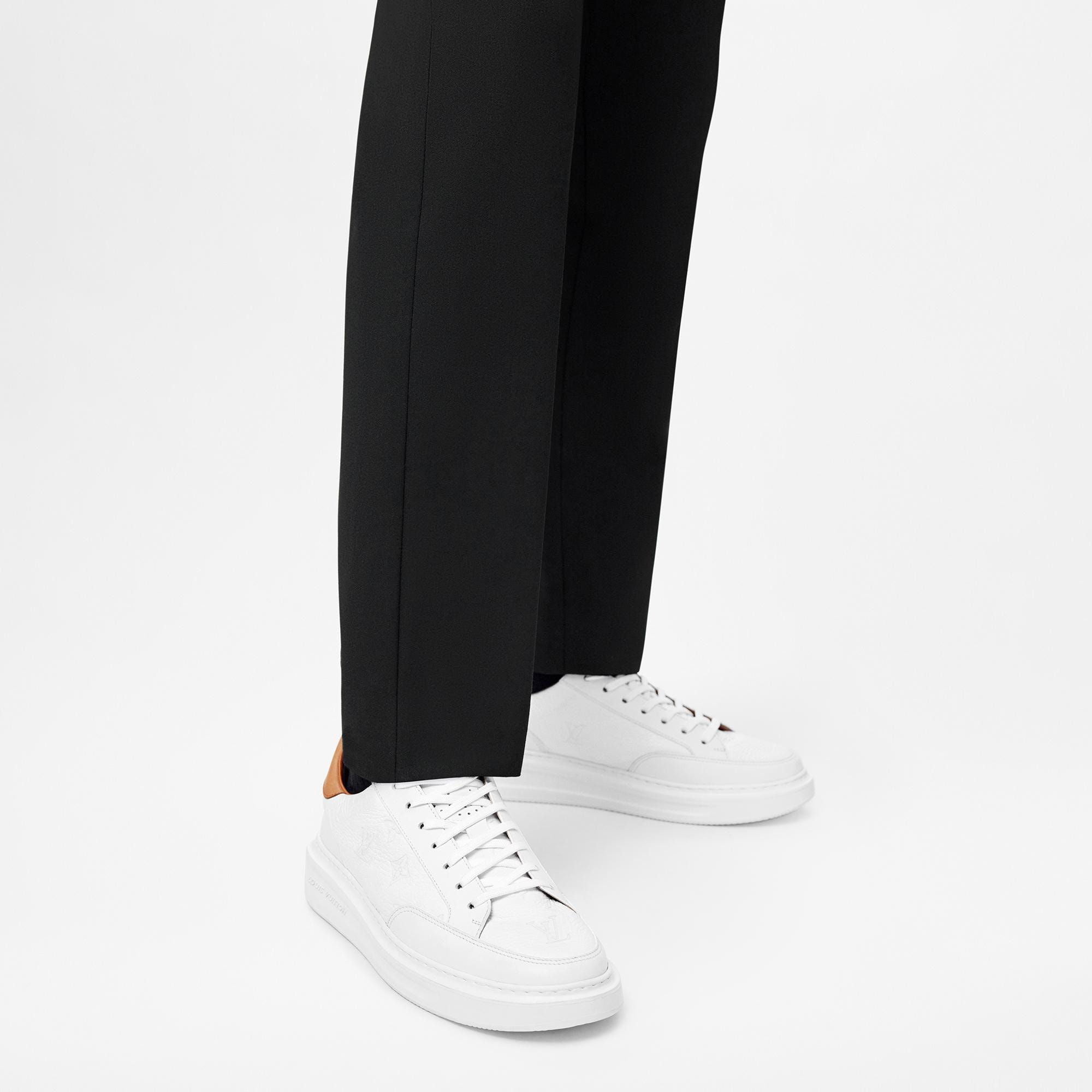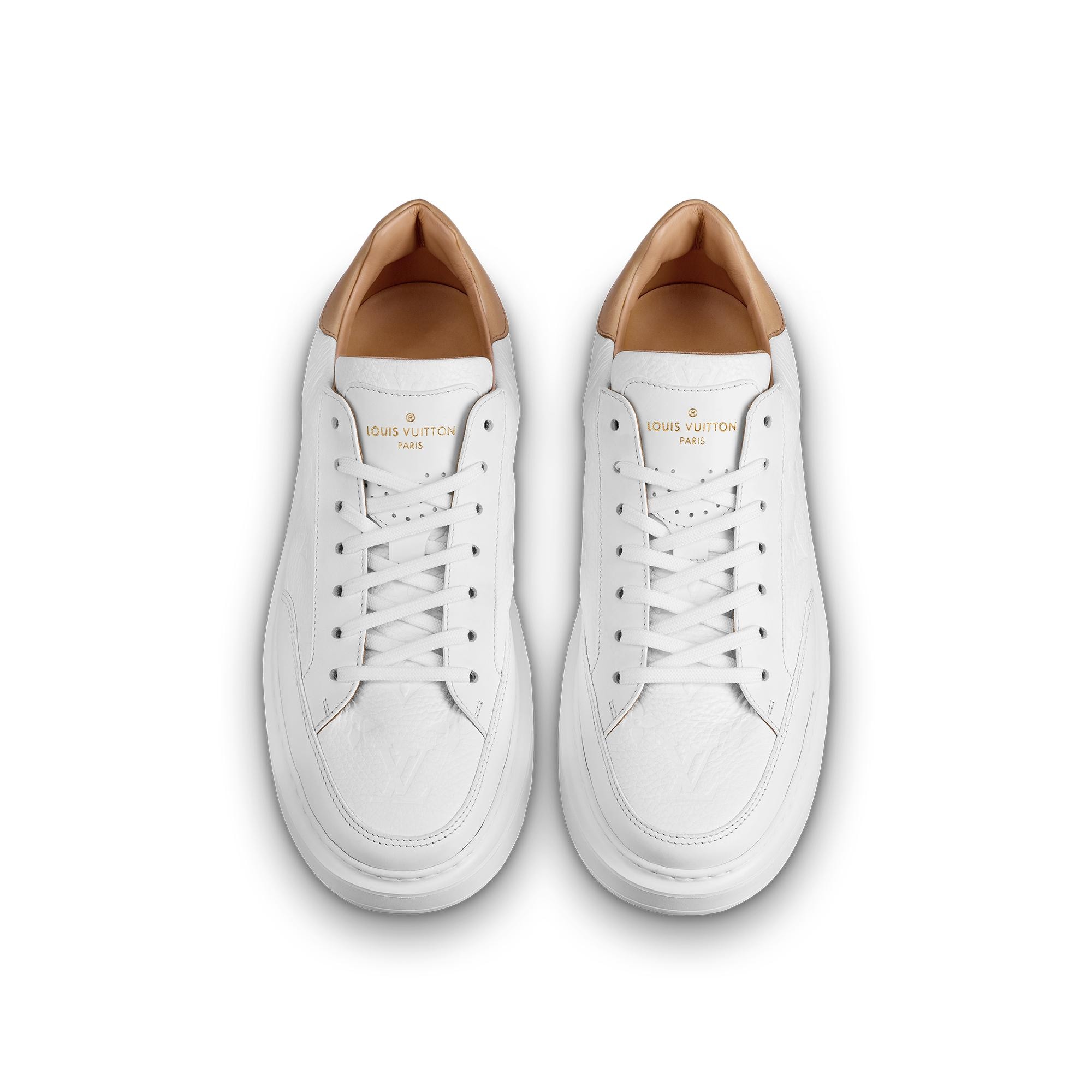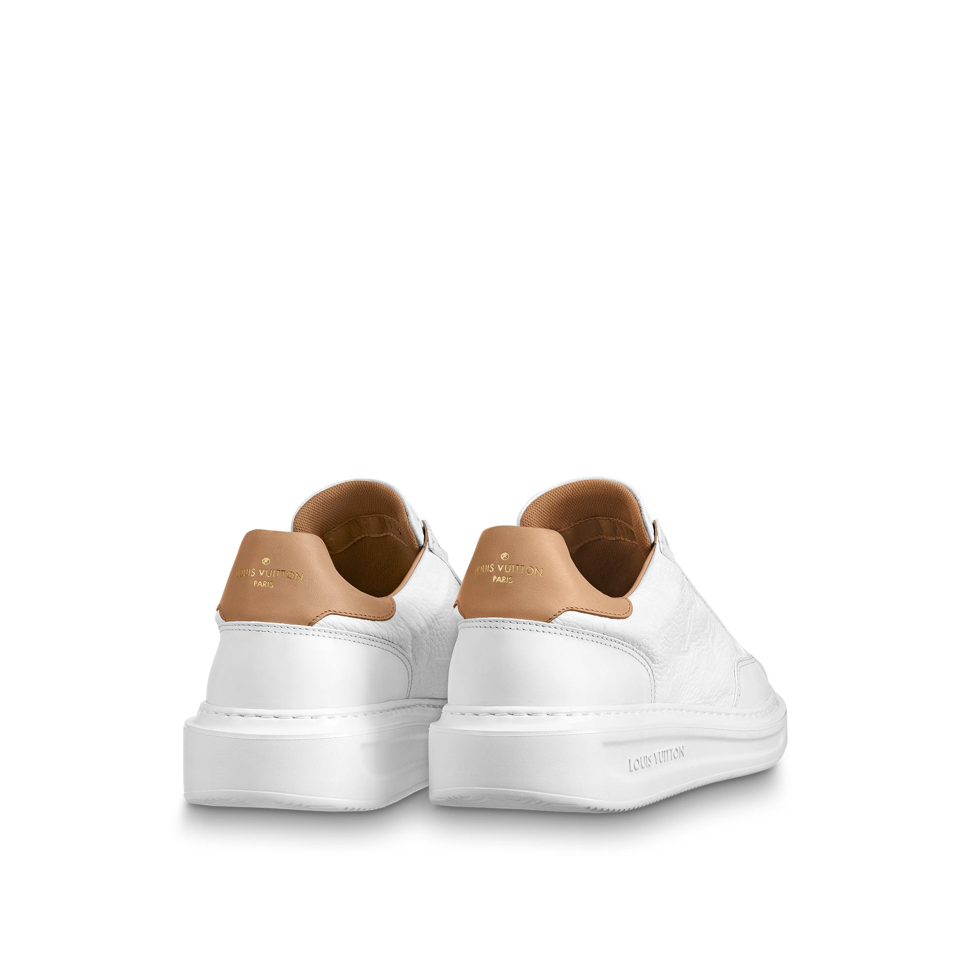 The Beverly Hills sneaker is crafted from supple, grained calf leather, which is embossed with the iconic Monogram pattern. The natural calf-leather trim at the back recalls that used on Louis Vuitton leather goods. This model is distinguished by its ultra-light, white rubber outsole, debossed with the House signature. Product details White Monogram-embossed grained calf leather Ultra-light rubber outsole Louis Vuitton signature on the tongue and outsole Made in Italy1A8V3N WhiteLouis Vuitton Beverly Hills Sneaker - Men - ShoesMen - Shoes - Sneakers - Beverly Hills Sneaker