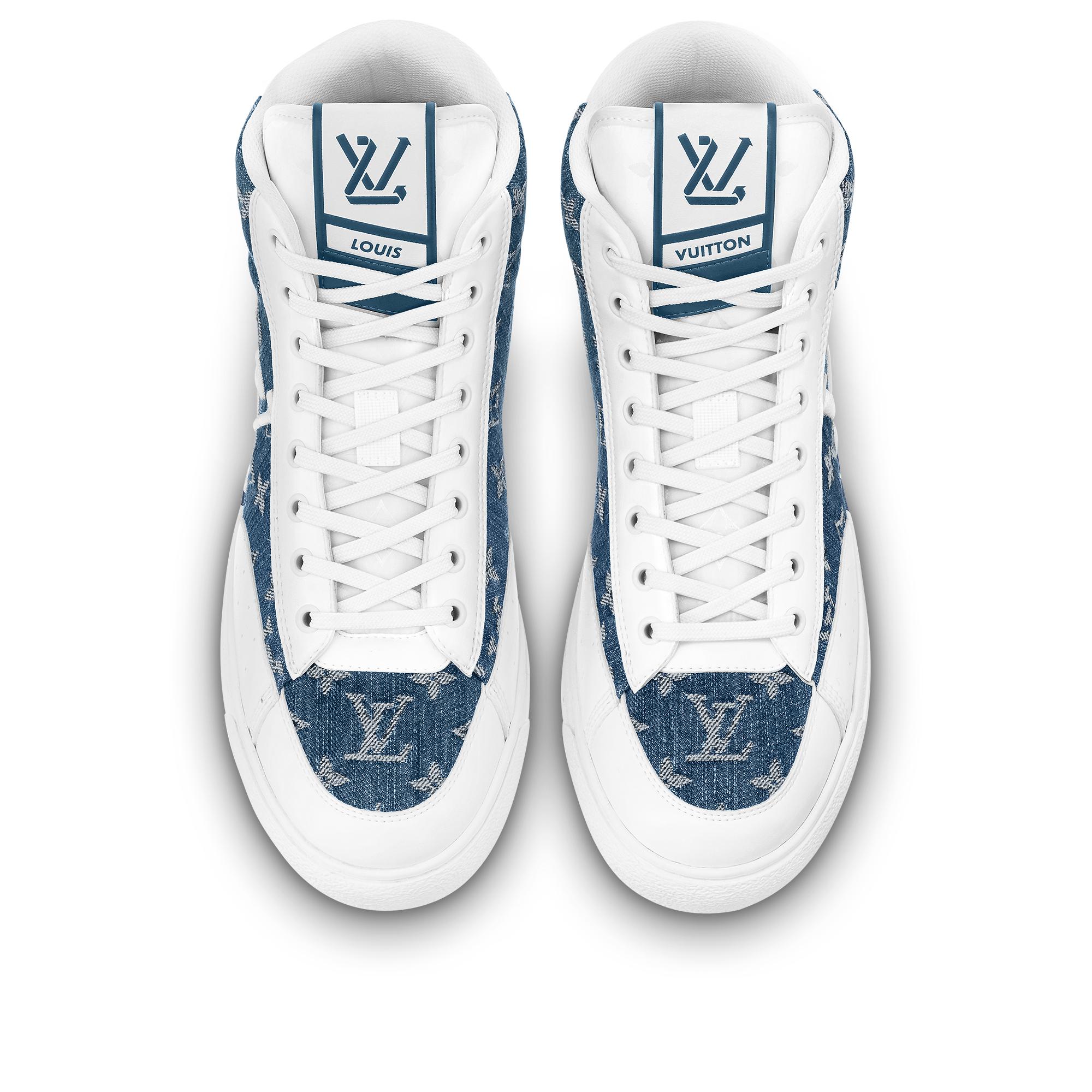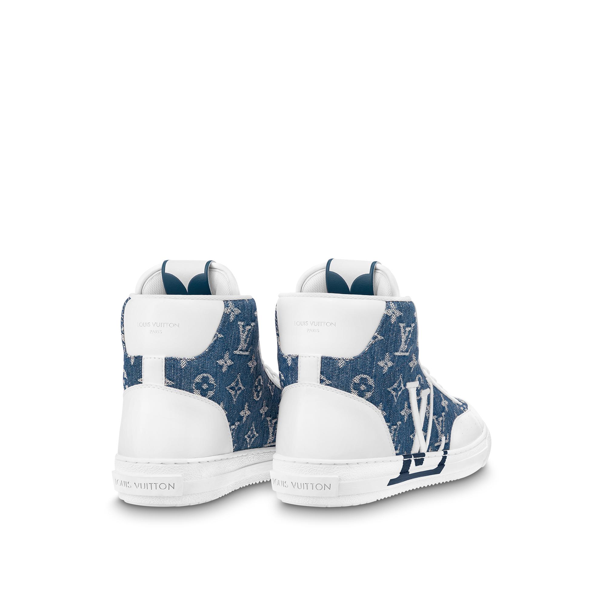 The first unisex, eco-designed model created by Louis Vuitton, the Charlie sneaker boot is made with 90% sustainable materials. On this version, the upper is crafted from upcycled Monogram denim, the laces from recycled polyester, and the outsole from 100% regenerated polyurethane. This classic hi-top style is signed with an oversized LV Initials on the side and the LV upcycling logo on the tongue. Product details Blue Upcycled Monogram denim Recycled polyester lining Recycled polyester laces Regenerated polyurethane outsole LV Initials on the side LV upcycling logo on the tongue Louis and Vuitton signatures on the tongue Louis Vuitton signature on the back and outsole Made in Italy1AA47H Louis Vuitton Charlie Sneaker Boot - Men - ShoesMen - Shoes - Sneakers - Charlie Sneaker Boot