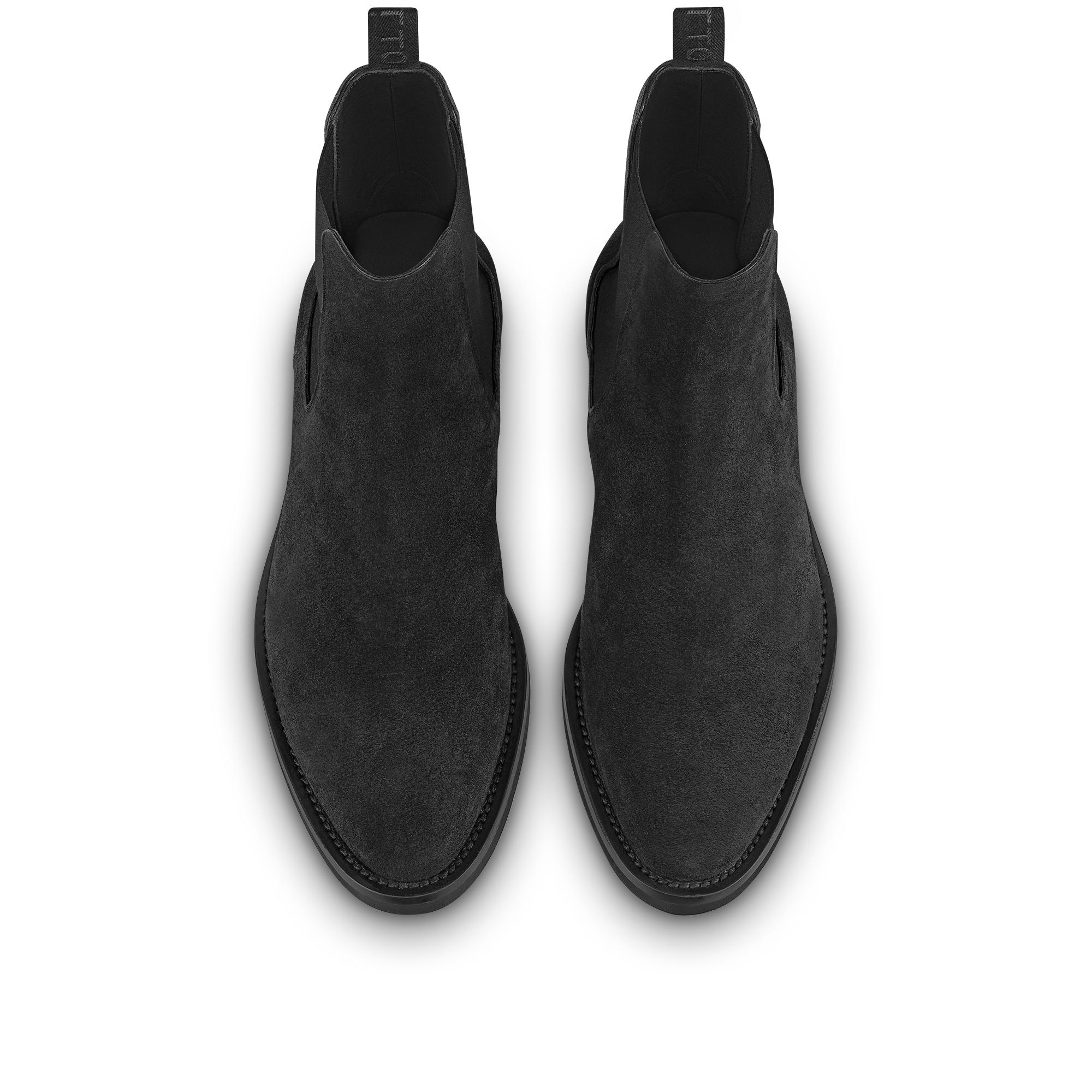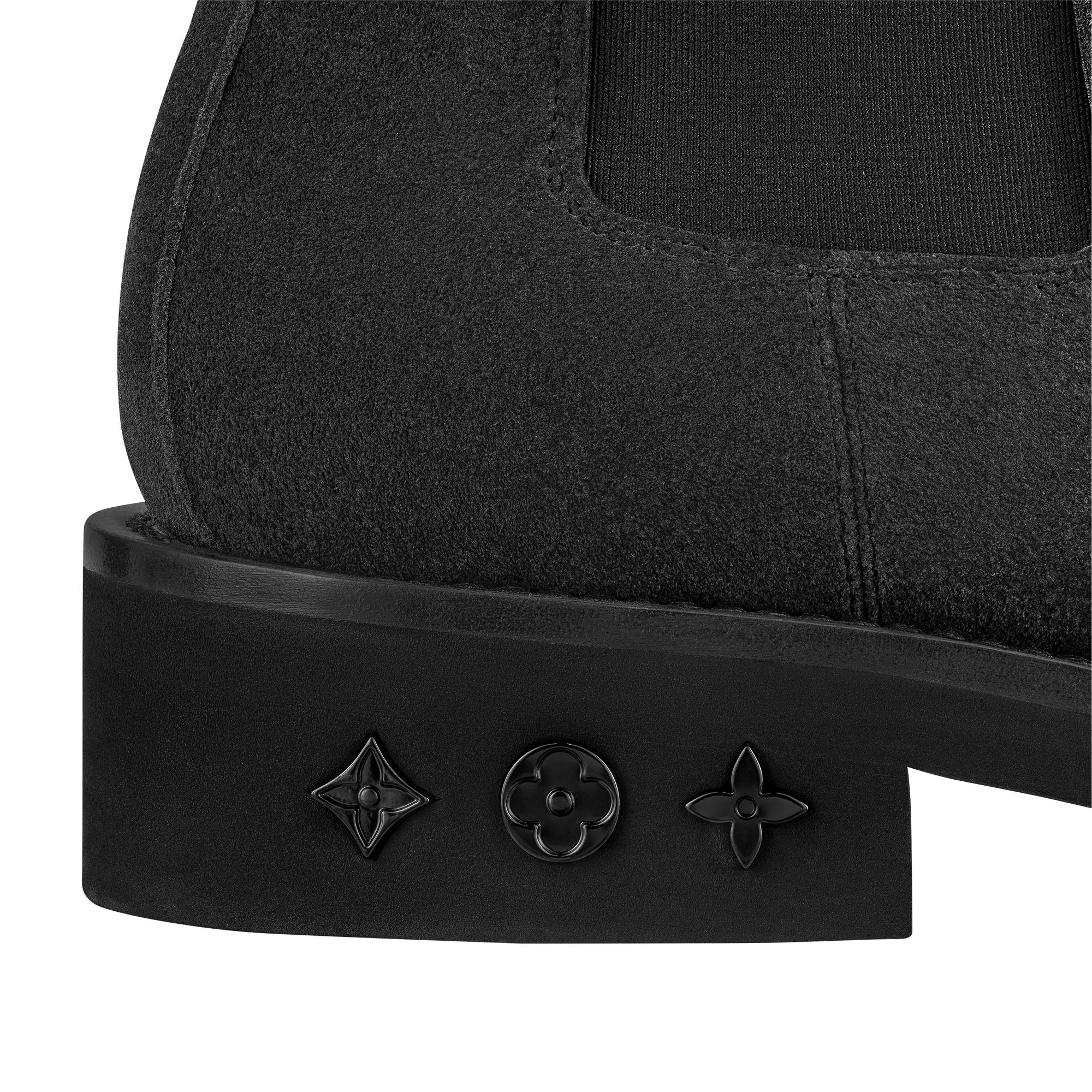 Crafted from velvety suede calf leather, the Charonne Chelsea boot is a modern interpretation of the classic style. Its understated design is elevated by refined details, such as the textile back loop with the Louis Vuitton signature and the Monogram-Flower motifs on the ultra-lightweight micro rubber outsole. Product details Black Suede calf leather Elastic side panels Ultra-light micro rubber outsole Monogram Flowers on the outsole Louis Vuitton textile back loop Made in Italy1A9HML Louis Vuitton Charonne Chelsea Boot - Men - ShoesMen - Shoes - Boots - Charonne Chelsea Boot