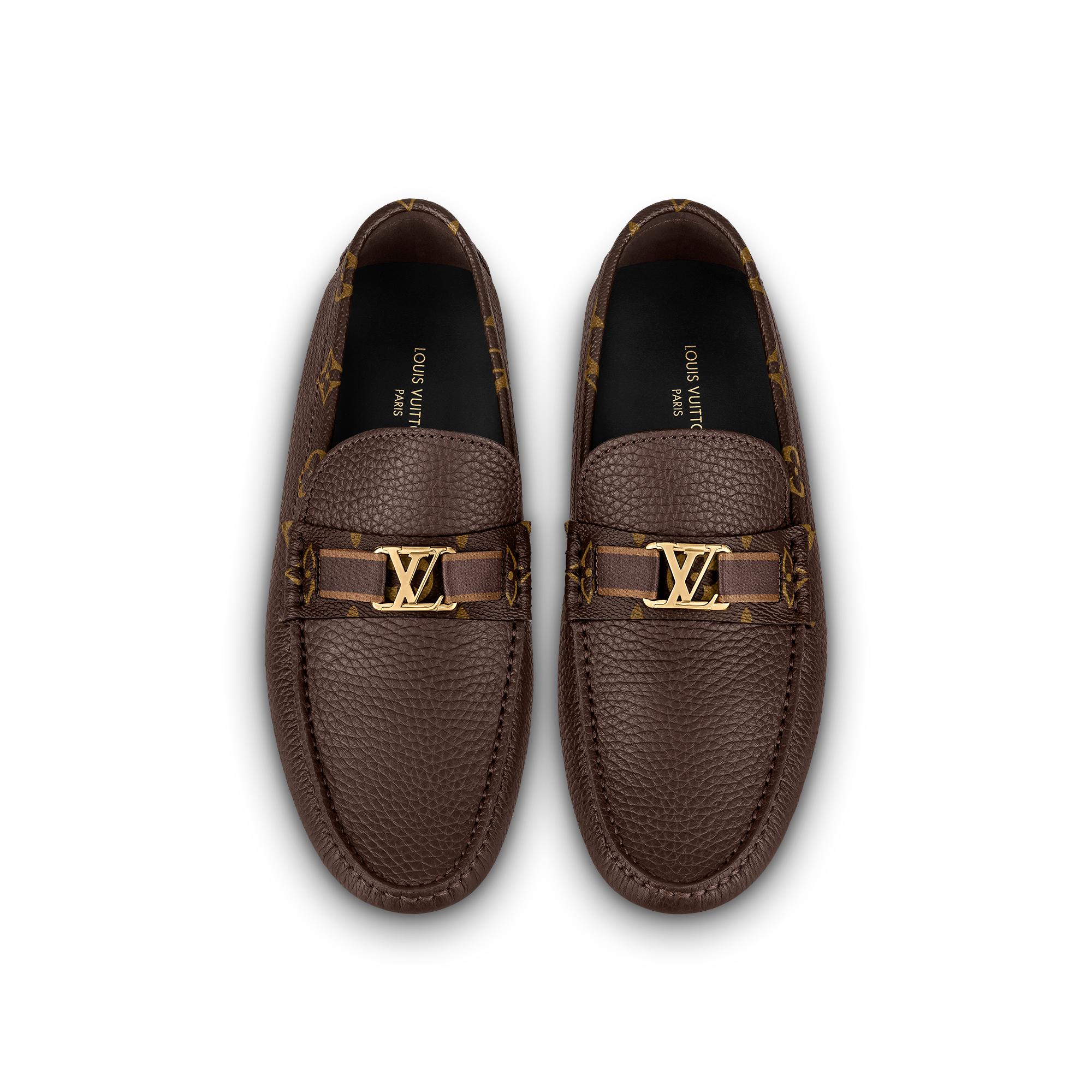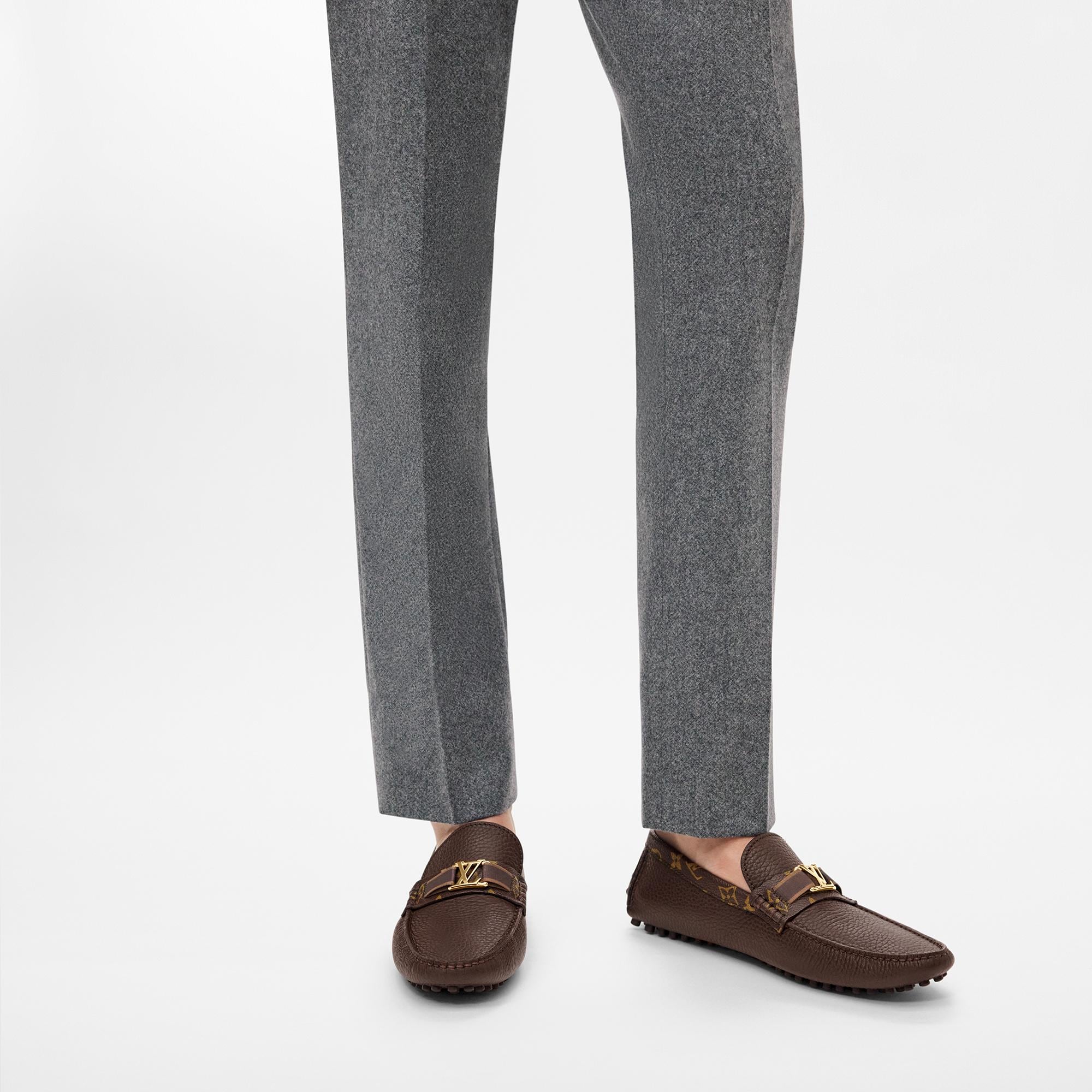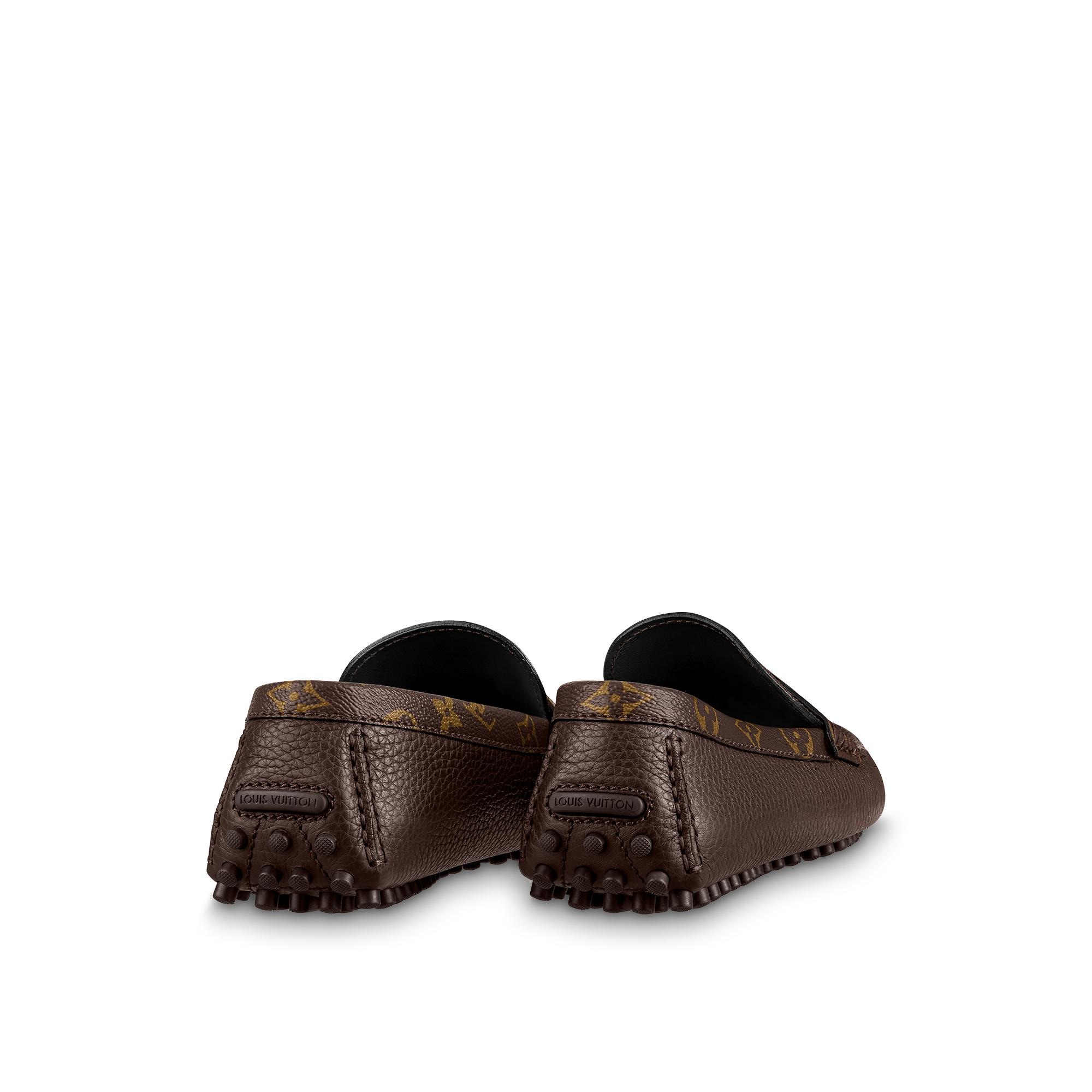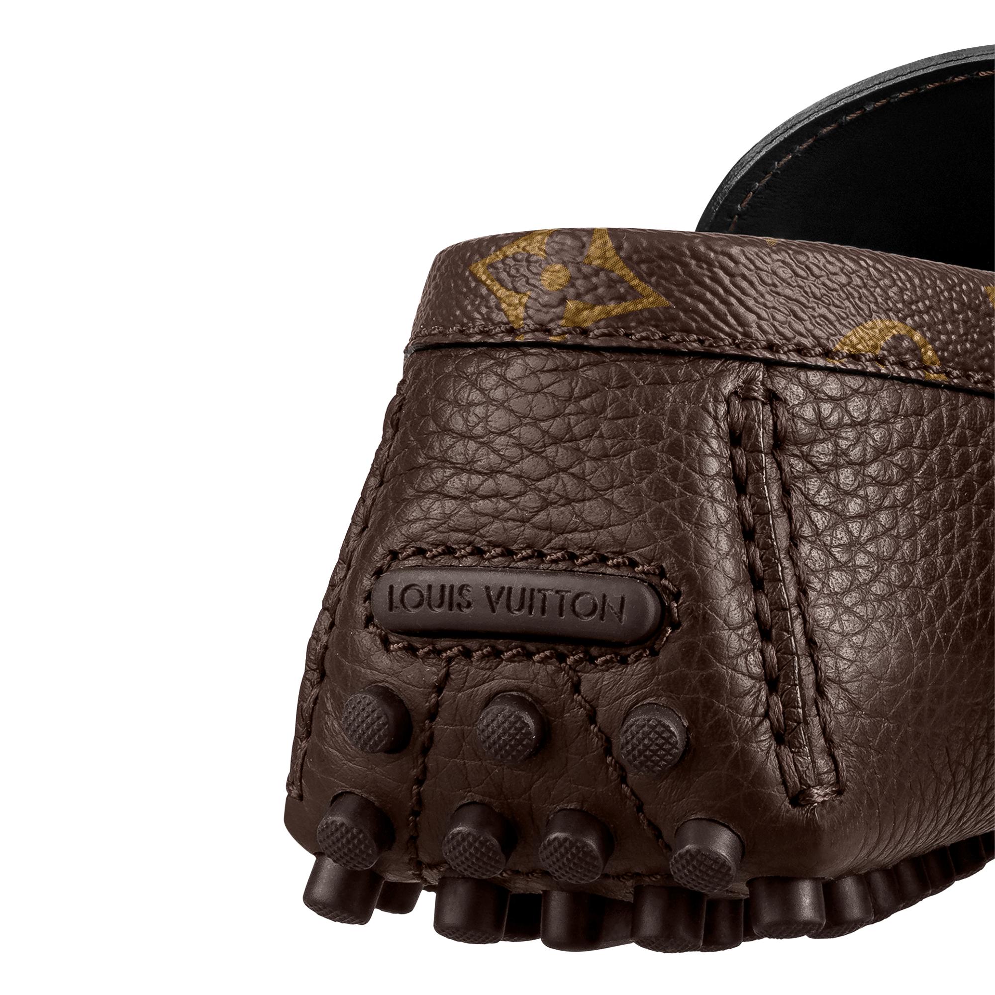 The Hockenheim moccasin is reinterpreted in supple grained calf leather with Monogram canvas on the collar. This timeless style has a tubular construction with no insole for optimum comfort and lightness, and a flexible rubber-nub sole. The vamp, which is traditionally stitched by hand, is finished with a metal LV Initials accessory on a bicolor ribbon. Product details Moka Brown Grained calf leather and Monogram canvas Bicolor ribbon Hand-stitched vamp (1 hour per pair) Tubular construction Outsole with small rubber nubs LV Initials accessory Made in Italy1A9I85 MochaLouis Vuitton Hockenheim Mocassin - Men - ShoesMen - Shoes - Loafers and Moccasins - Hockenheim Mocassin