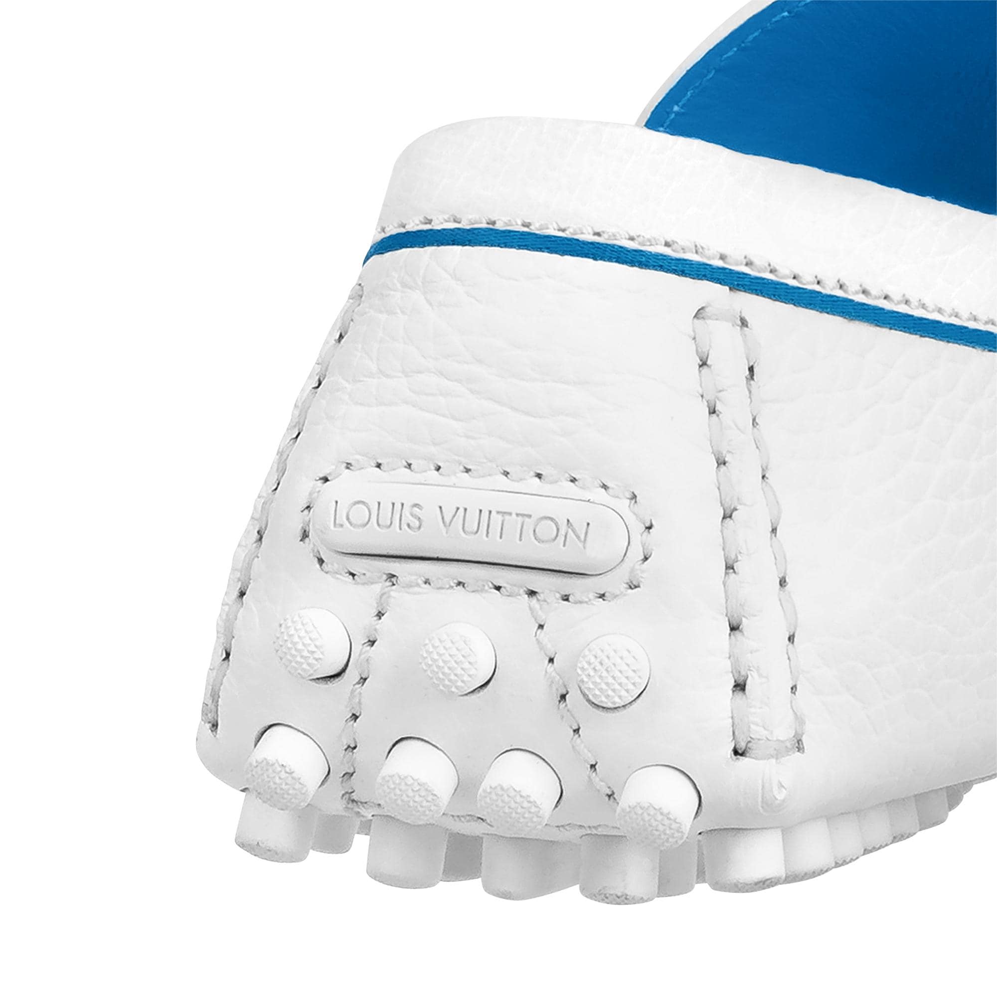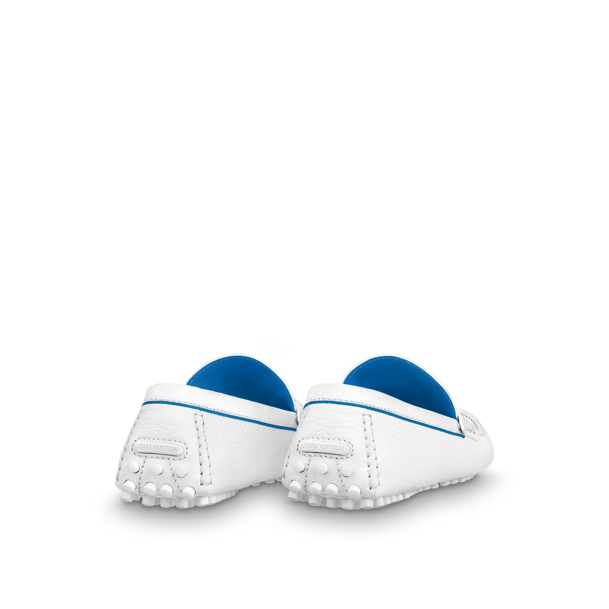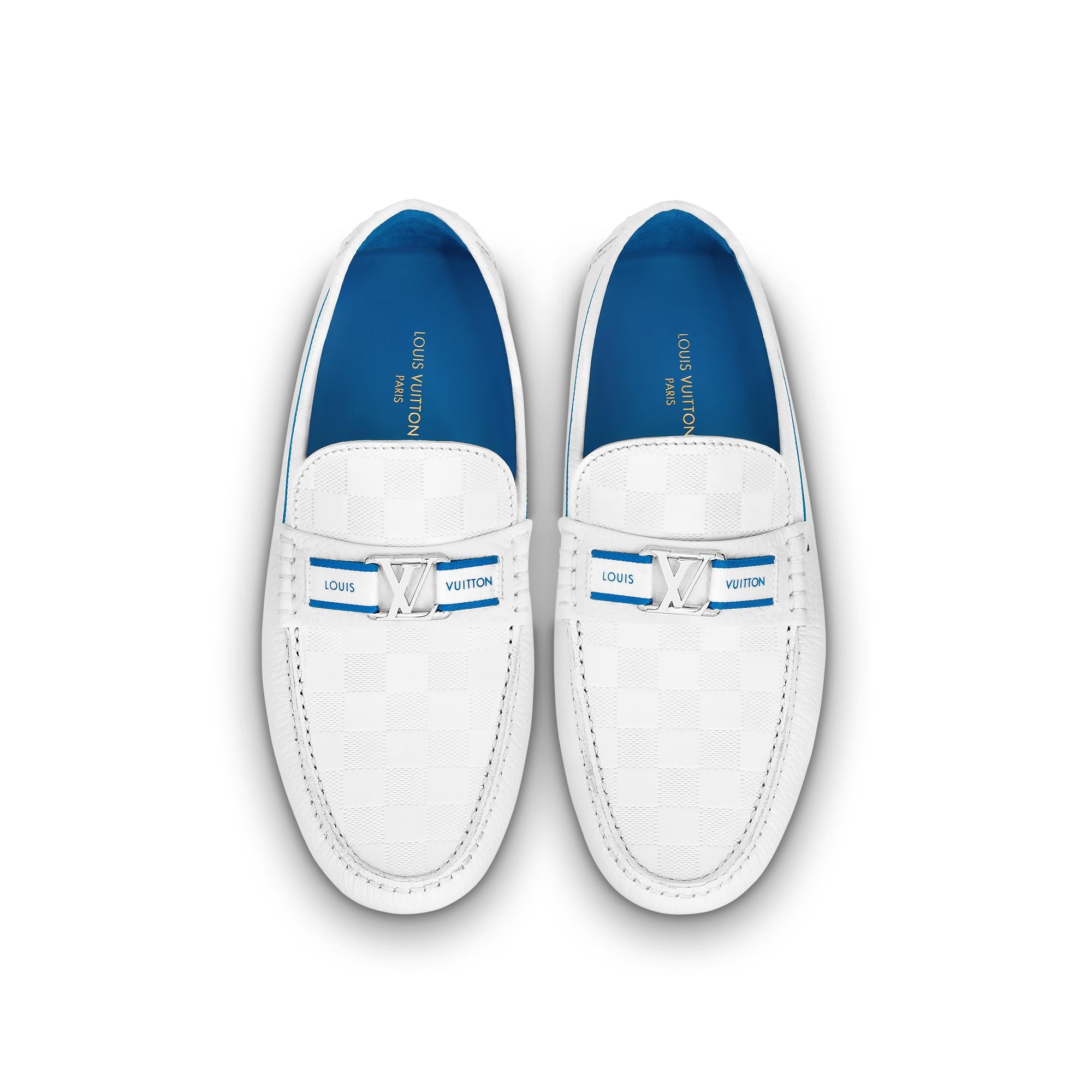 This summery interpretation of the Hockenheim moccasin is crafted from grained calf leather partially embossed with Louis Vuitton's historic Damier pattern. This model is exceptionally supple and lightweight owing to its tubular construction and outsole with small rubber nubs. The hand-stitched vamp is finished with an LV Initials accessory on a bicolor Louis Vuitton ribbon. Product details White Damier grained calf leather Bicolor ribbon Hand-stitched vamp (1 hour per pair) Tubular construction Outsole with small rubber nubs LV Initials accessory Made in Italy1A9ZX7 WhiteLouis Vuitton Hockenheim Mocassin - Men - ShoesMen - Shoes - Loafers and Moccasins - Hockenheim Mocassin