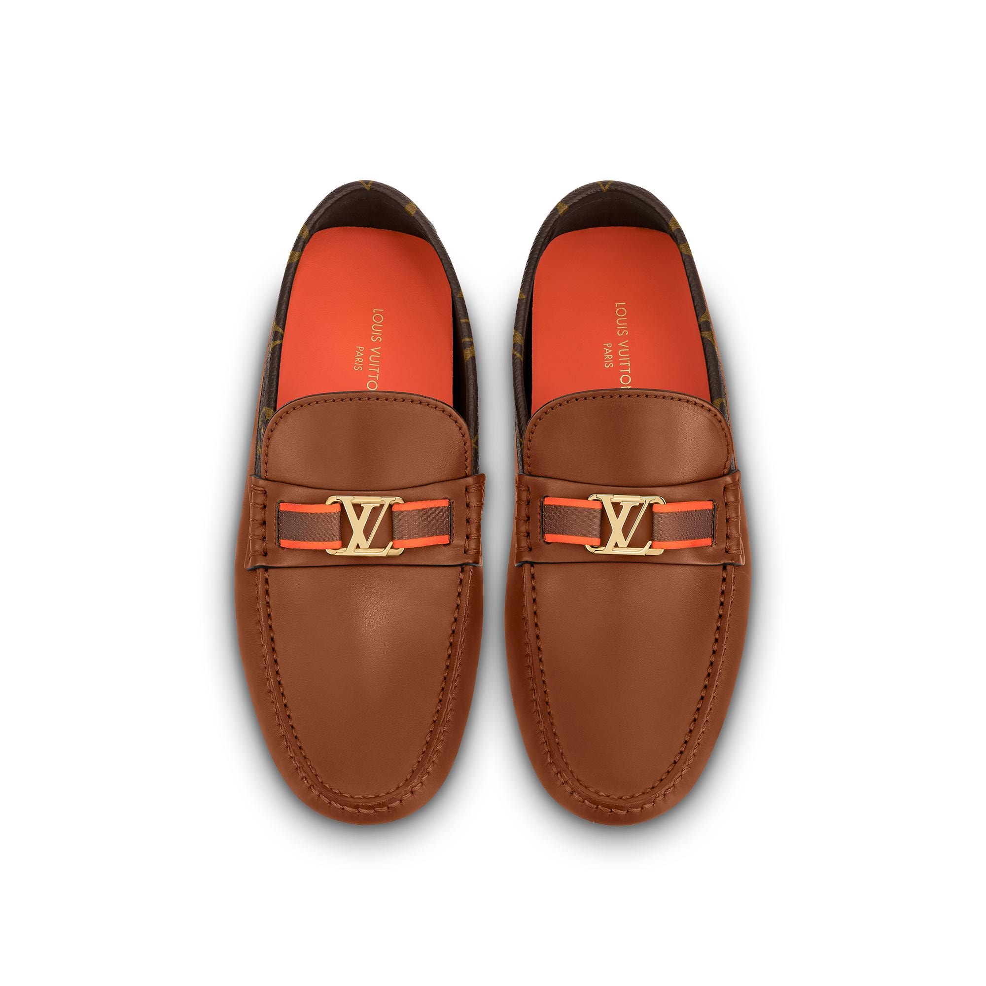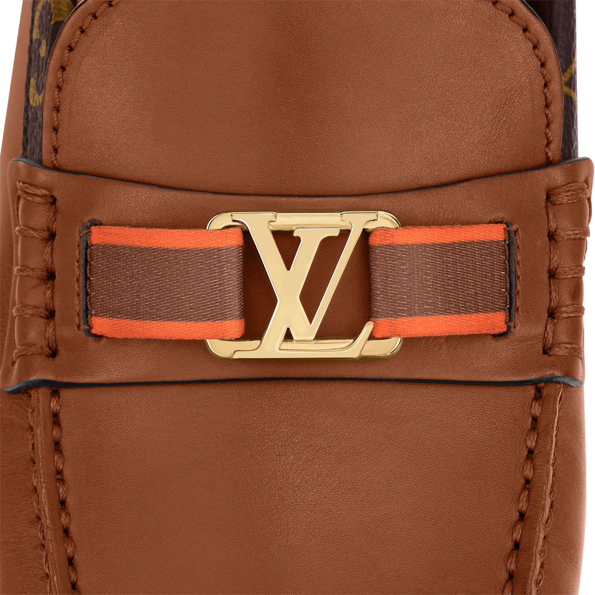 This version of the Hockenheim moccasin is crafted from smooth calf leather with trim in Monogram canvas. This timeless model is notable for its refined details, such as its hand-stitched vamp and the bicolor ribbon securing the LV Initials accessory. It is finished with an extremely supple, rubber-nub outsole. Product details Cognac Brown Calf leather and Monogram canvas Bicolor ribbon Hand-stitched vamp (1 hour per pair) Tubular construction Outsole with small rubber nubs LV Initials accessory Made in Italy1AA433 Louis Vuitton Hockenheim Mocassin - Men - ShoesMen - Shoes - Loafers and Moccasins - Hockenheim Mocassin