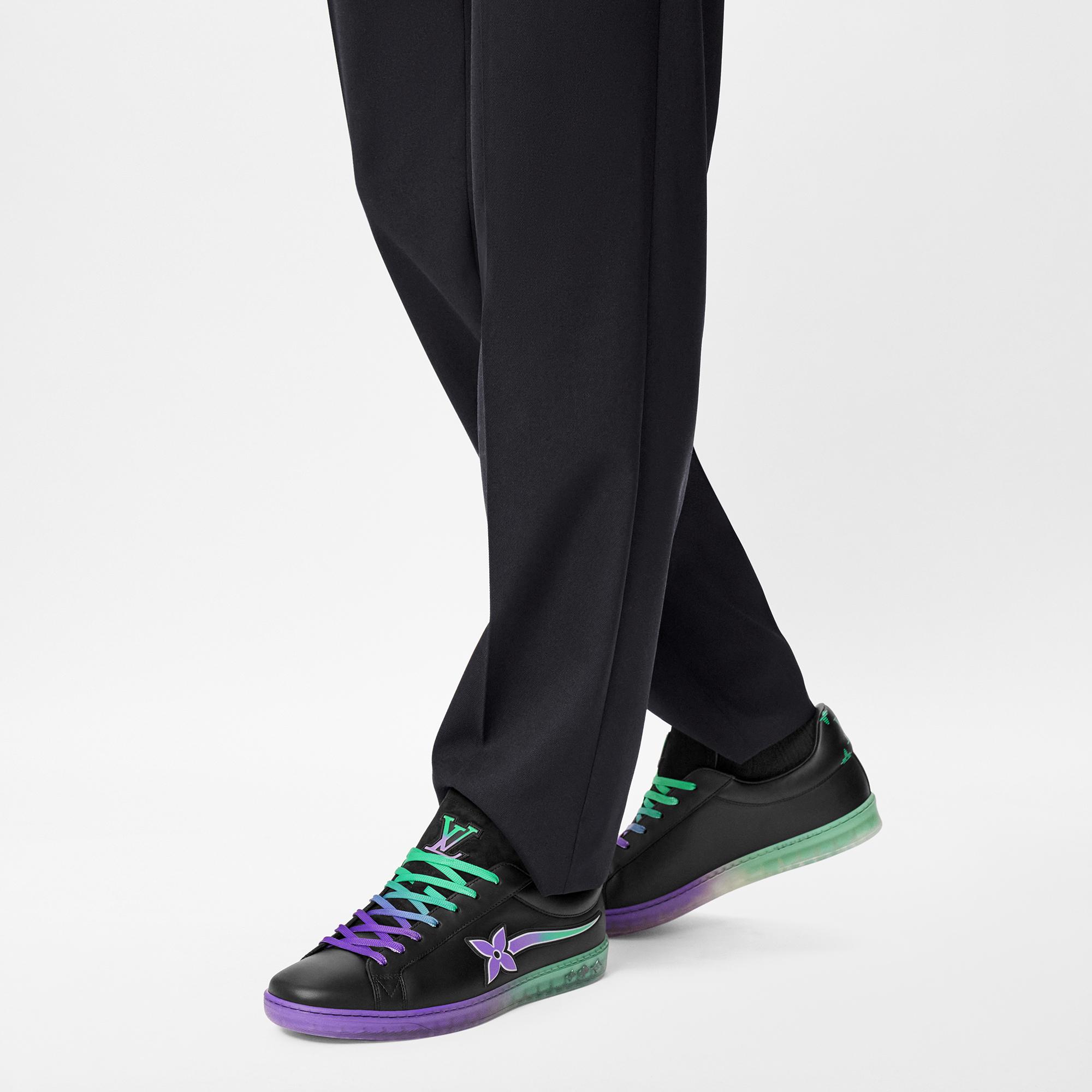 The Luxembourg Samothrace sneaker is a fashion-forward reinterpretation of the classic Luxembourg. Crafted from extremely soft calf leather, it features a skater-inspired tongue with the LV Initials logo and a distinctive Monogram Flower with a comet-like trail on the side. Both its laces and its transparent rubber outsole have a gradient color effect. Product details Black Calf leather Transparent rubber outsole LV Initials on the tongue and back Monogram Flower on the side Monogram Flowers on the outsole Made in Italy1A9G1G BlackLouis Vuitton Luxembourg Samothrace sneaker - Men - ShoesMen - Shoes - Sneakers - Luxembourg Samothrace Sneaker