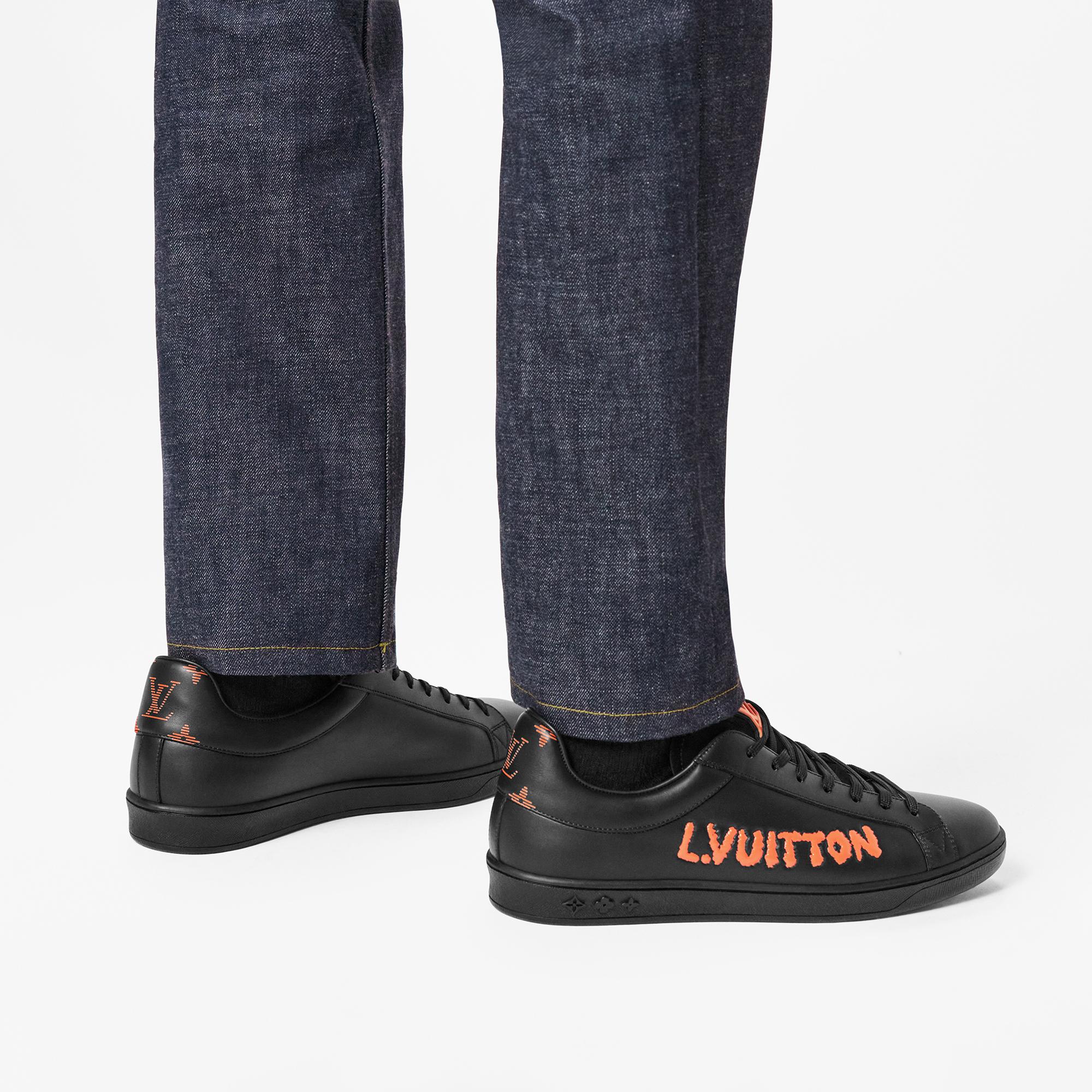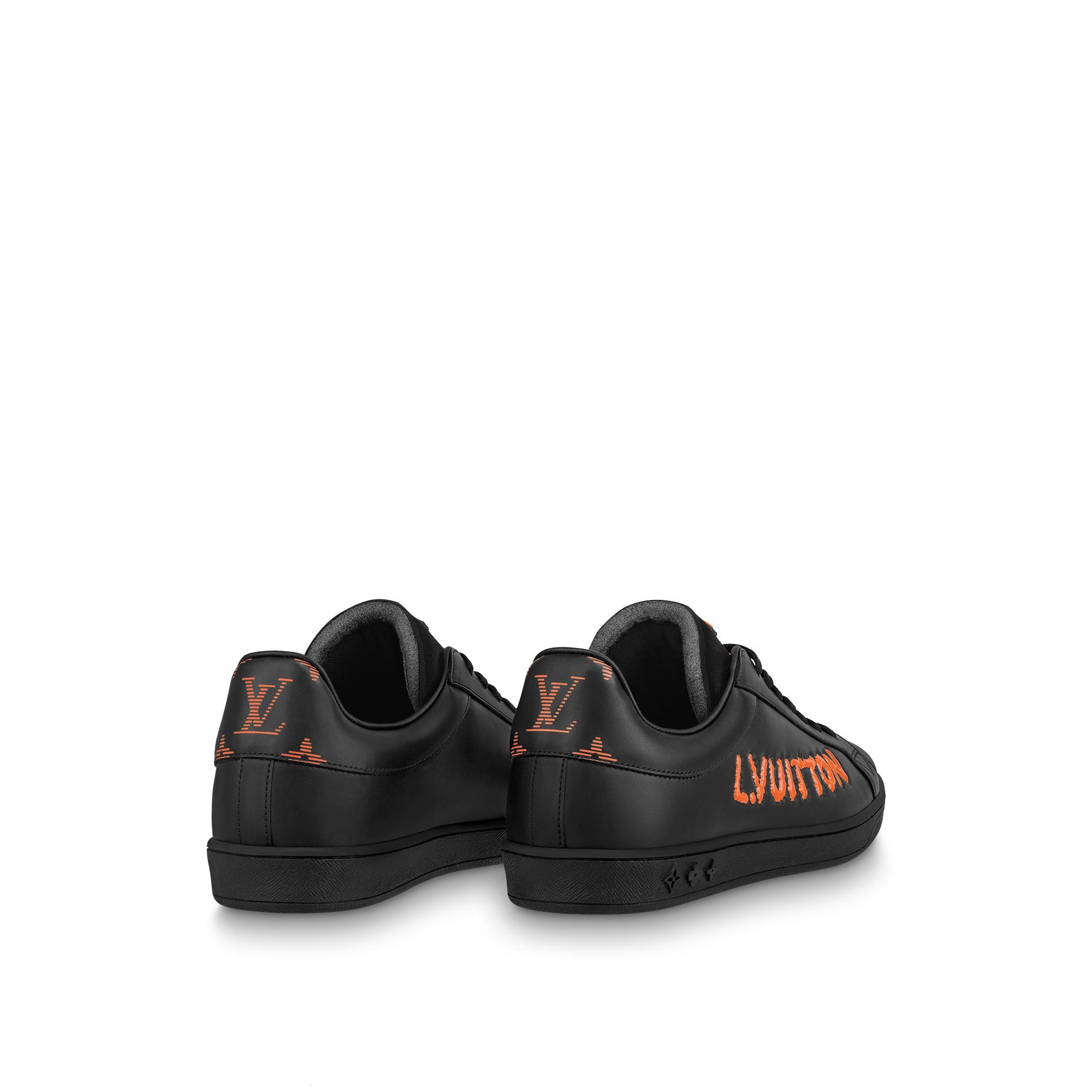 Crafted from extremely supple calf leather, the Luxembourg Samothrace sneaker is a fashion-forward rework of the classic Luxembourg by Louis Vuitton Artistic Director Virgil Abloh. It features a skater-inspired tongue with a rubber LV Initials logo and a graphic L. Vuitton signature embossed on the side. The outsole is debossed with three Monogram Flowers. Product details Orange Calf leather Rubber outsole LV Initials on the tongue and back L. Vuitton signature on the side Monogram Flowers on the outsole Made in Italy1A9JCP Louis Vuitton Luxembourg Samothrace Sneaker - Men - ShoesMen - Shoes - Sneakers - Luxembourg Samothrace Sneaker