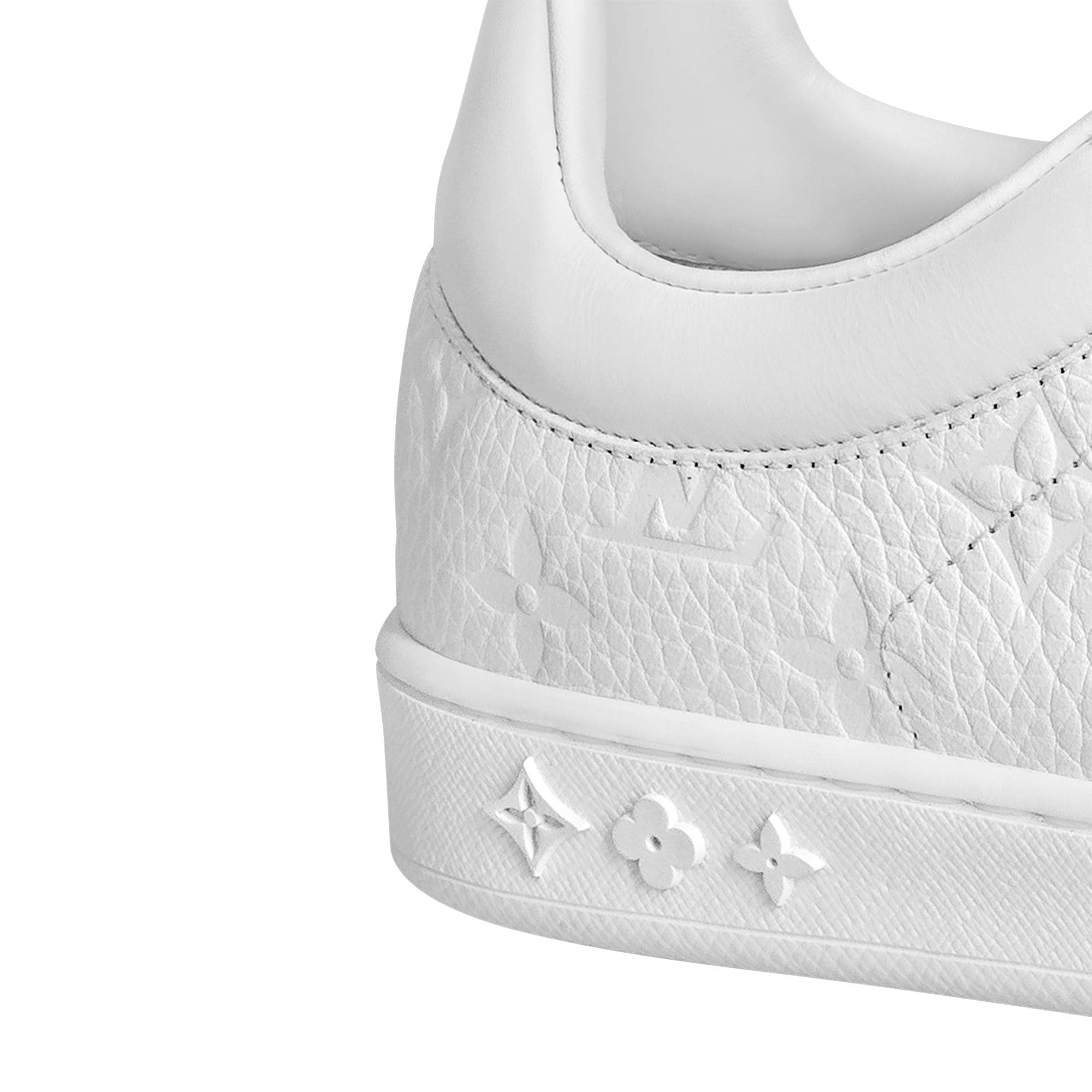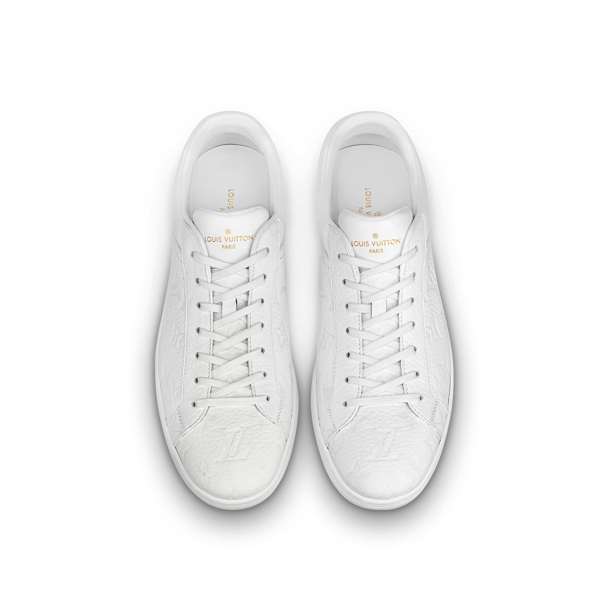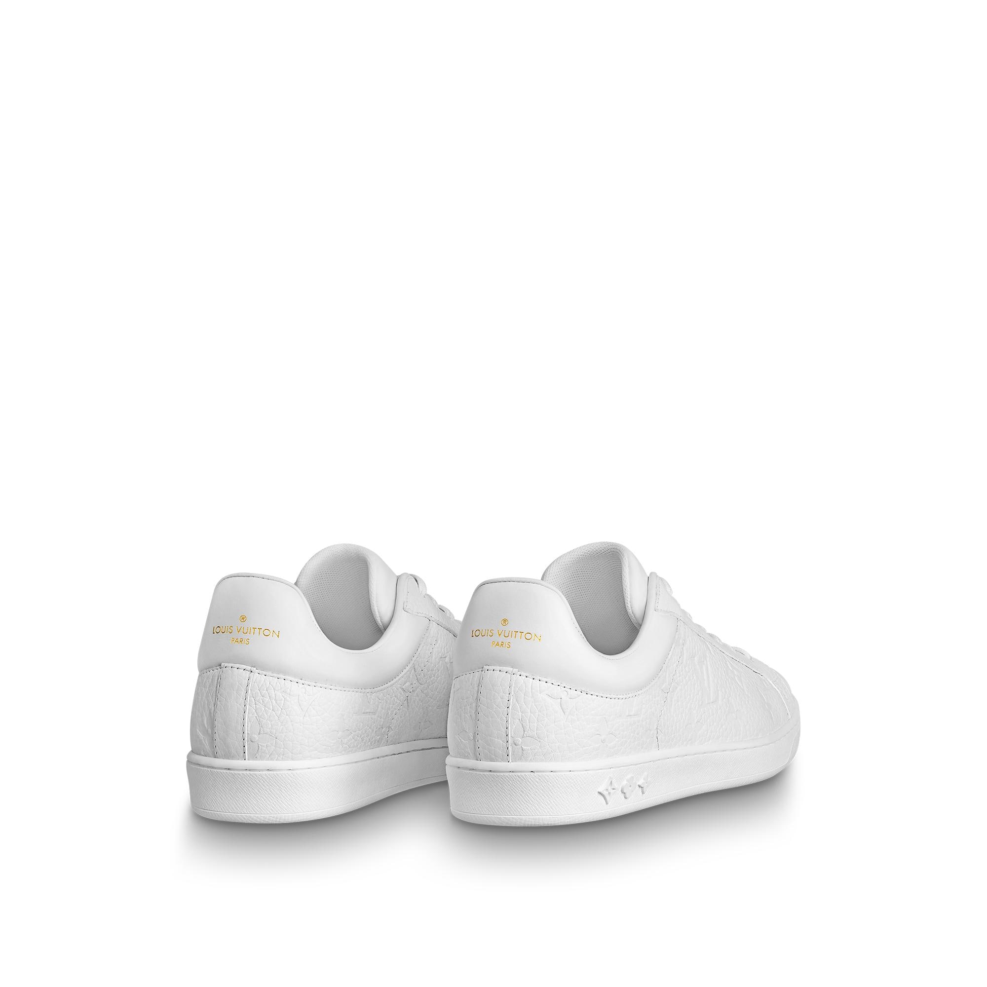 The timeless Luxembourg sneaker is crafted from exceptionally supple white grained calf leather embossed with Louis Vuitton's iconic Monogram pattern. The pure lines of this sneaker are complemented by refined details, such as the Louis Vuitton signature embossed in gold on the tongue and the motif of Monogram Flowers debossed on the rubber outsole. Product details Monogram-embossed grained calf leather White Rubber outsole Monogram Flowers on the outsole Made in Italy1A8QER WhiteLouis Vuitton Luxembourg Sneaker - Men - ShoesMen - Shoes - Sneakers - Luxembourg Sneaker