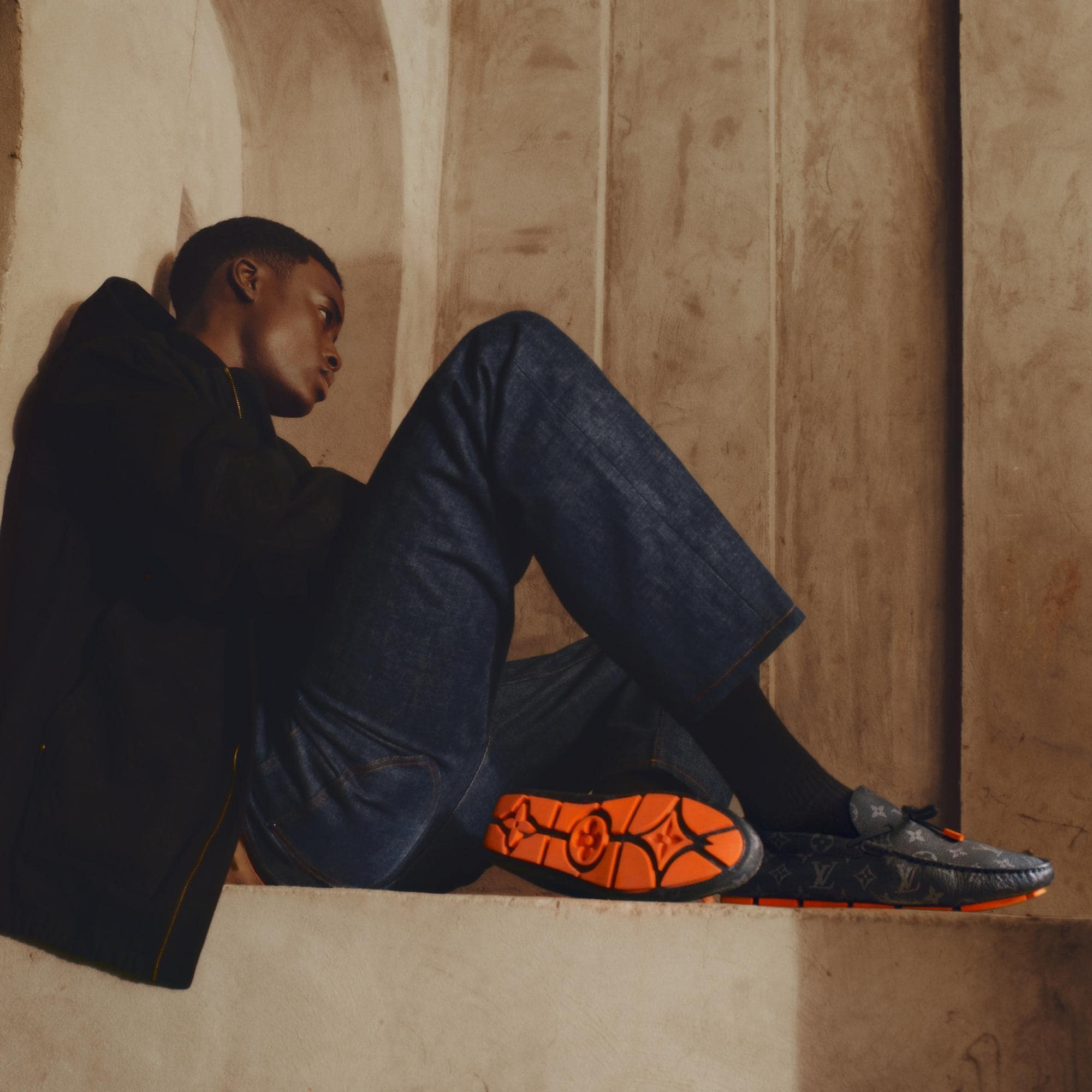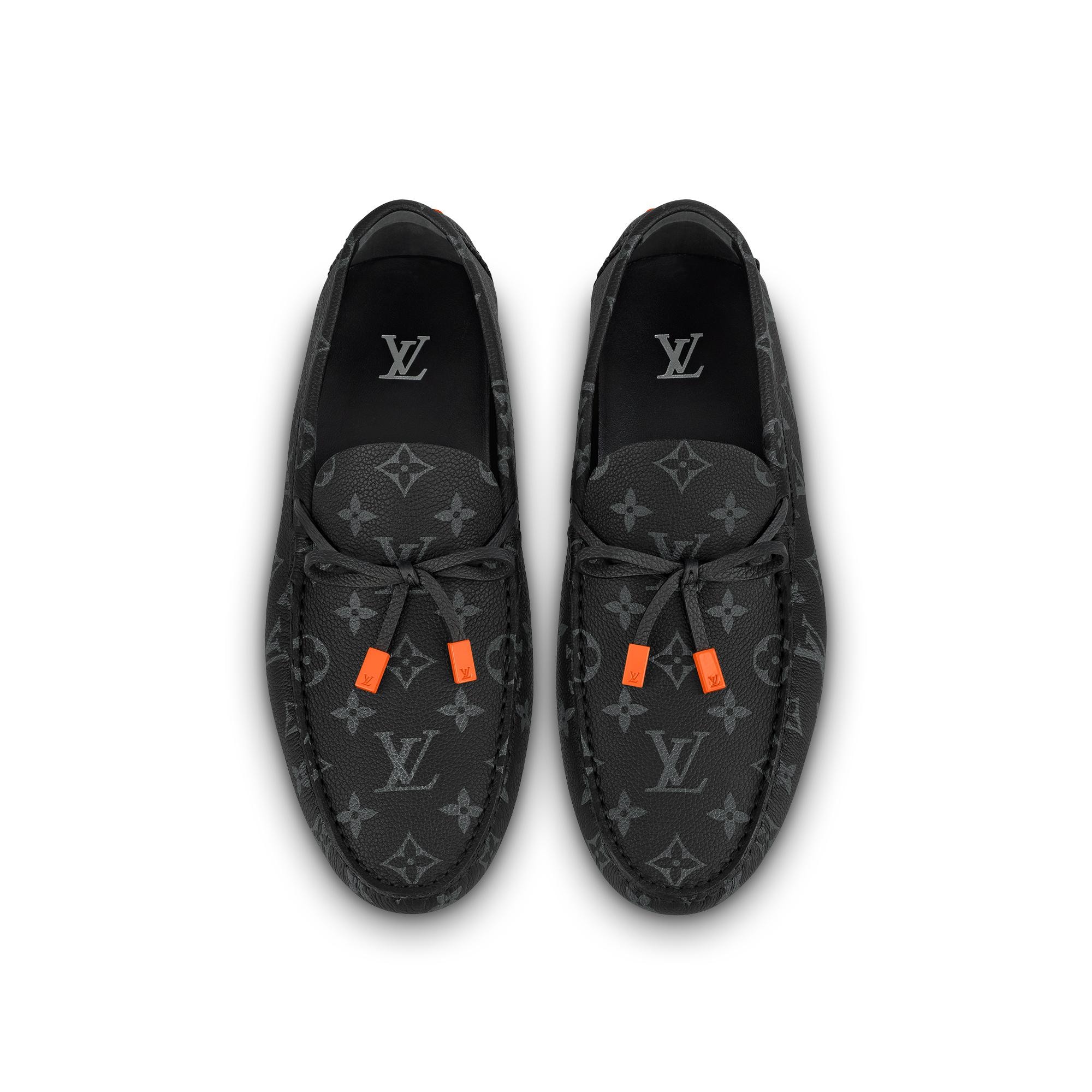 Crafted from Monogram grained calf leather, the LV Driver moccasin is the first driving shoe created by Virgil Abloh. This model has a tubular construction for suppleness and lightness, while the vamp is traditionally stitched by hand. The design is enhanced by colorful details, such as the rubber pads on the outsole and the LV Initials lace tips. Product details Eclipse Monogram grained calf leather Hand-stitched vamp (1 hour per pair) Tubular construction Outsole with large rubber pads LV Initials lace tips Monogram pattern under the outsole Made in Italy1AAF3K Monogram EclipseLouis Vuitton LV Driver Mocassin - Men - ShoesMen - Shoes - Loafers and Moccasins - LV Driver Mocassin