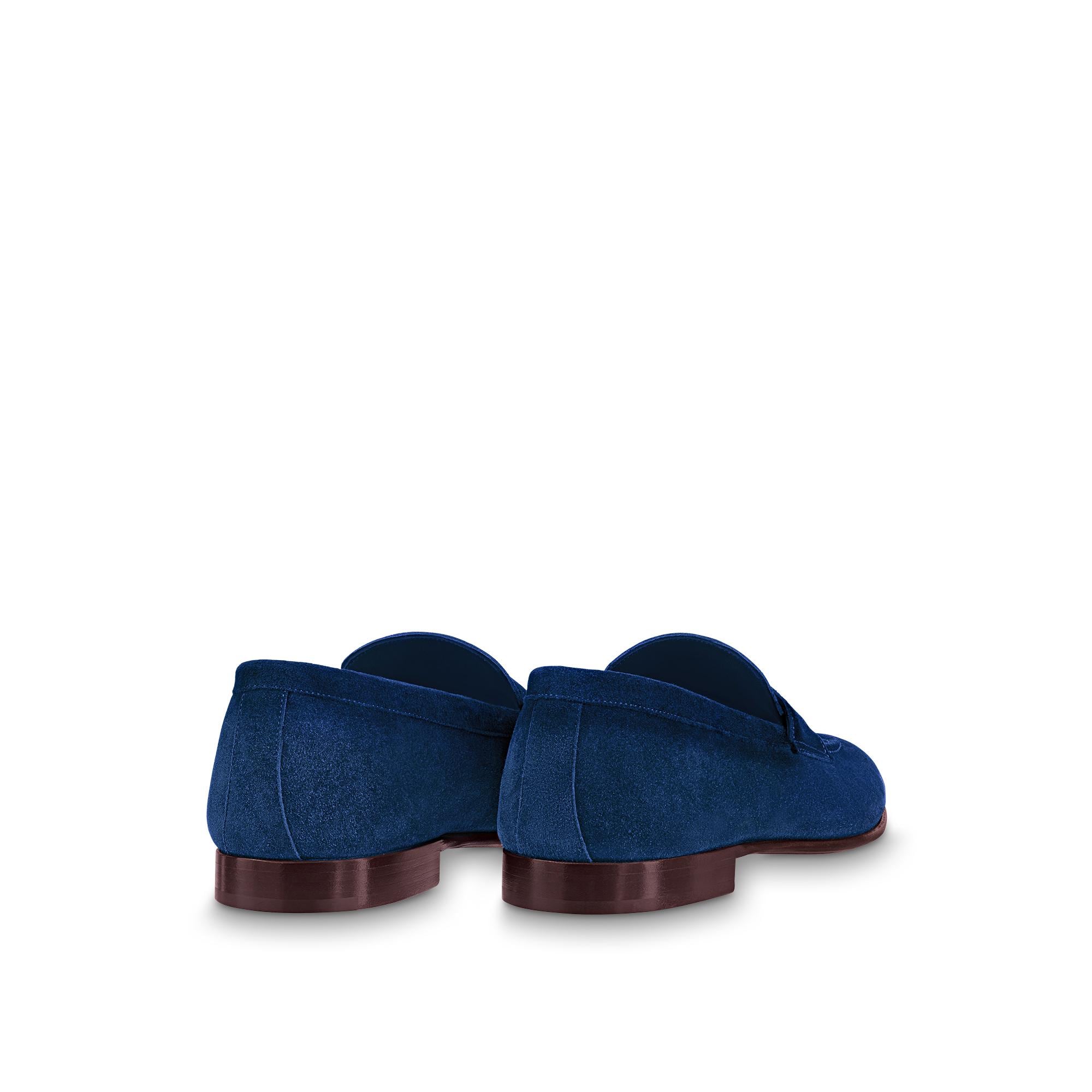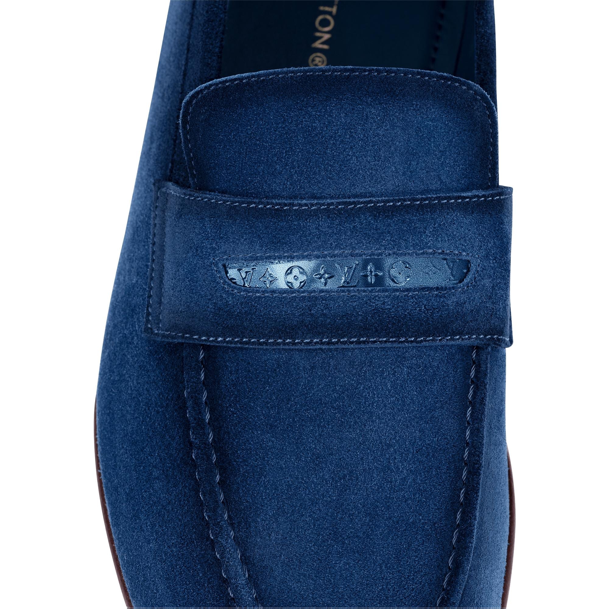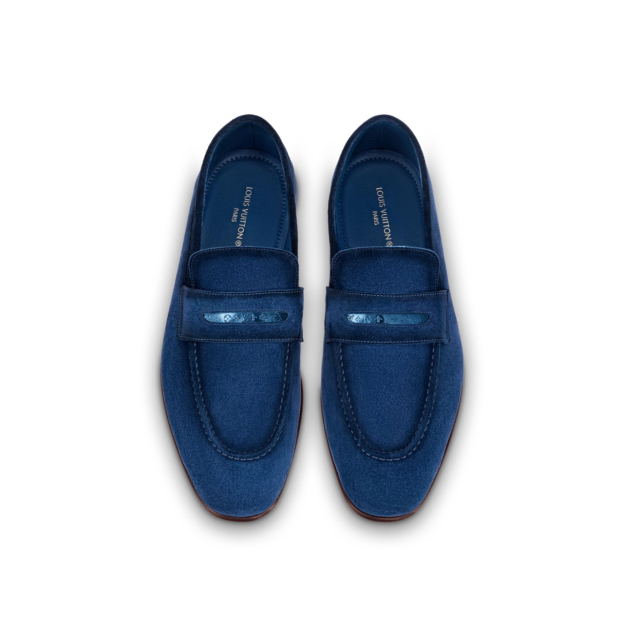 The LV Glove loafer is crafted from waxed suede calf leather, a refined material which complements its sleek design. Testifying to Louis Vuitton's savoir-faire, this model has a Sacchetto Flex construction for suppleness and lightness. It is discreetly signed with an anodized Monogram accessory on the strap. Product details Navy Blue Waxed suede calf leather Sacchetto Flex construction Leather outsole with the Louis Vuitton ready-to-wear staple signature Monogram accessory Made in Italy1AA2D3 MarineLouis Vuitton LV Glove Loafer - Men - ShoesMen - Shoes - Loafers and Moccasins - LV Glove Loafer