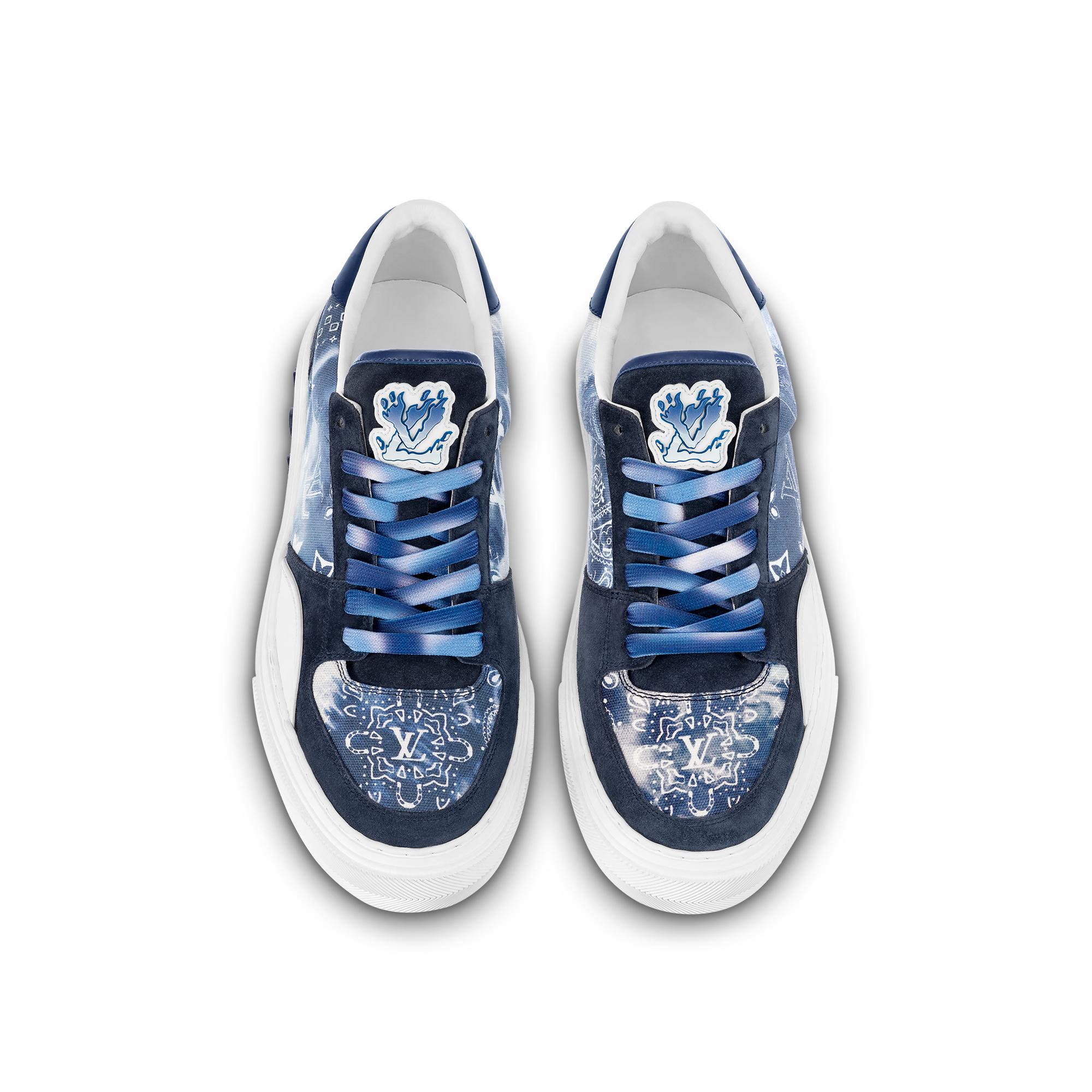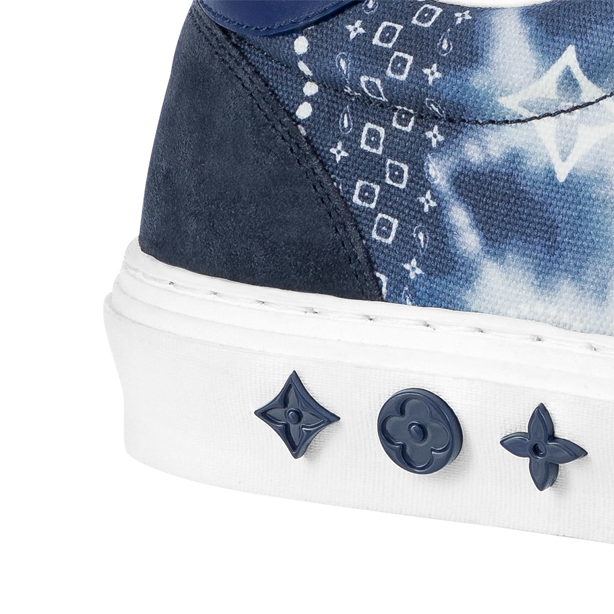 This edition of the LV Ollie sneaker comes in canvas with the bandana print which is a key theme of the season's ready-to-wear and leather goods. Suede calf-leather trim and tie-dye laces complement this design, which is finished with a supple rubber outsole. The tongue features the LV "fire" logo designed by Virgil Abloh. Product details Blue Canvas Tie-dye laces Rubber outsole LV Initials on the tongue Louis Vuitton script signature on the back Monogram Flowers on the outsole Made in Italy1AA7ME BlueLouis Vuitton LV Ollie Sneaker - Men - ShoesMen - Shoes - Sneakers - LV Ollie Sneaker