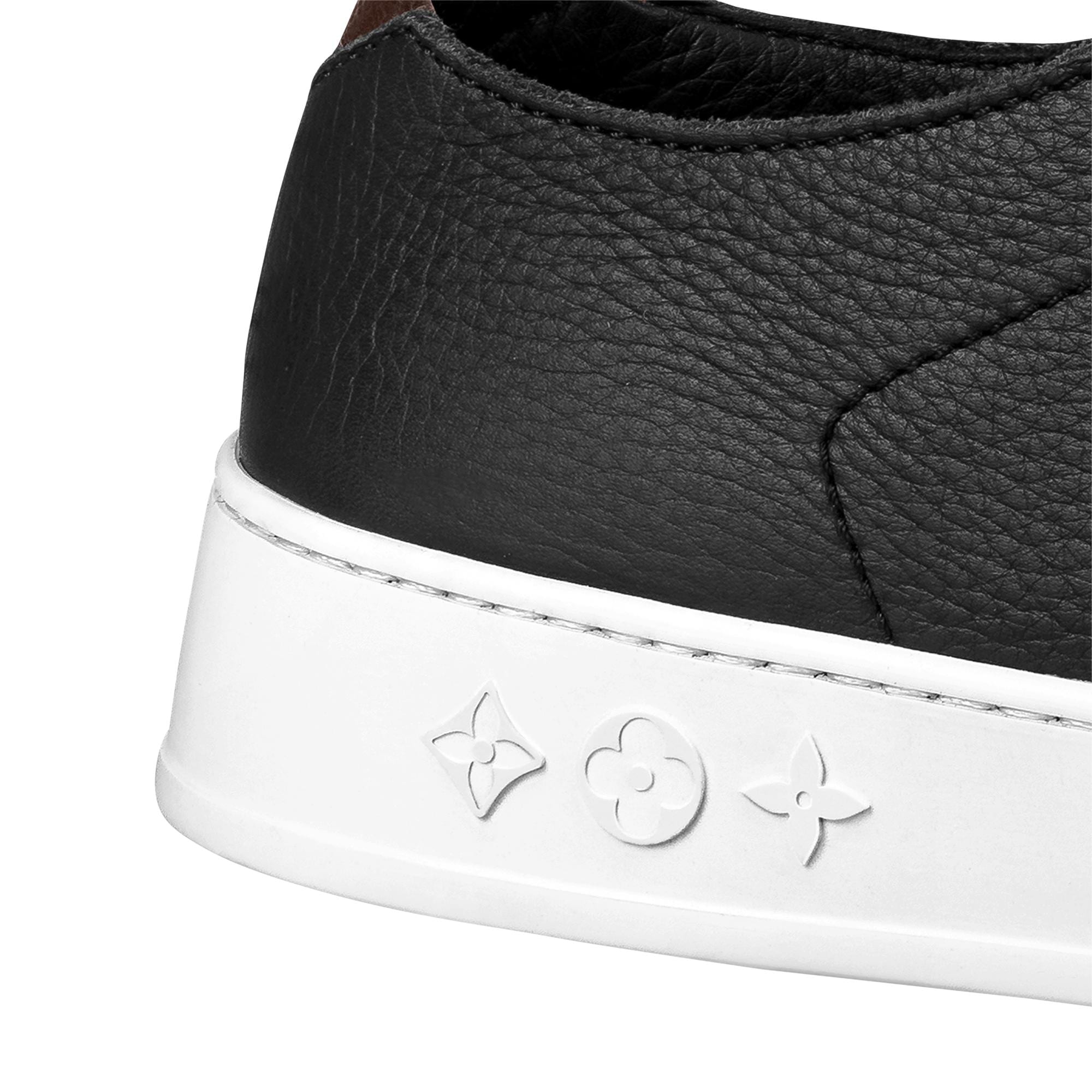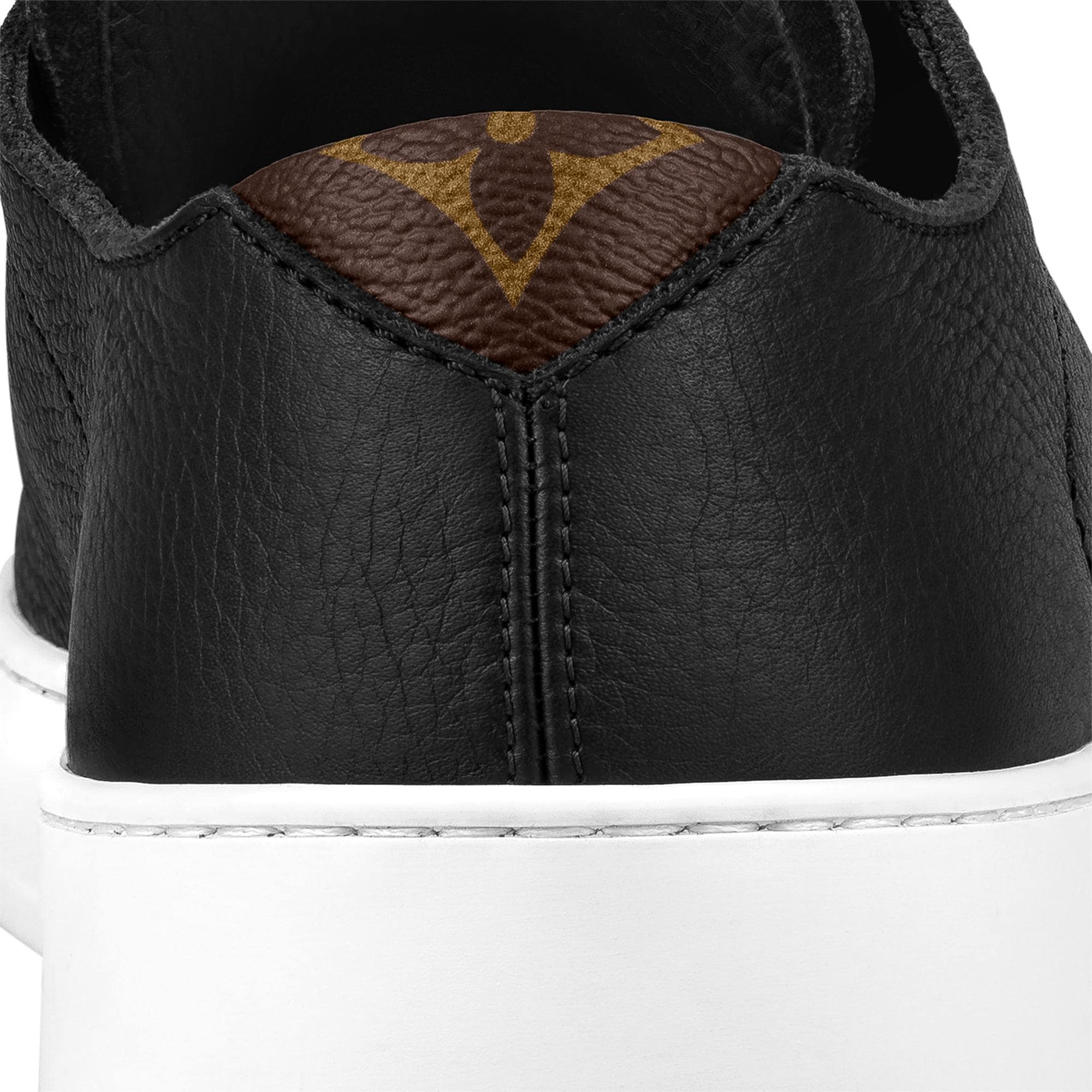 The LV Resort sneaker in supple, grained calf leather is an ideal alternative to a formal shoe. Its understated design is complemented by discreet signatures, including the LV Initials in tonal rubber on the tongue, Monogram Flowers on the white rubber outsole and Monogram-canvas trim on the back. This model features elastic laces, making it easy to slip on and off. Product details Black Grained calf leather Elastic laces Rubber outsole LV Initials on the tongue Monogram canvas on the back Monogram Flowers on the outsole Made in Italy1AA621 BlackLouis Vuitton LV Resort Sneaker - Men - ShoesMen - Shoes - Sneakers - LV Resort Sneaker