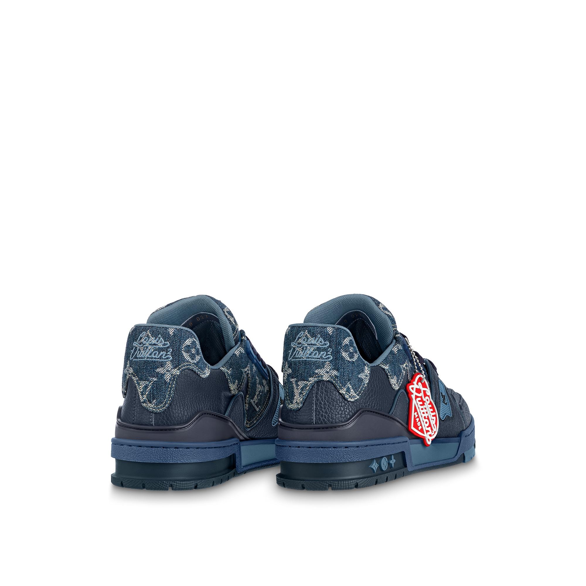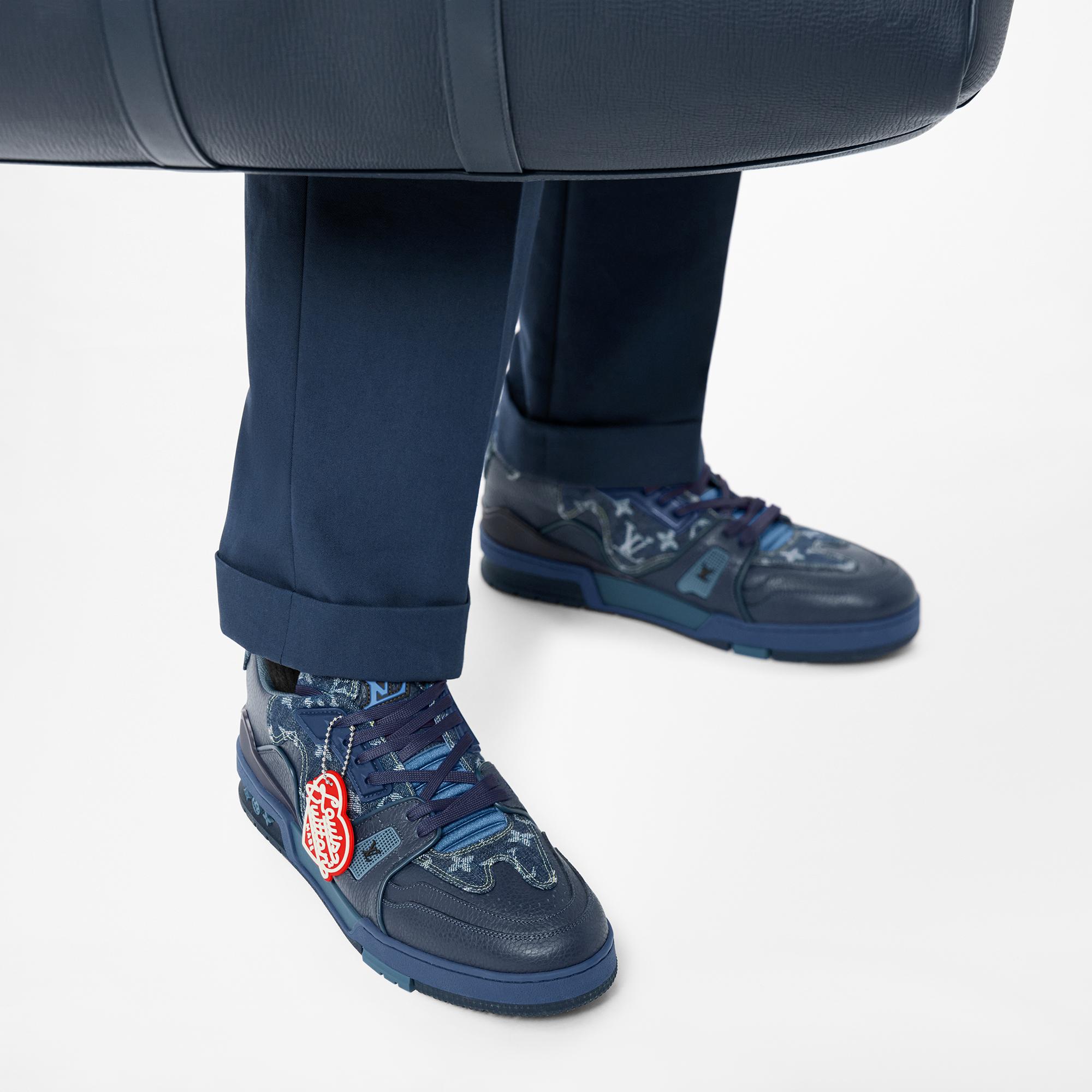 For his second collaboration with Louis Vuitton Artistic Director Virgil Abloh, Japanese streetwear legend Nigo reworks the iconic LV Trainer sneaker. The Monogram denim upper is complemented by calf-leather trim and decorated with a red, heart-shaped Louis Vuitton² rubber patch. Nigo's instinctive fusion of British dandy and Japanese street culture has established him as a uniquely influential figure, at the crossroads of fine art and fashion. Product details Blue Monogram denim 7 hours of stitching for one pair Rubber outsole Louis Vuitton² rubber patch LV Initials on the tongue and side Monogram Flowers on the outsole Made in Italy1A9IQ9 BlueLouis Vuitton LV Trainer sneaker - Men - ShoesMen - Shoes - Sneakers - LV Trainer Sneaker