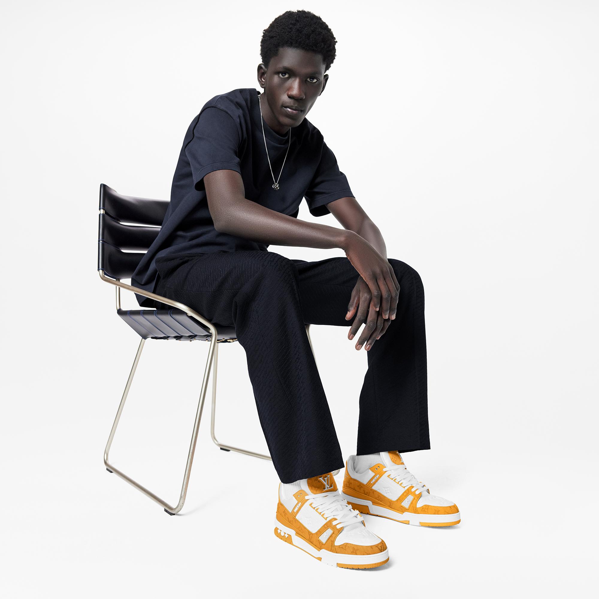 Designed by Louis Vuitton Artistic Director Virgil Abloh, the iconic LV Trainer sneaker is revisited this season in Monogram denim and Monogram-embossed grained calf leather. The contrasting colors and materials highlight the elaborate construction of this model, which was inspired by vintage basketball sneakers. A single pair takes seven hours to stitch. Product details Yellow Monogram denim and Monogram-embossed grained calf leather 7 hours of stitching for one pair Rubber outsole LV Initials on the tongue, side and back Vuitton signature on the side Monogram Flowers on the outsole Made in Italy1A9JHF YellowLouis Vuitton LV Trainer Sneaker - Men - ShoesMen - Shoes - Sneakers - LV Trainer Sneaker